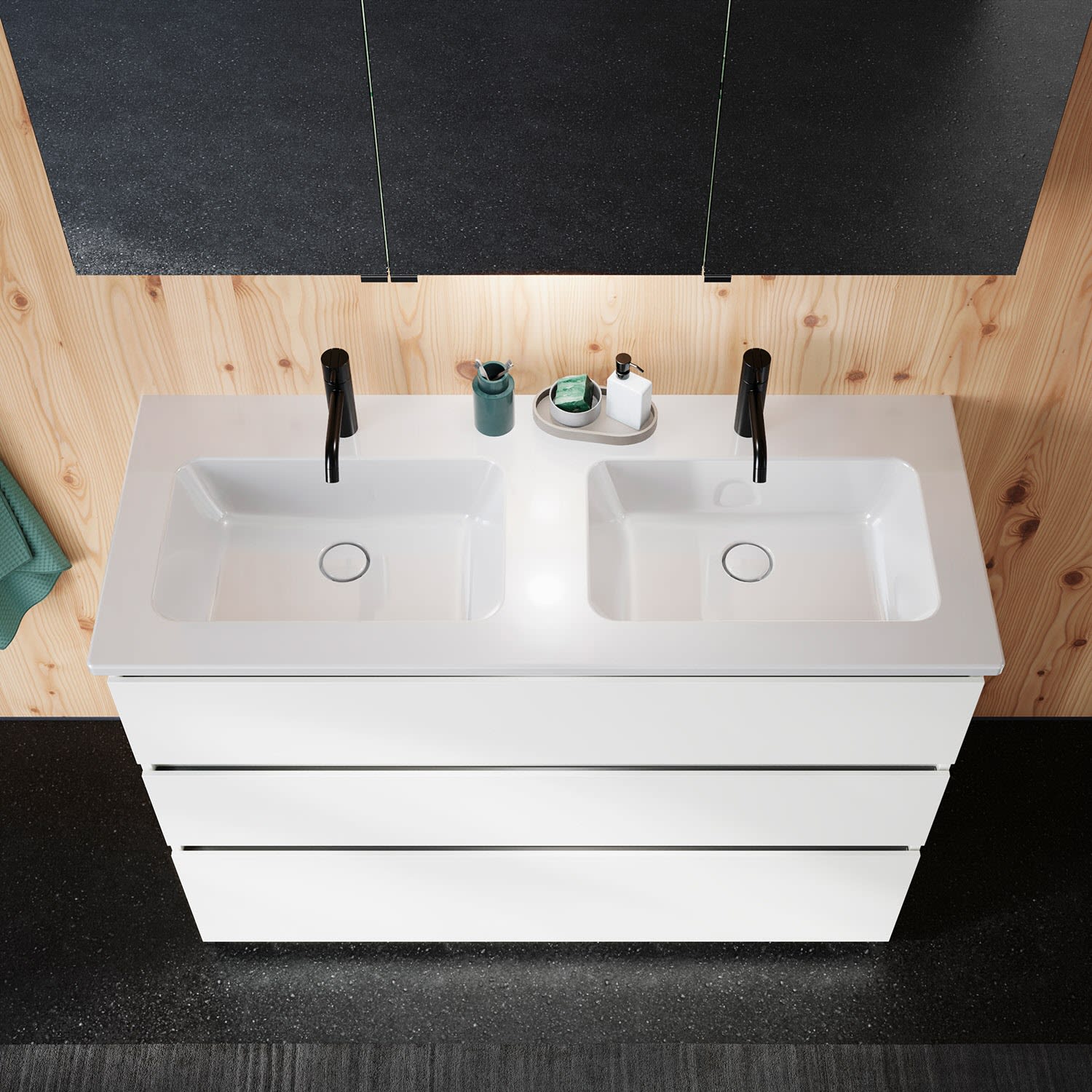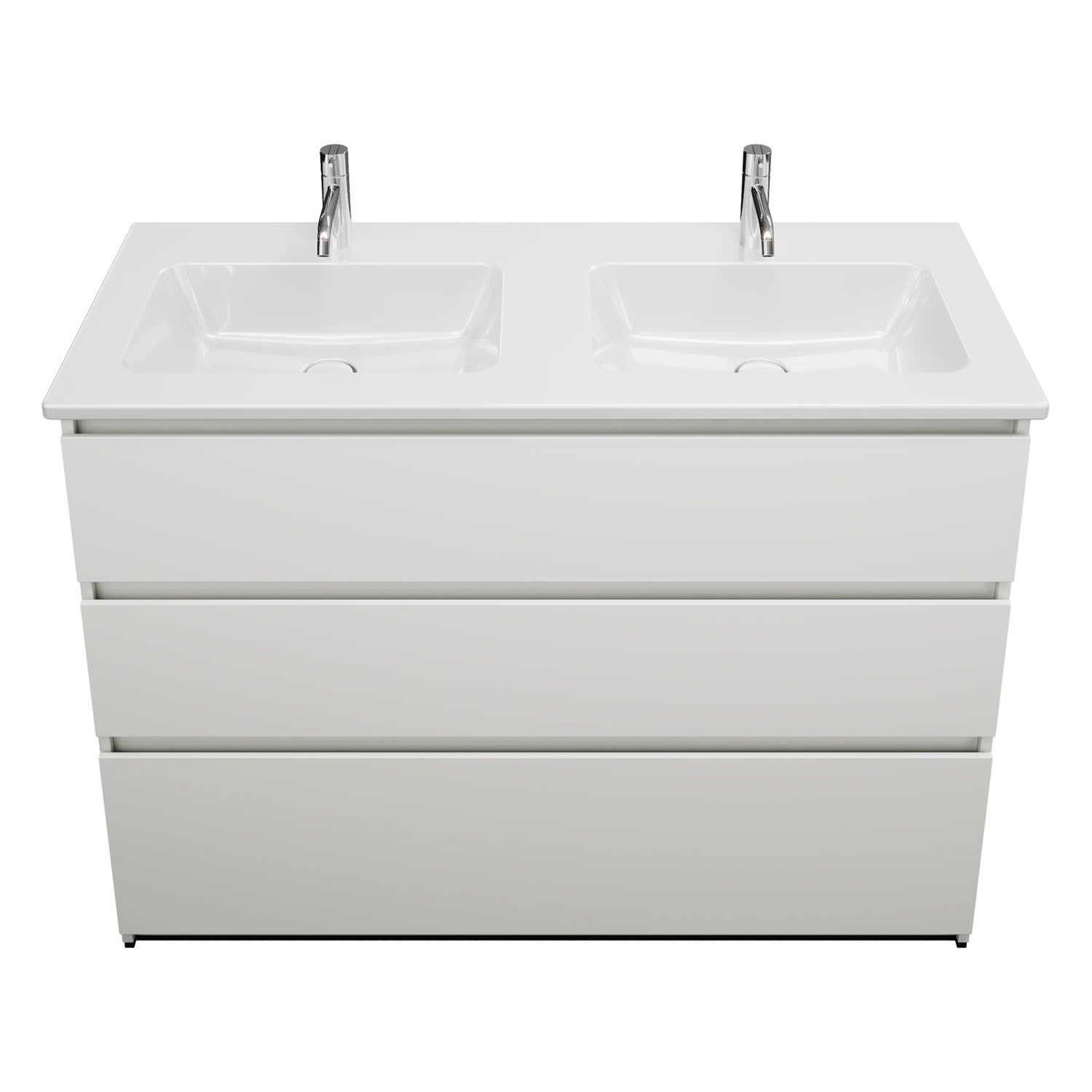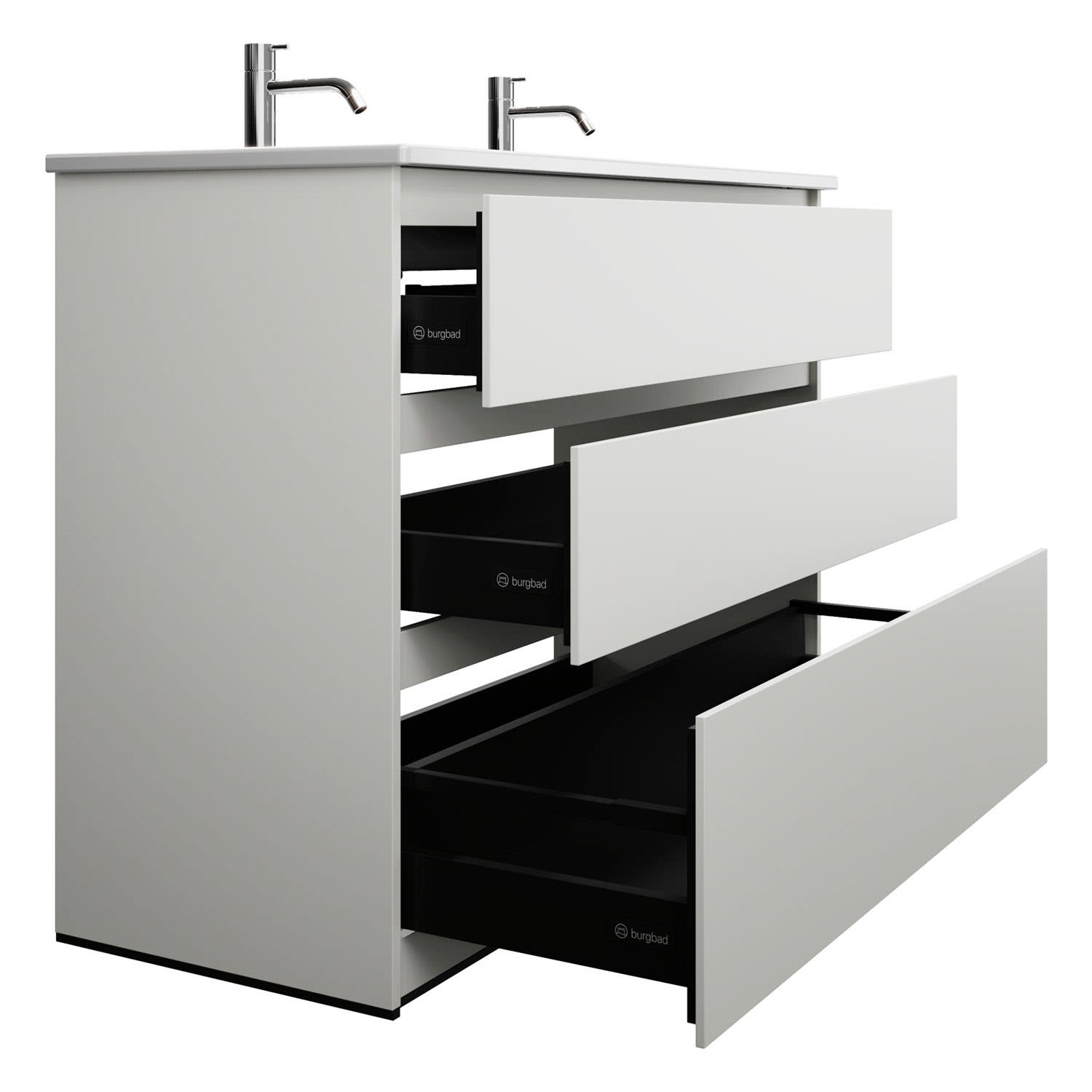 burgbad Lin20 Waschtischunterschrank mit Keramik-Doppelwaschtisch 123 cm, 3 Auszüge