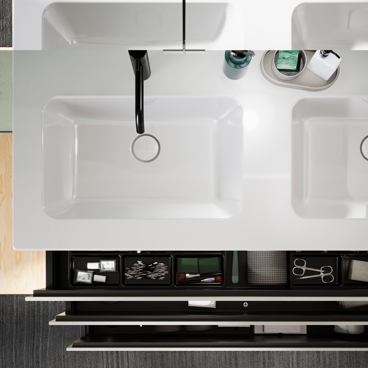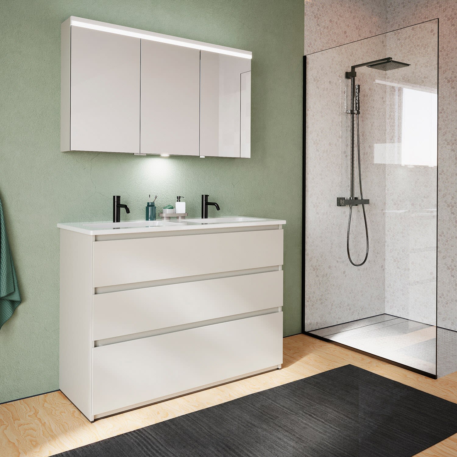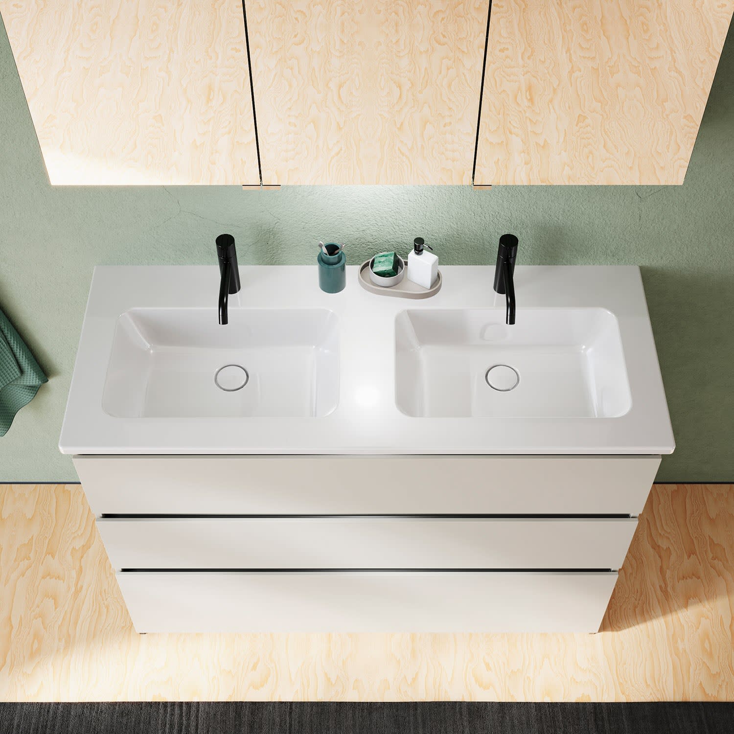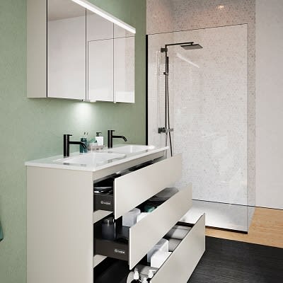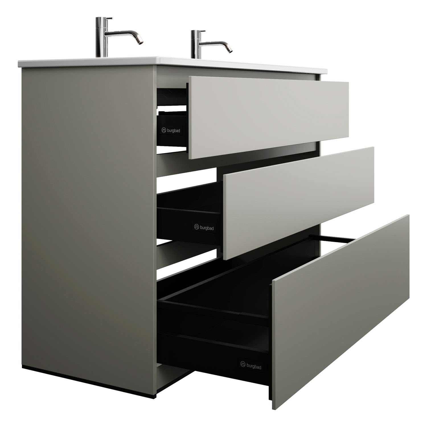 burgbad Lin20 Waschtischunterschrank mit Keramik-Doppelwaschtisch 123 cm, 3 Auszüge