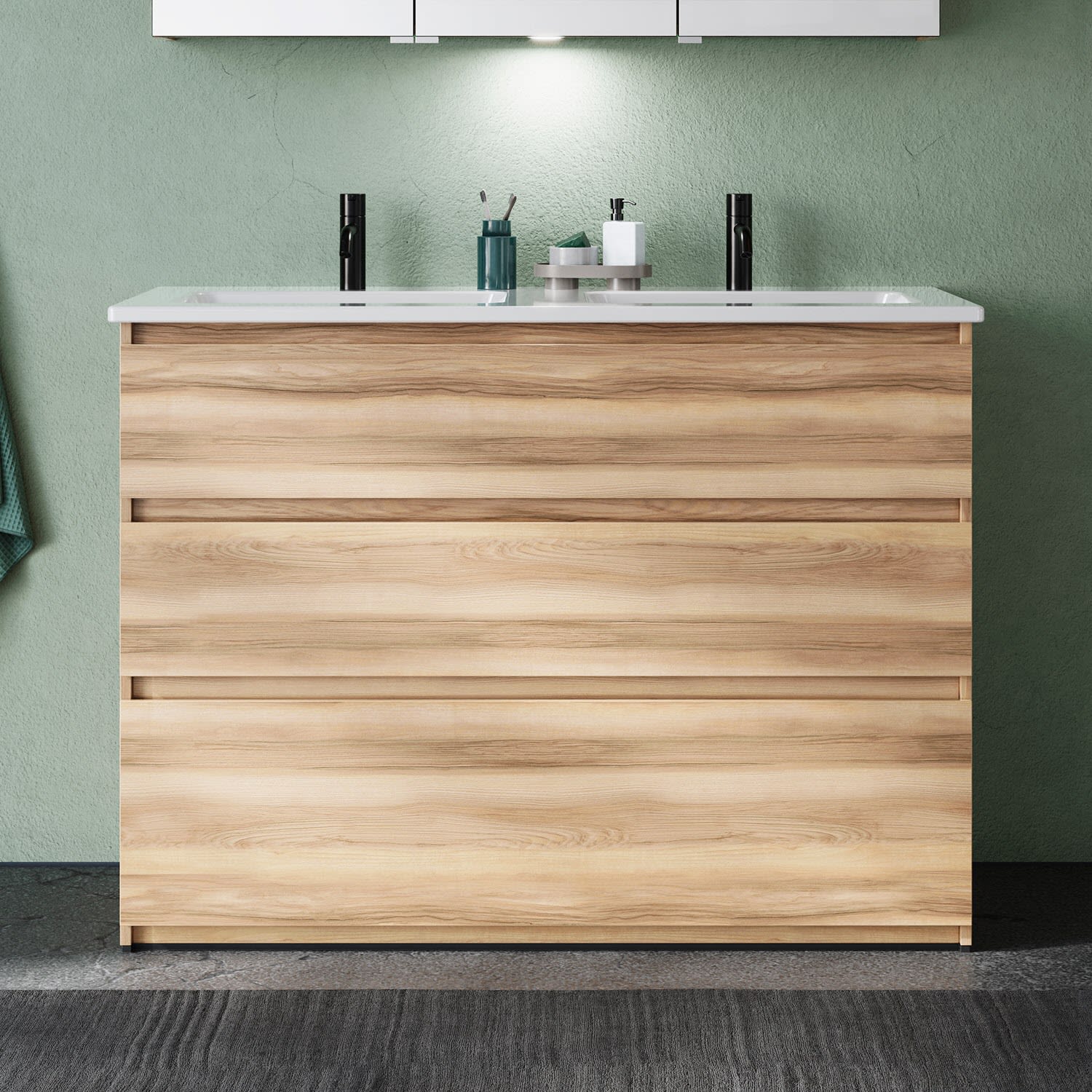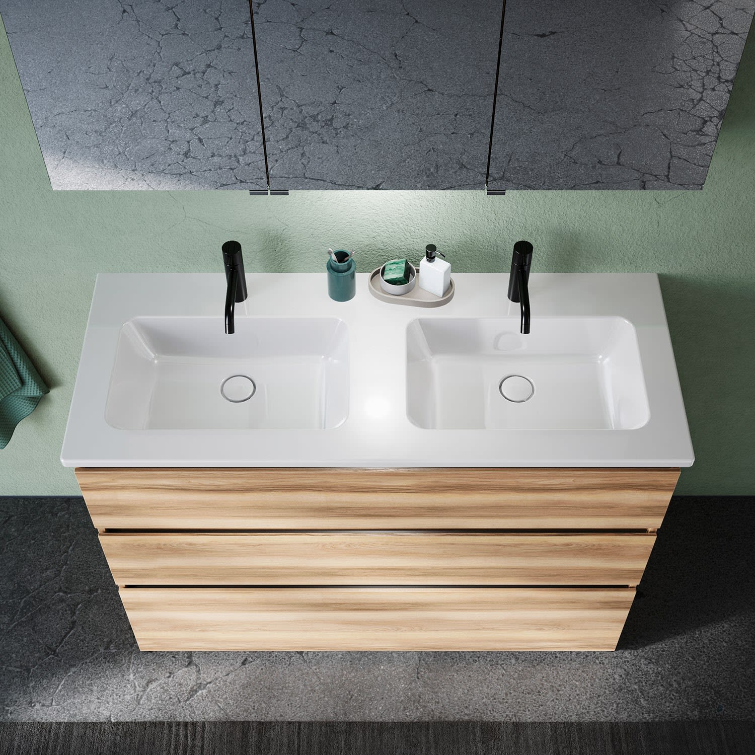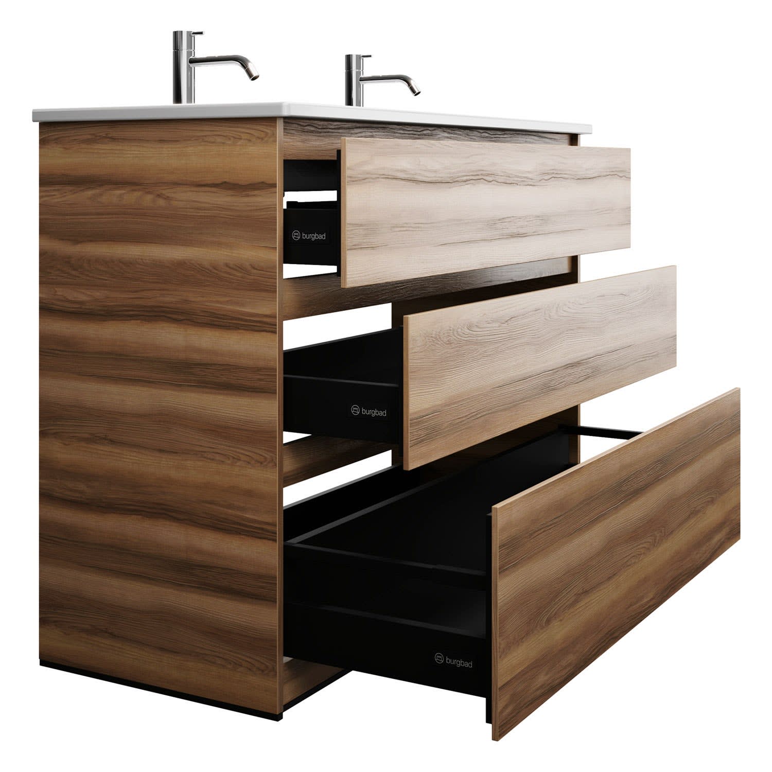 burgbad Lin20 Waschtischunterschrank mit Keramik-Doppelwaschtisch 123 cm, 3 Auszüge