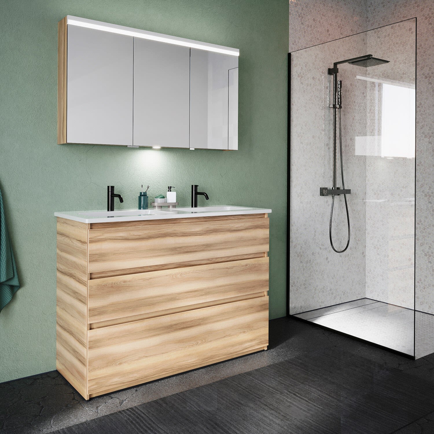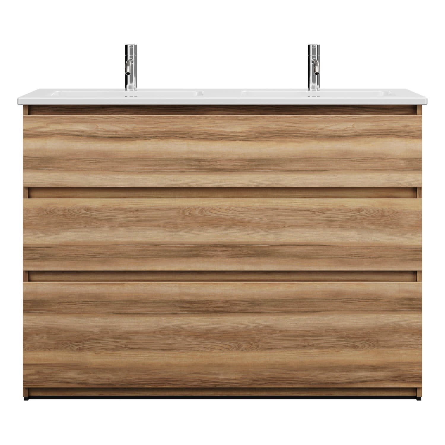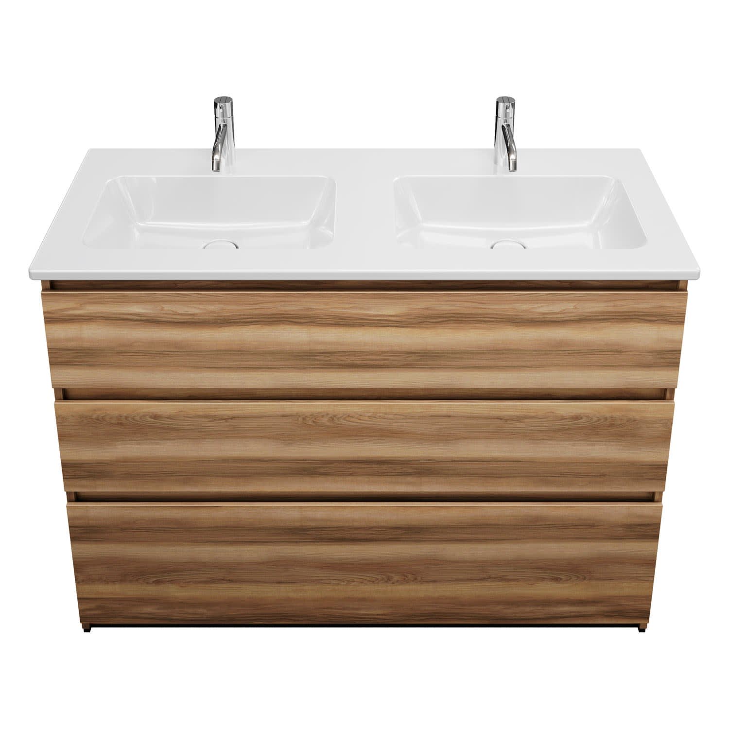 burgbad Lin20 Waschtischunterschrank mit Keramik-Doppelwaschtisch 123 cm, 3 Auszüge