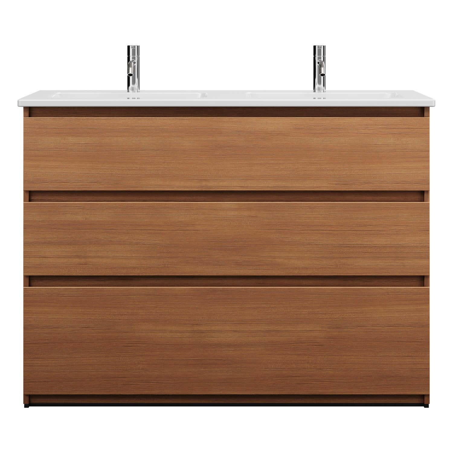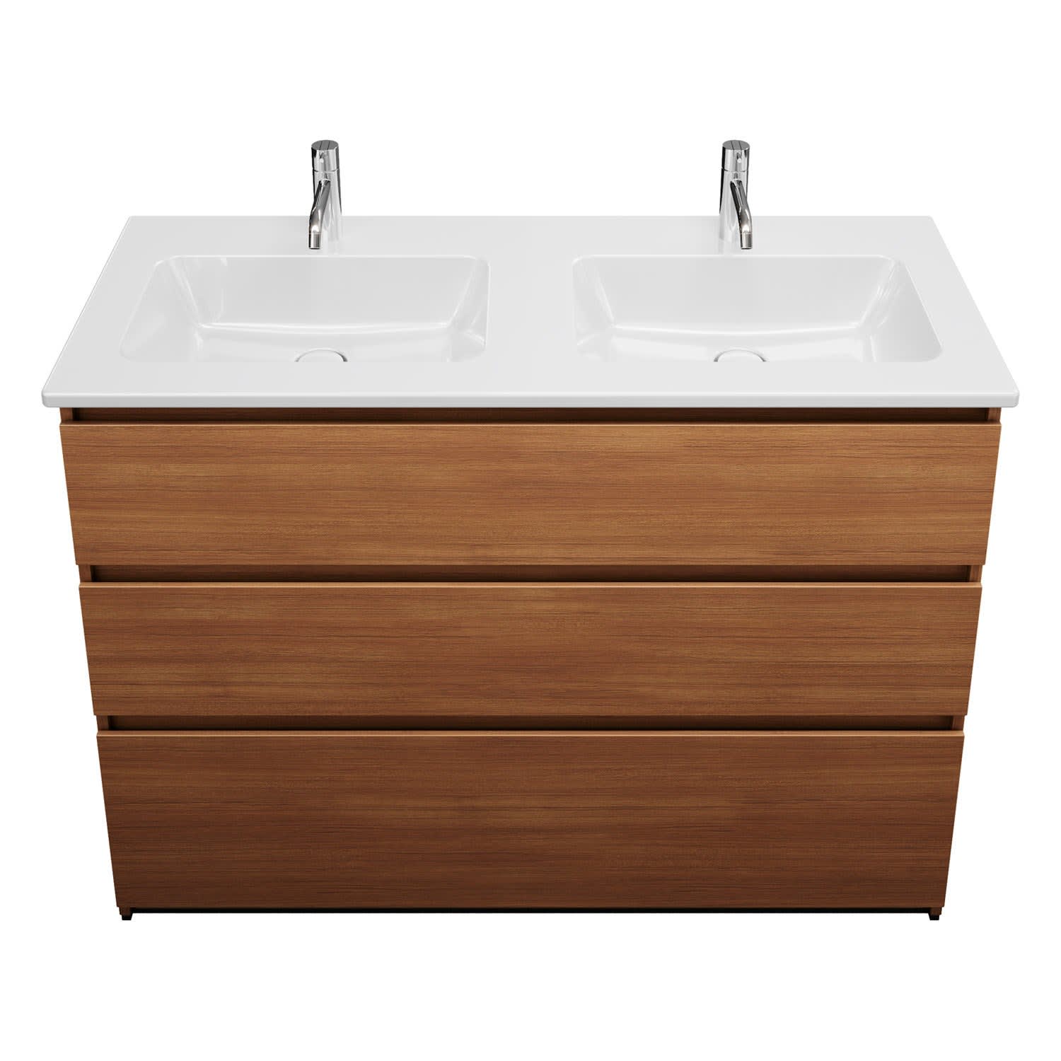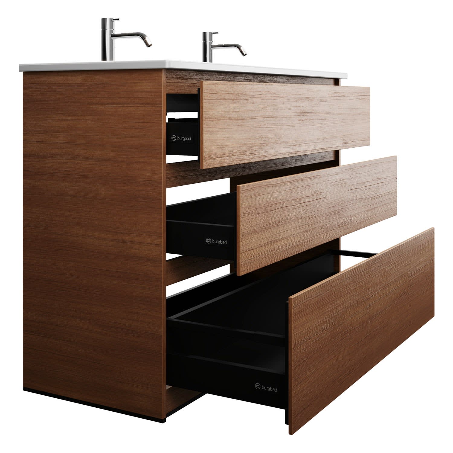 burgbad Lin20 Waschtischunterschrank mit Keramik-Doppelwaschtisch 123 cm, 3 Auszüge