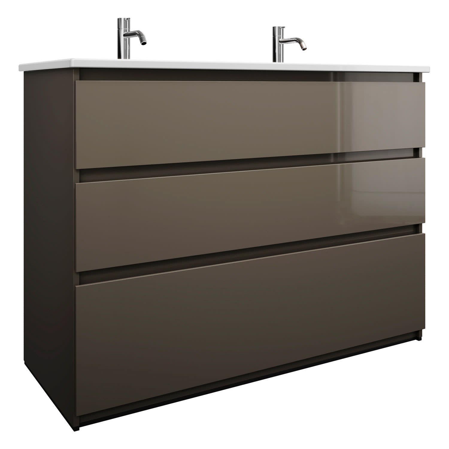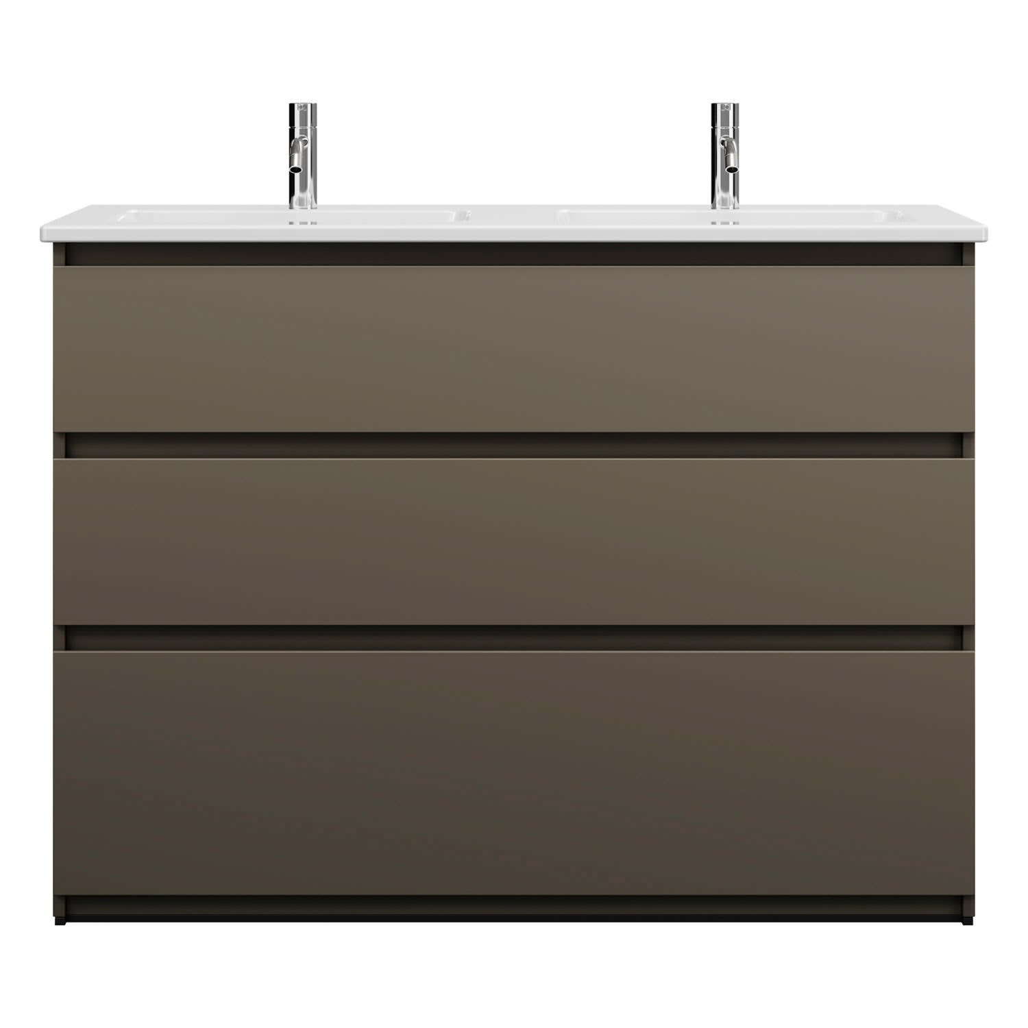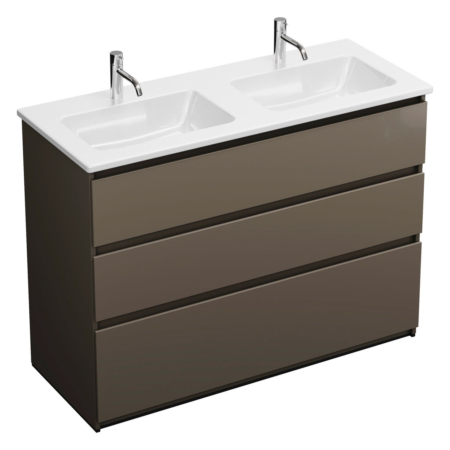 burgbad Lin20 Waschtischunterschrank mit Keramik-Doppelwaschtisch 123 cm, 3 Auszüge