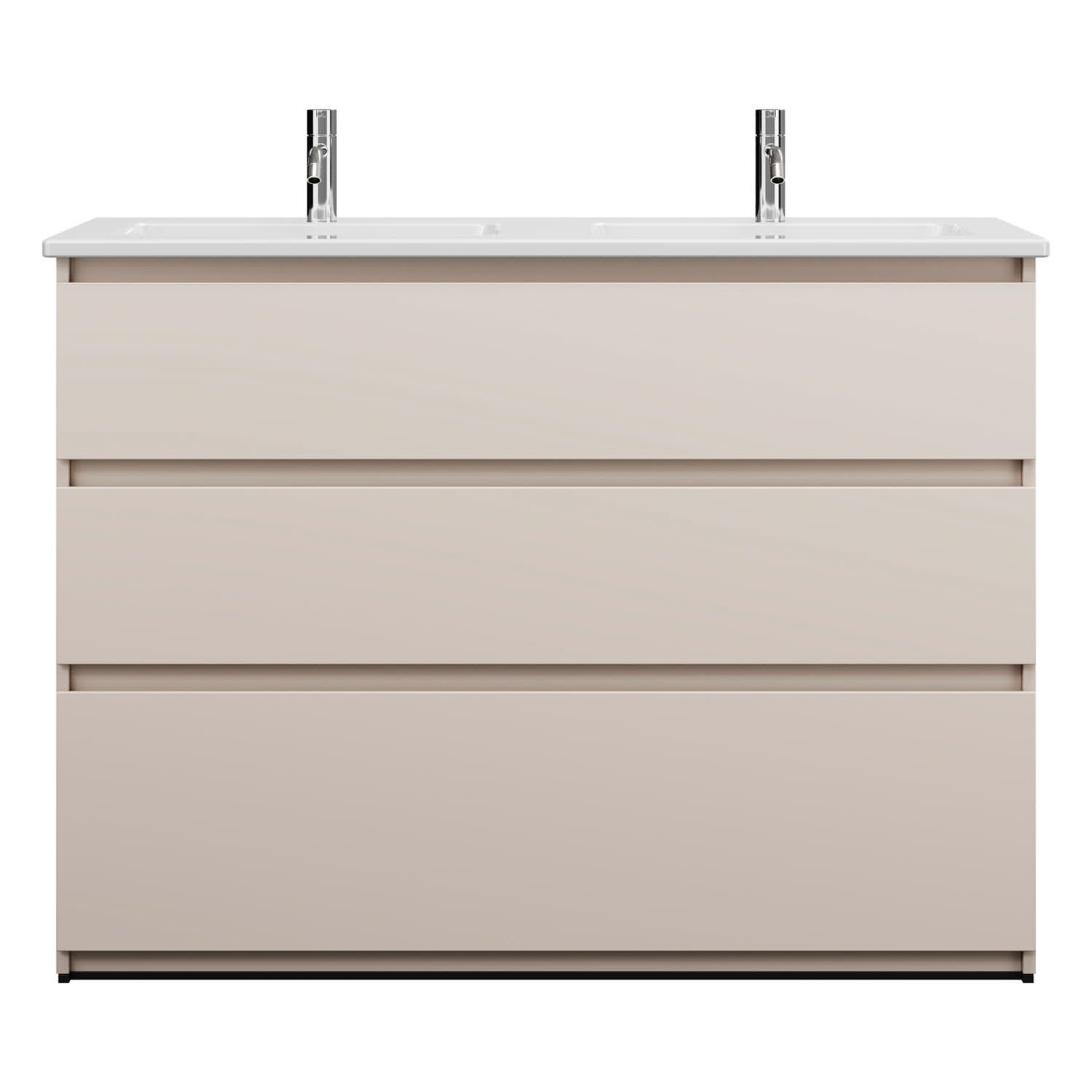 burgbad Lin20 Waschtischunterschrank mit Keramik-Doppelwaschtisch 123 cm, 3 Auszüge