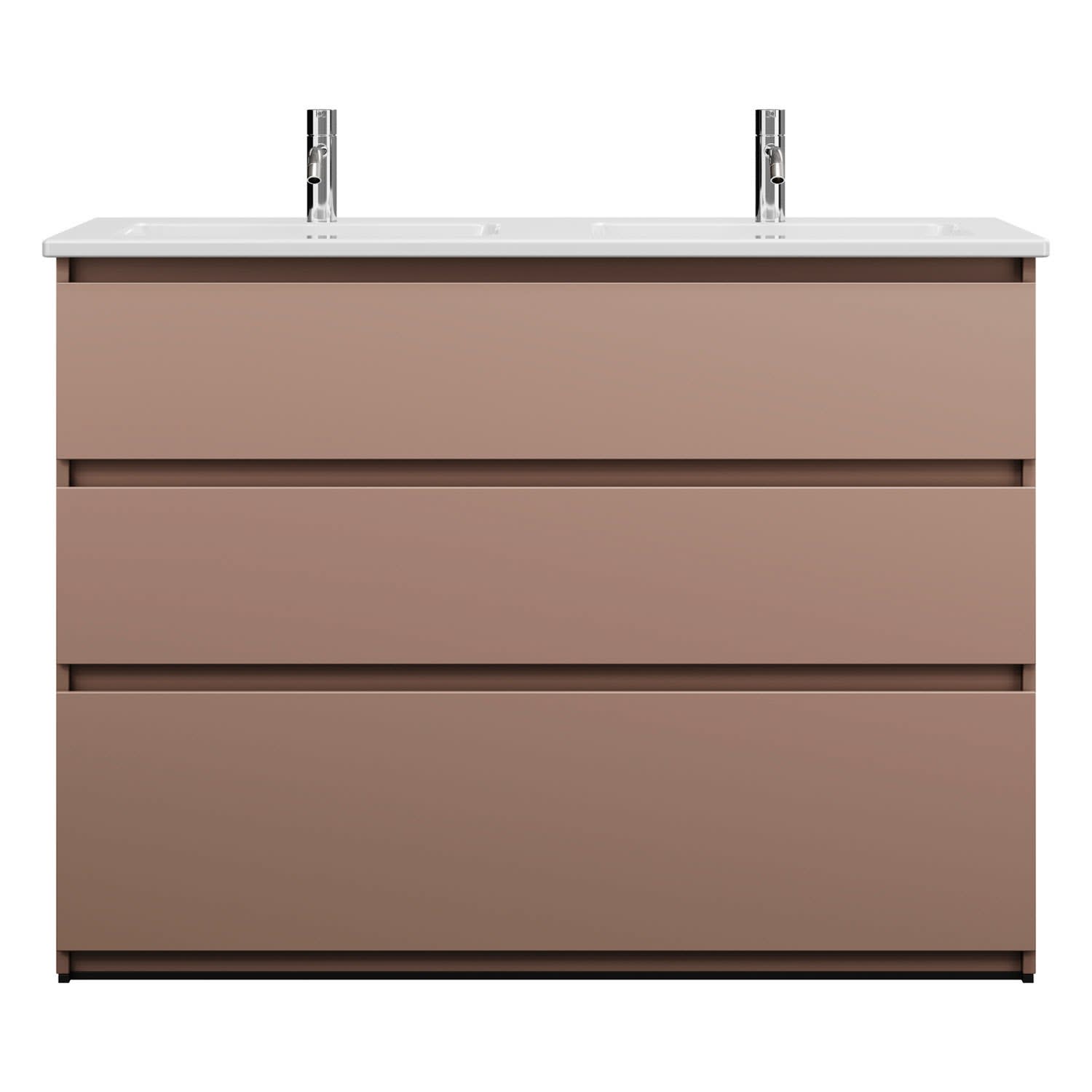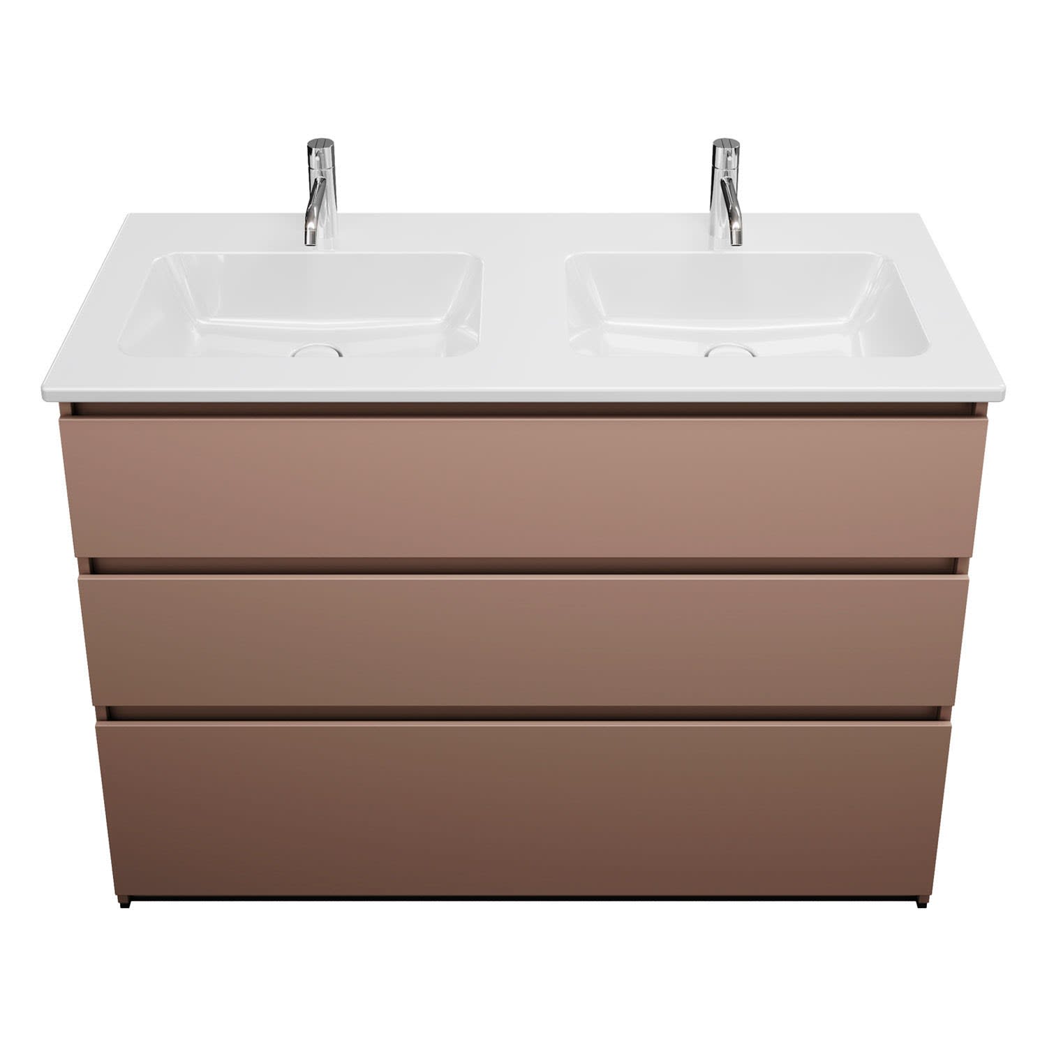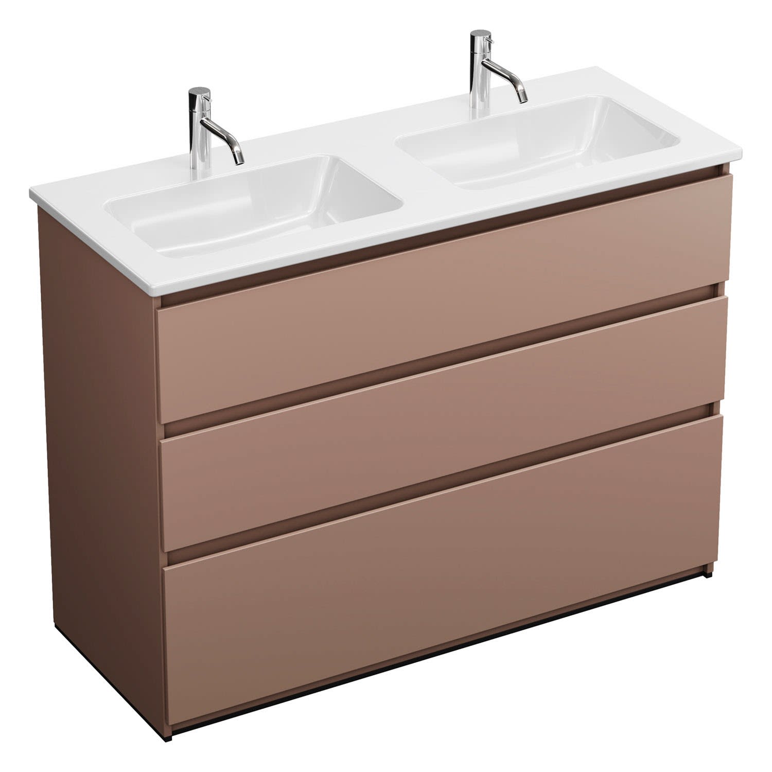 burgbad Lin20 Waschtischunterschrank mit Keramik-Doppelwaschtisch 123 cm, 3 Auszüge