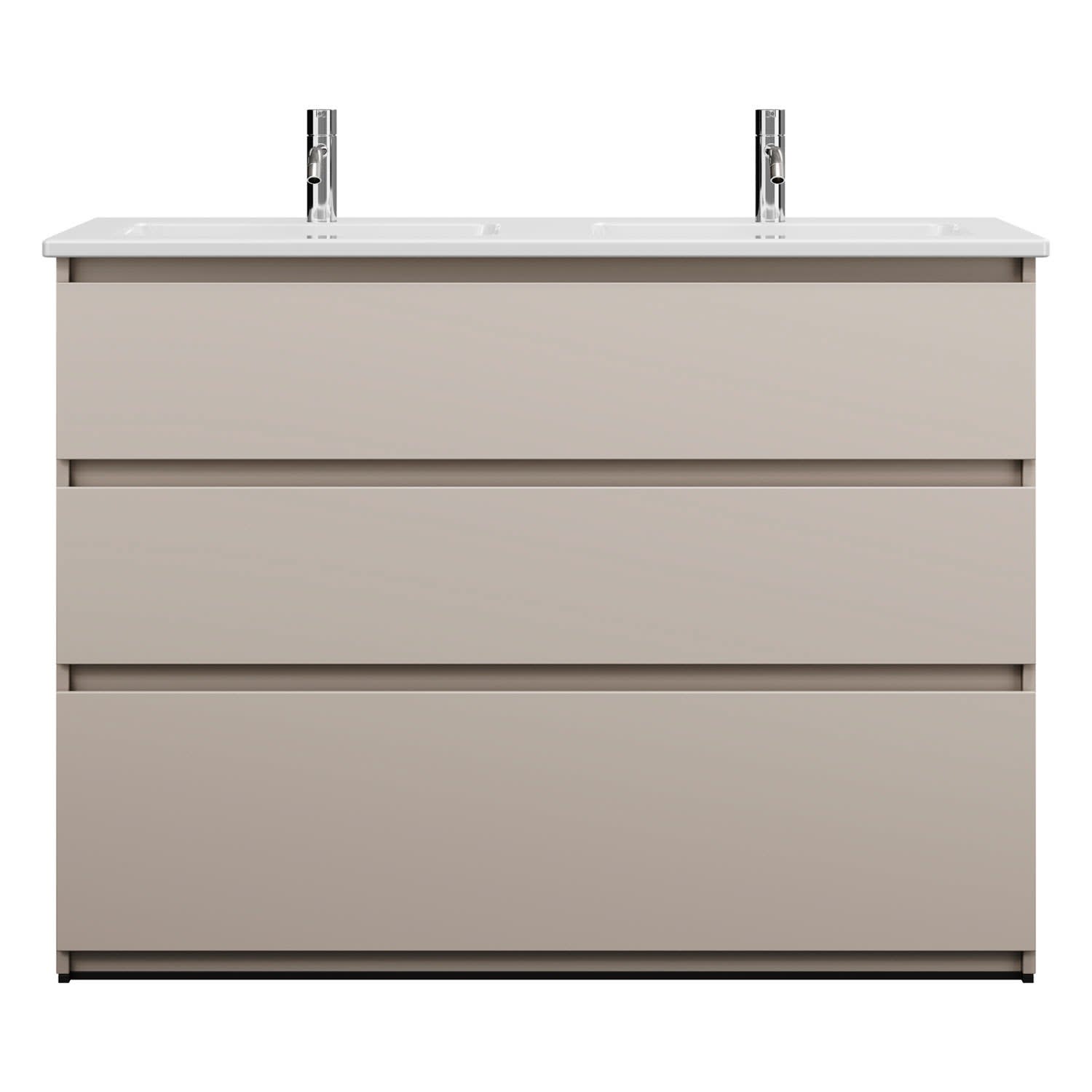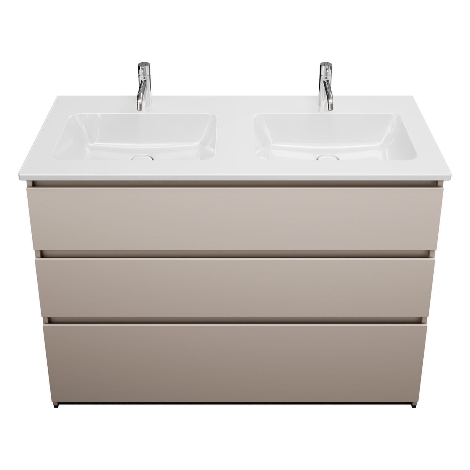 burgbad Lin20 Waschtischunterschrank mit Keramik-Doppelwaschtisch 123 cm, 3 Auszüge