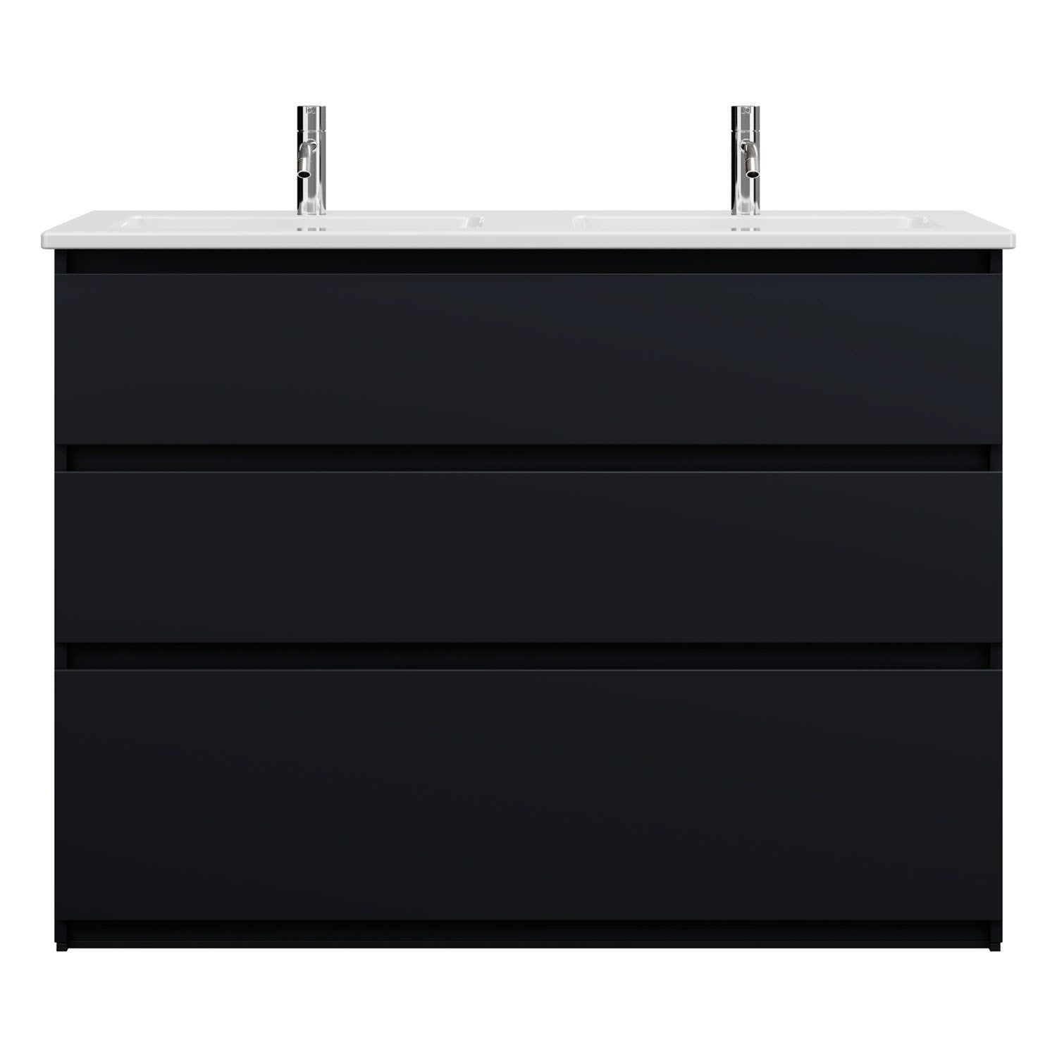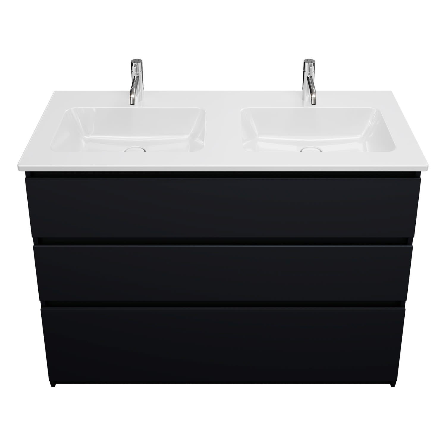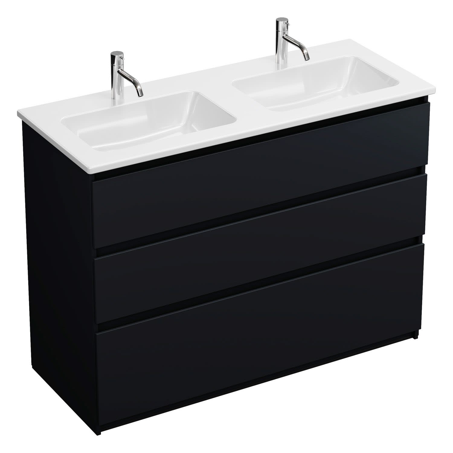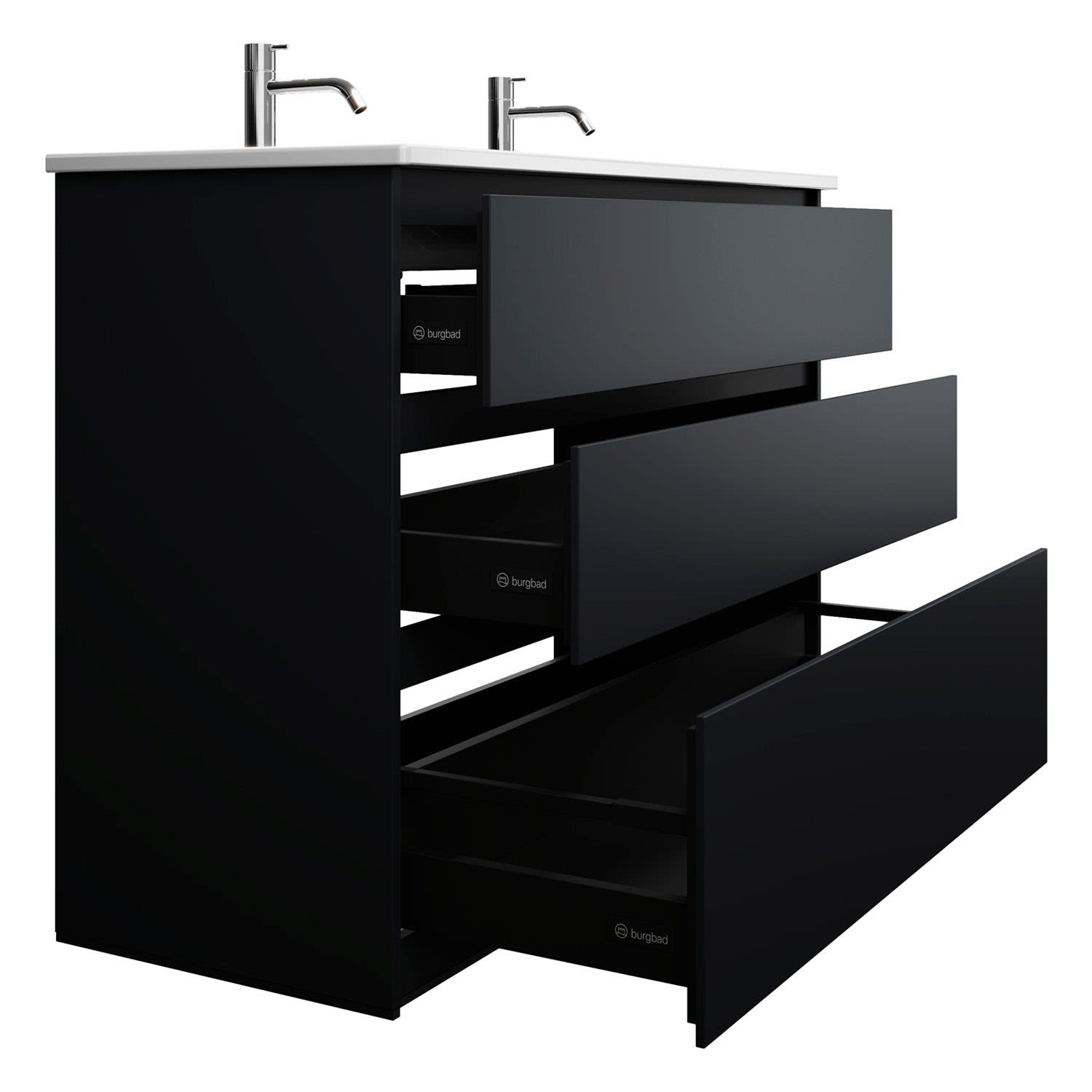 burgbad Lin20 Waschtischunterschrank mit Keramik-Doppelwaschtisch 123 cm, 3 Auszüge