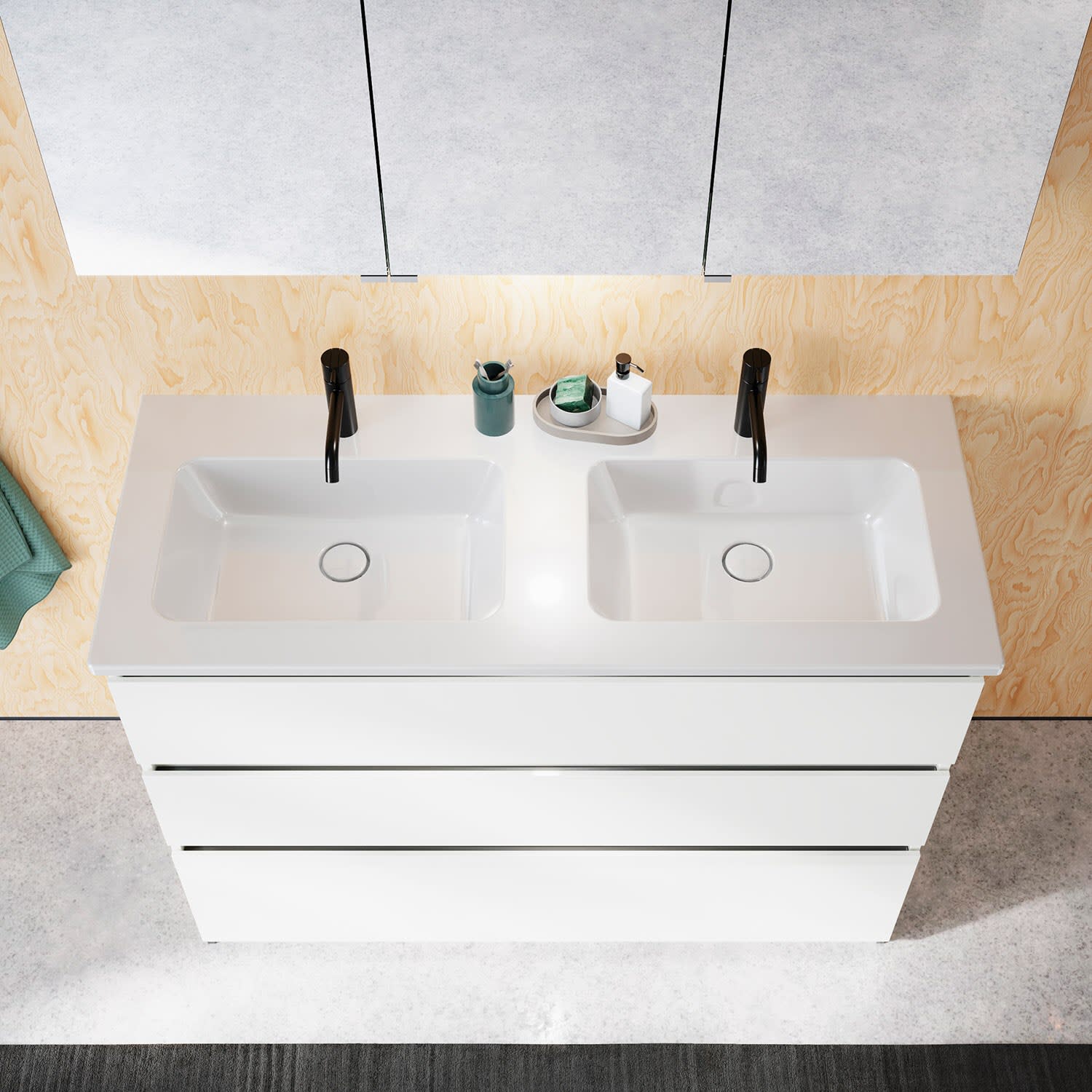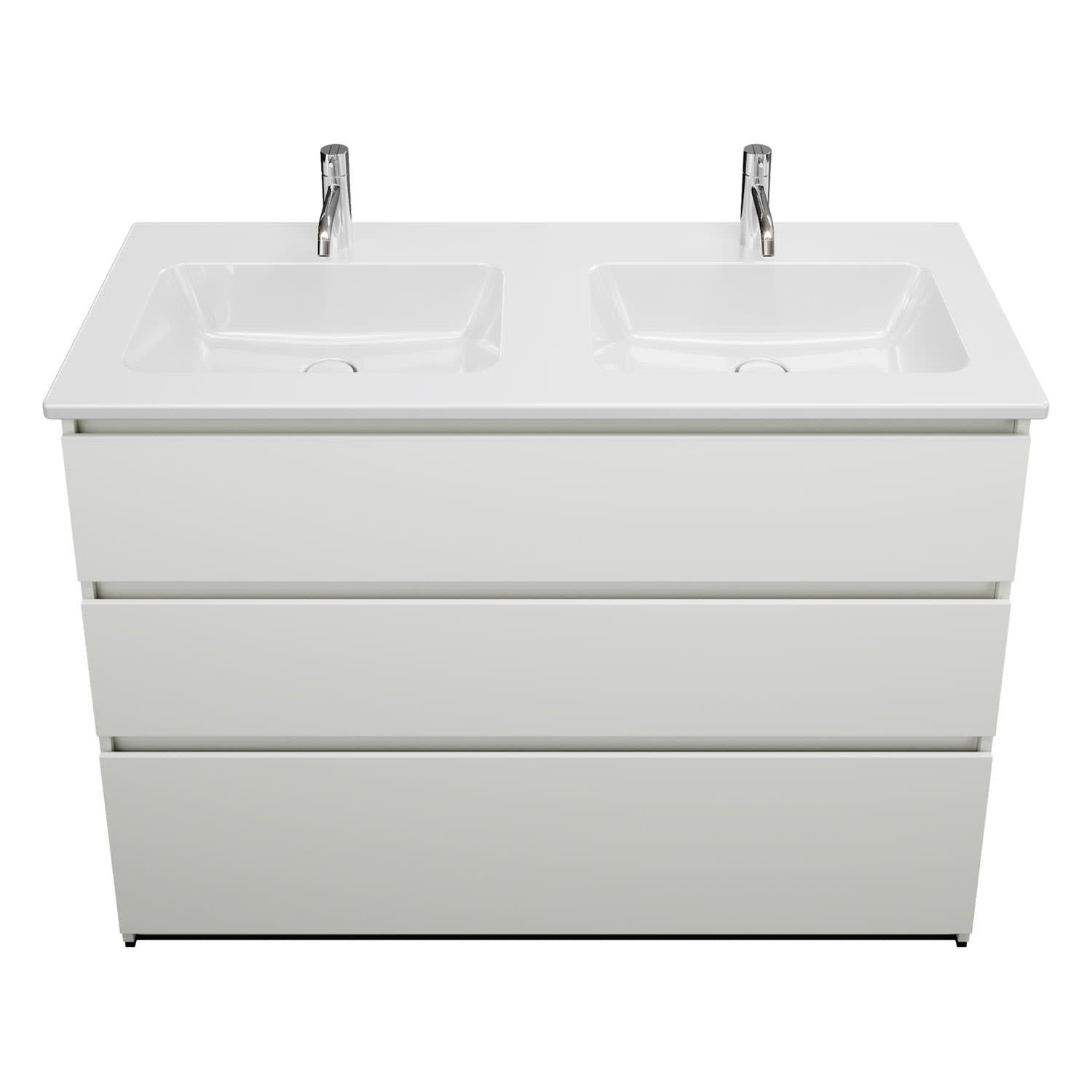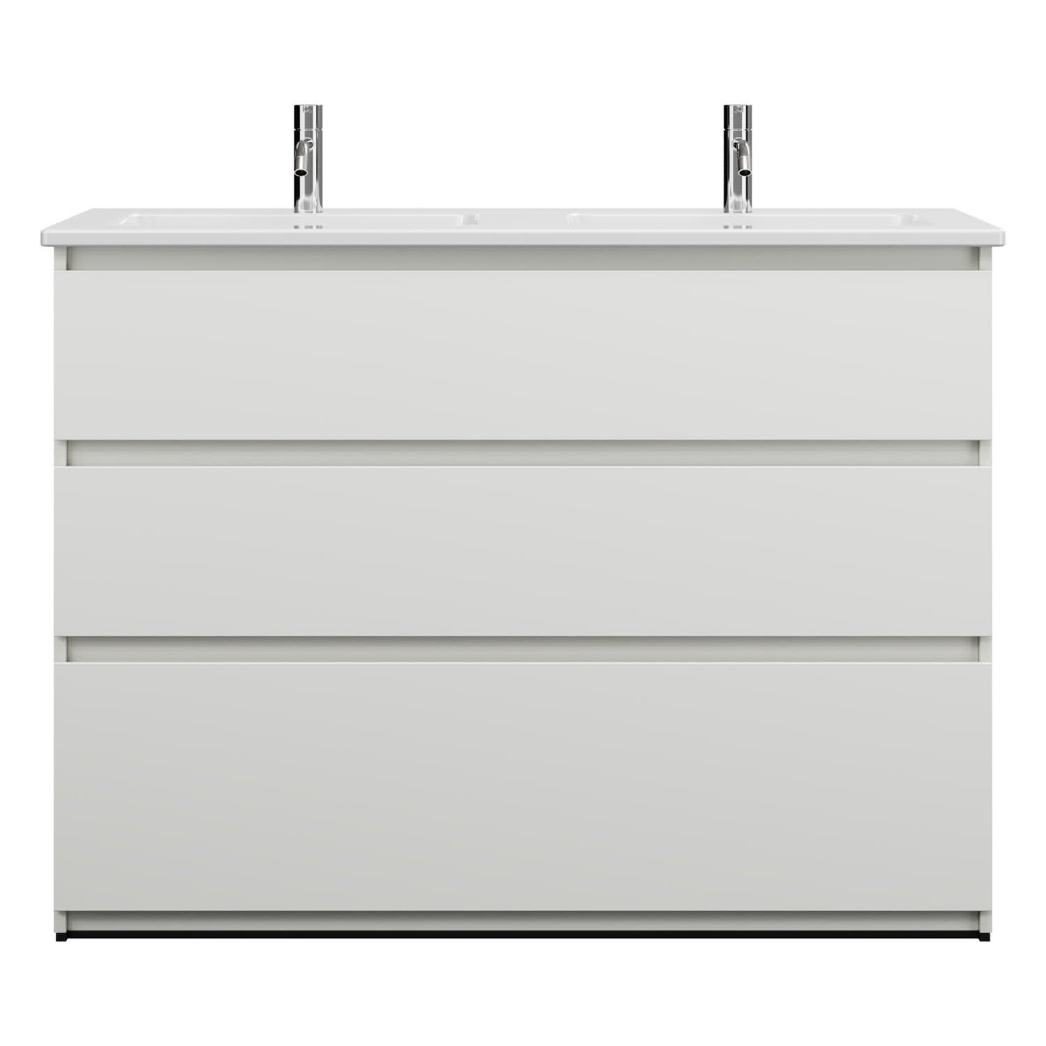 burgbad Lin20 Waschtischunterschrank mit Keramik-Doppelwaschtisch 123 cm, 3 Auszüge