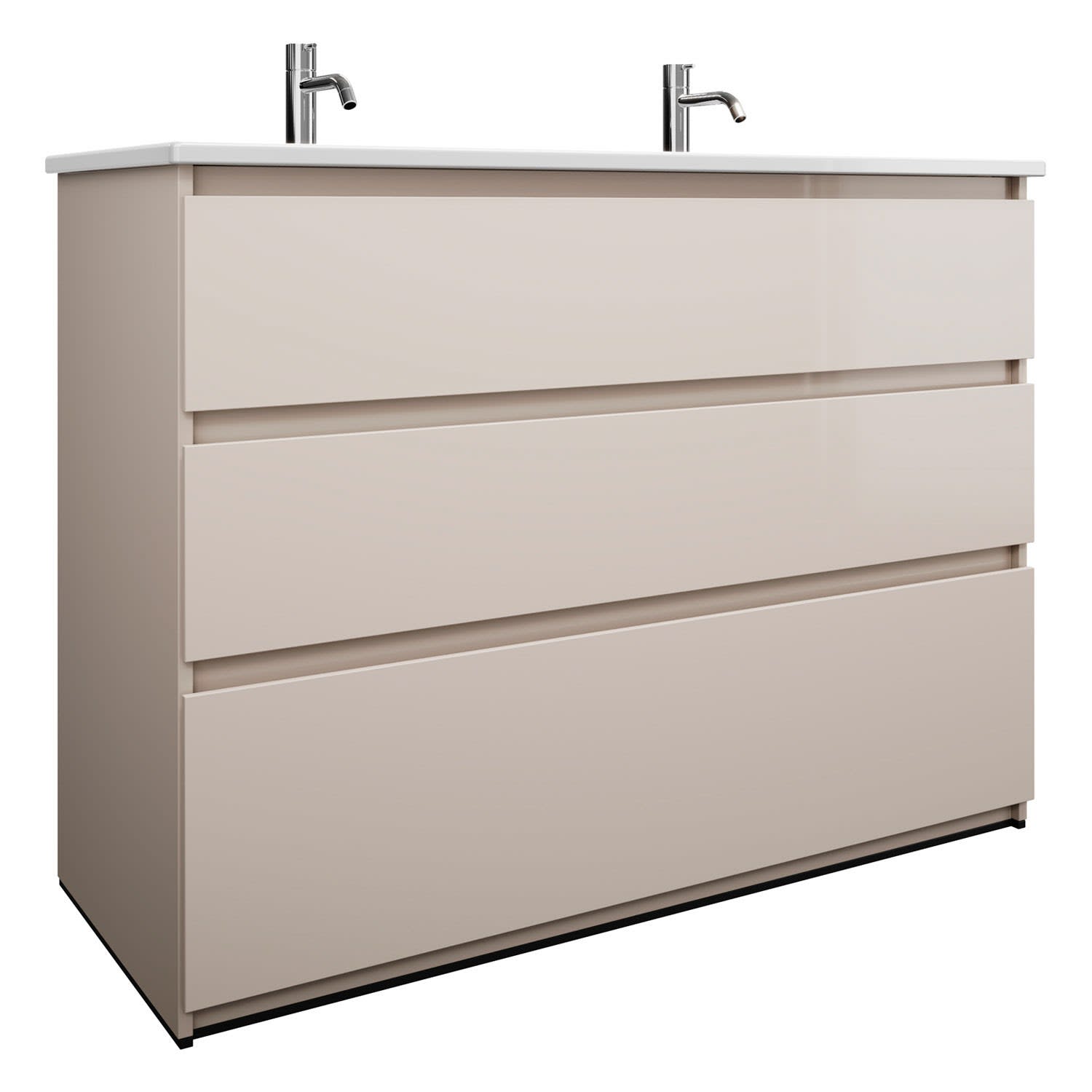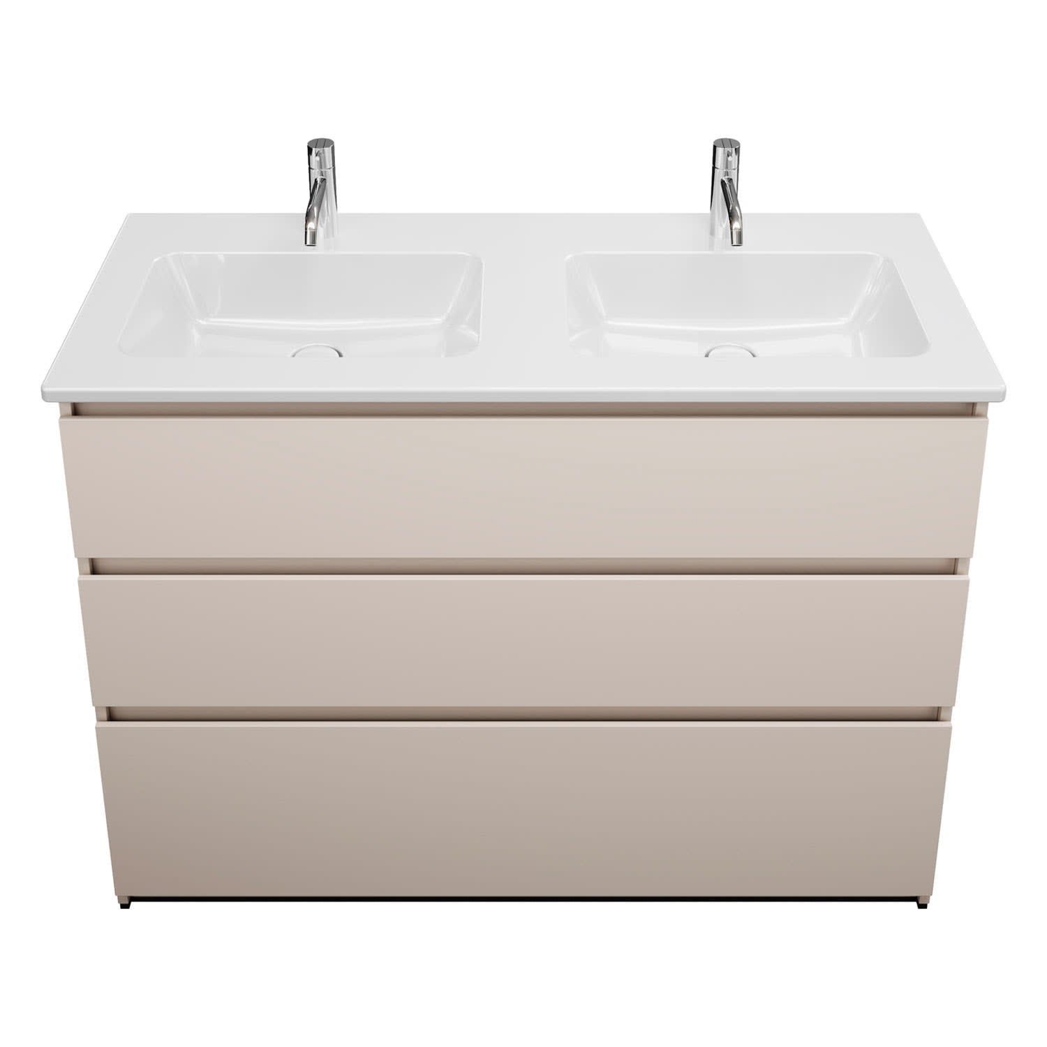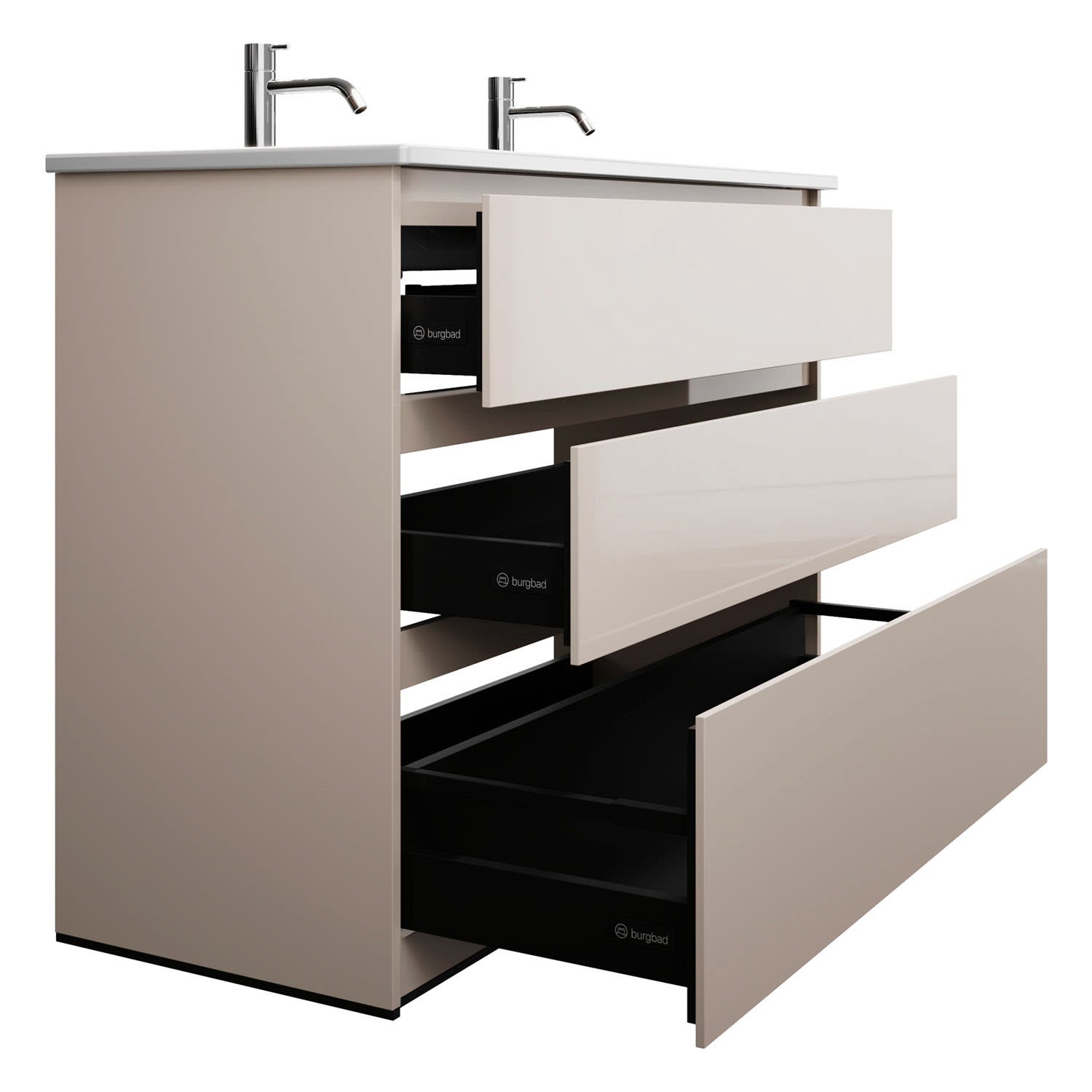burgbad Lin20 Waschtischunterschrank mit Keramik-Doppelwaschtisch 123 cm, 3 Auszüge