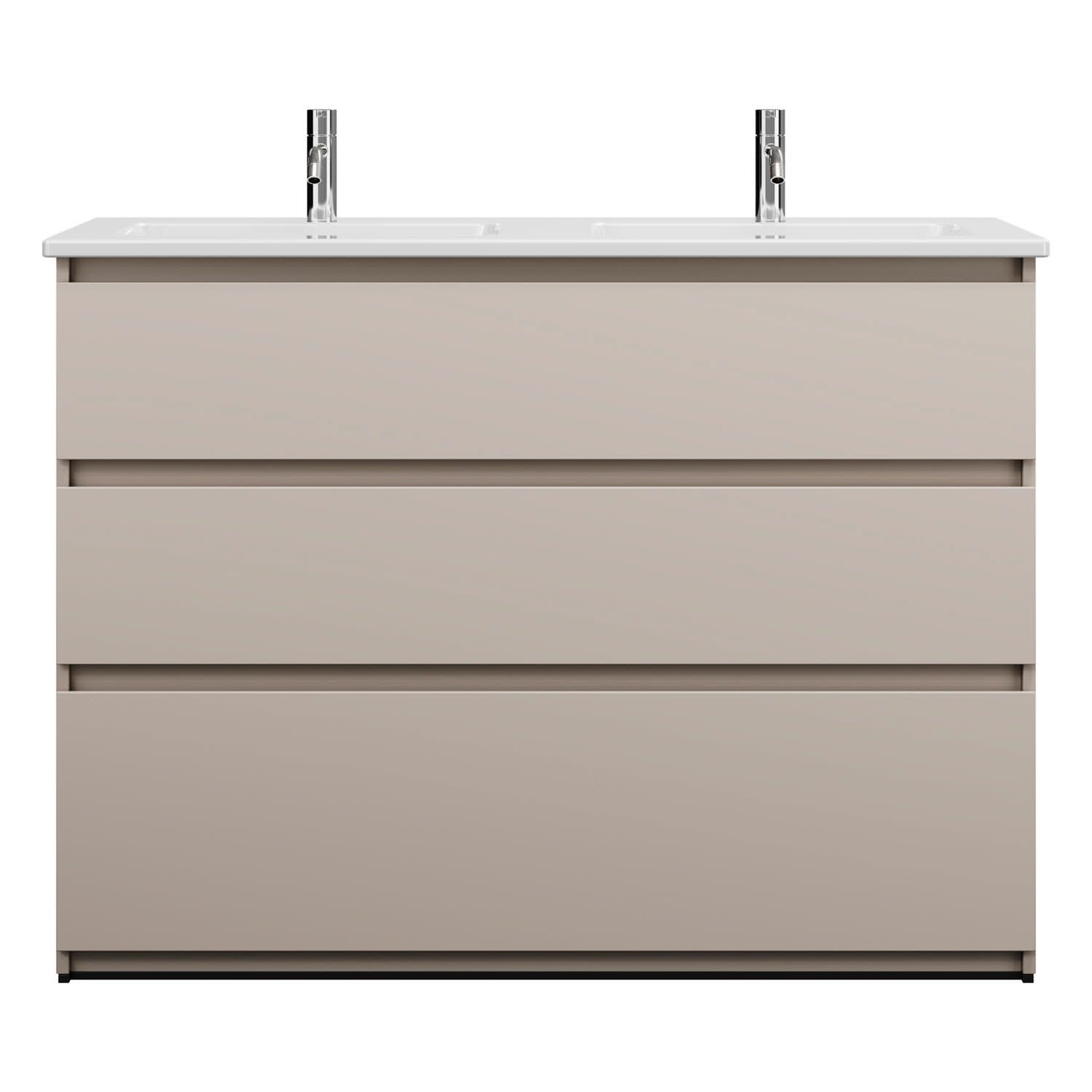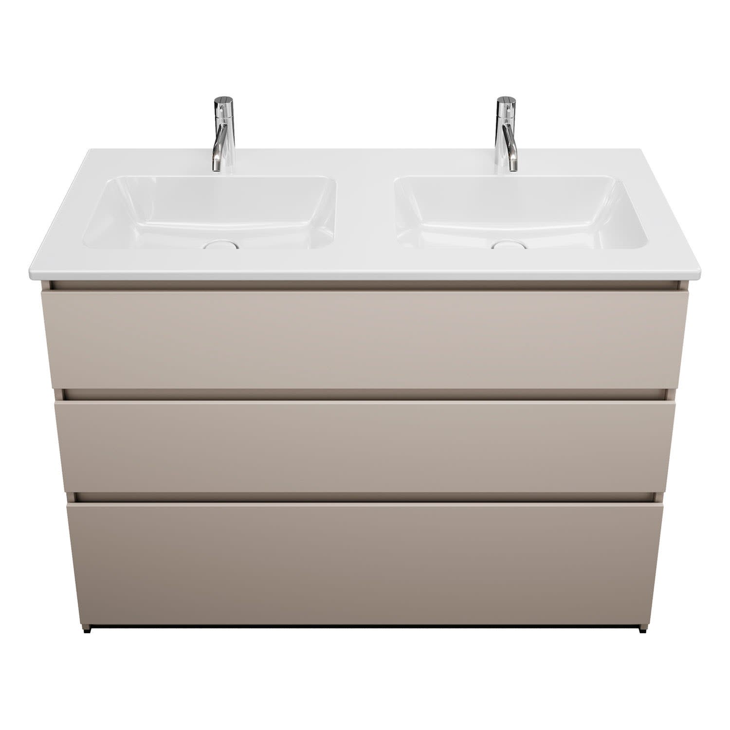 burgbad Lin20 Waschtischunterschrank mit Keramik-Doppelwaschtisch 123 cm, 3 Auszüge