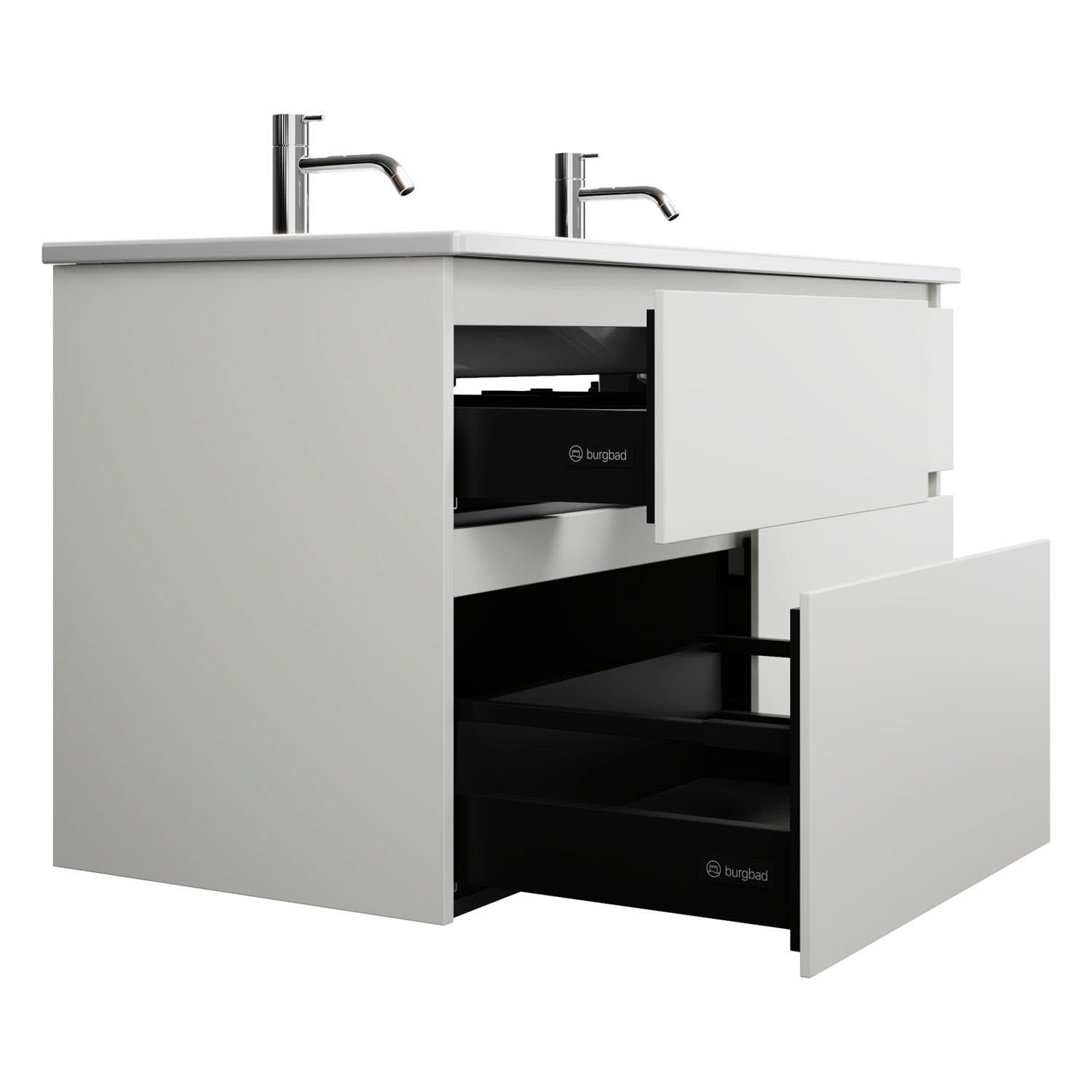 burgbad Lin20 Waschtischunterschrank mit Keramik-Doppelwaschtisch 123 cm, 4 Auszüge