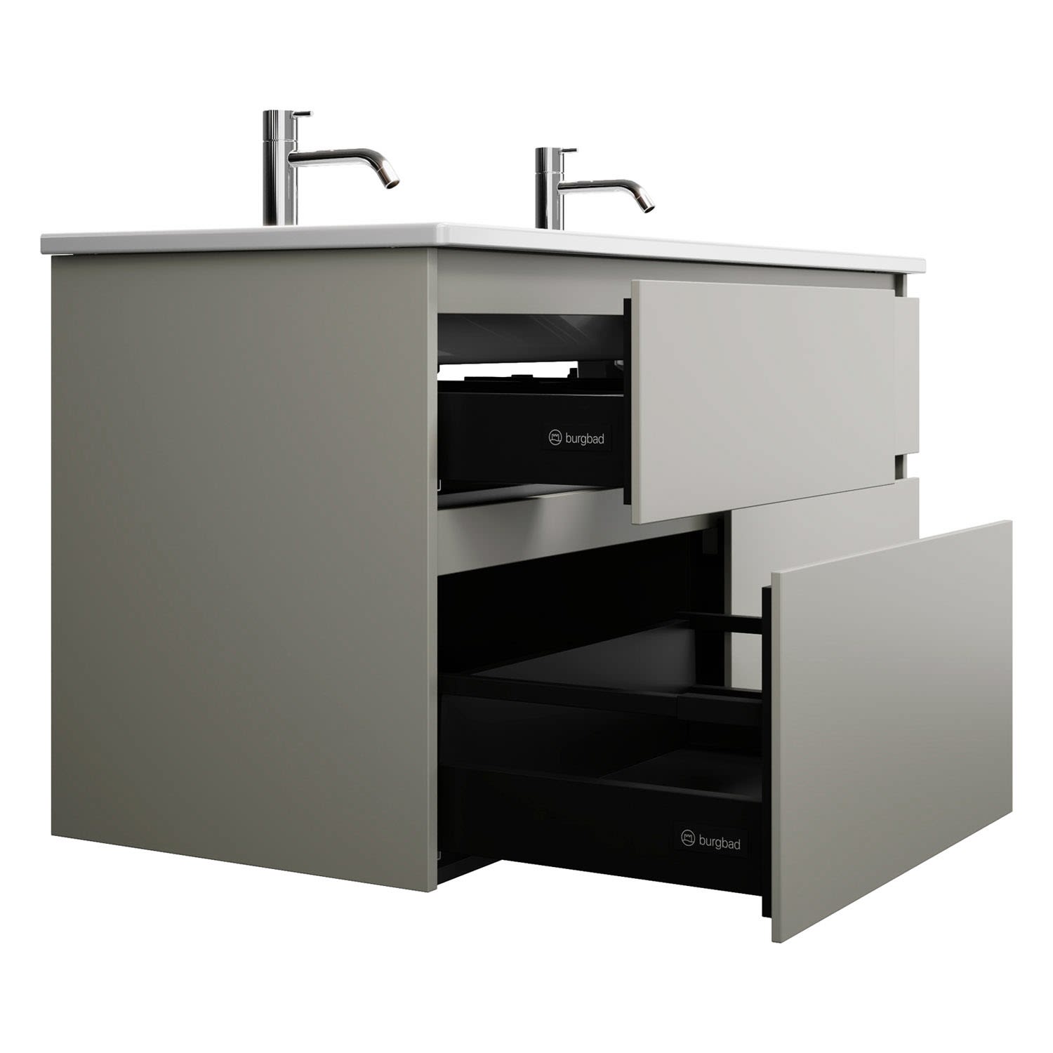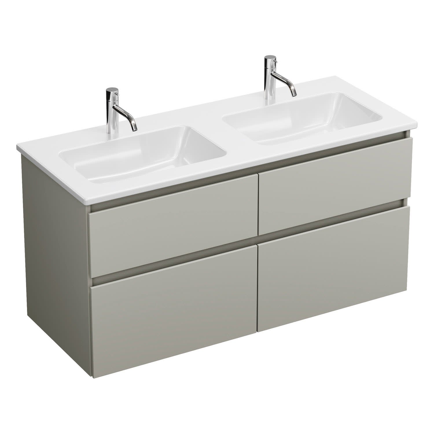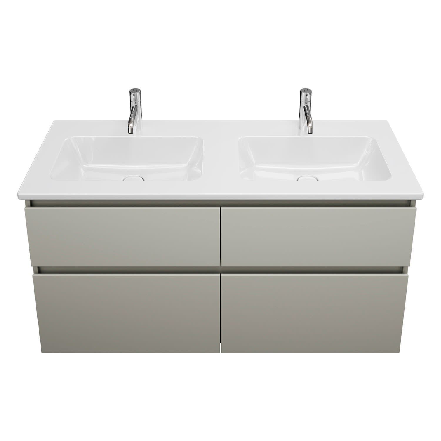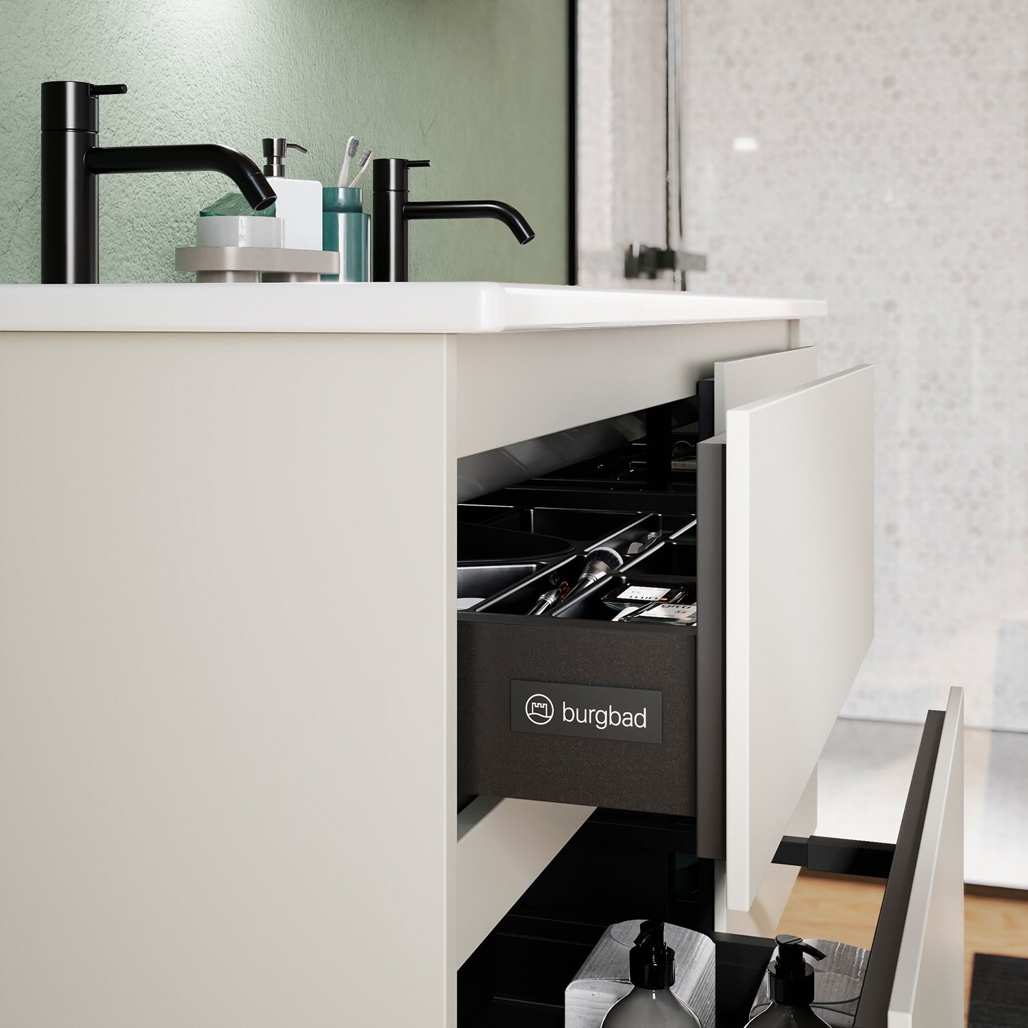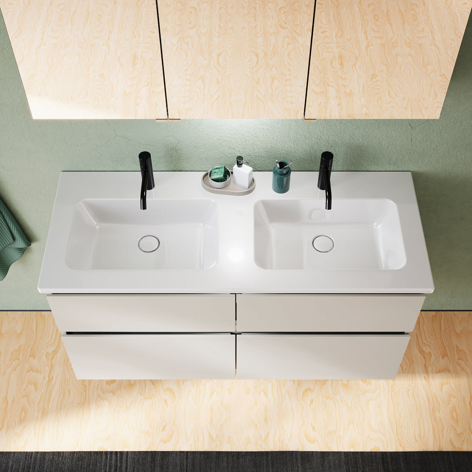 burgbad Lin20 Waschtischunterschrank mit Keramik-Doppelwaschtisch 123 cm, 4 Auszüge