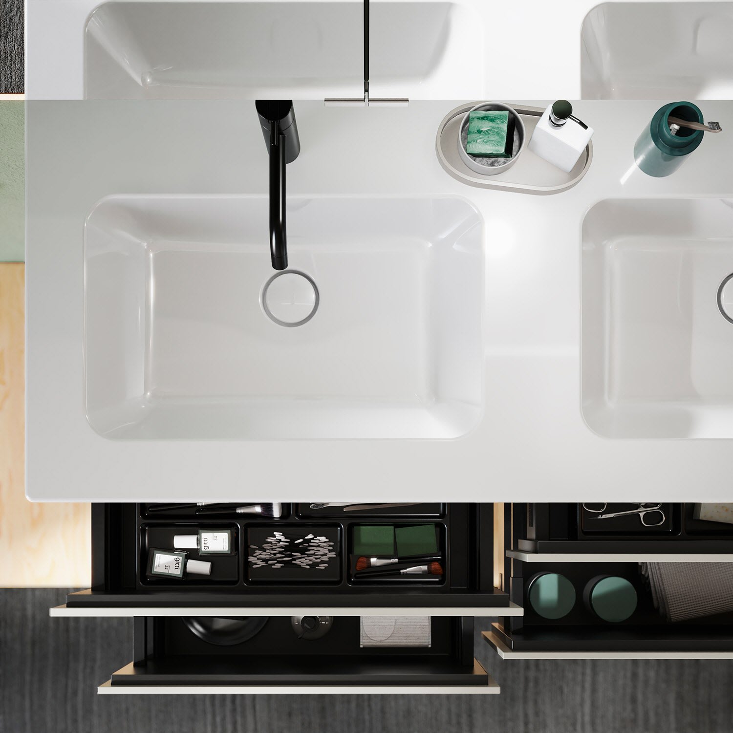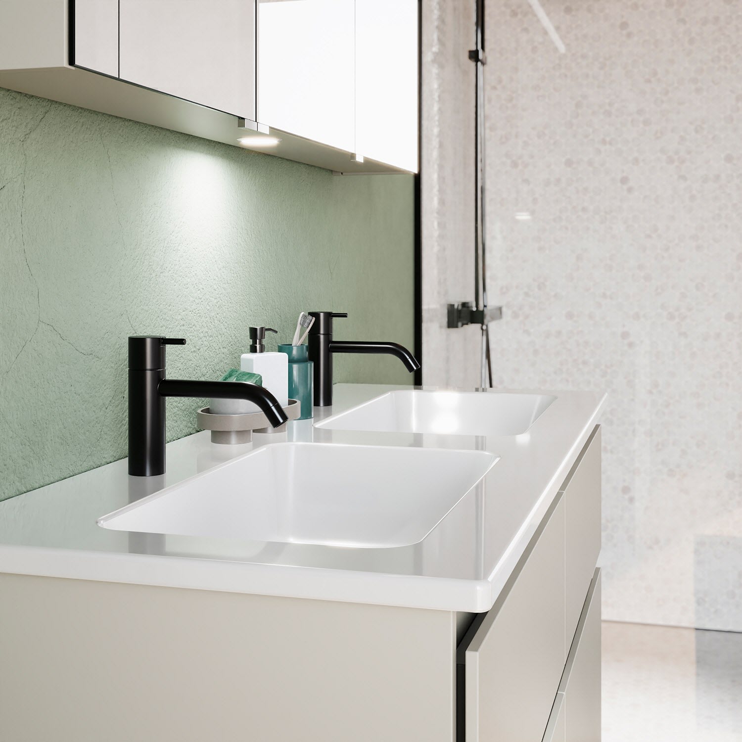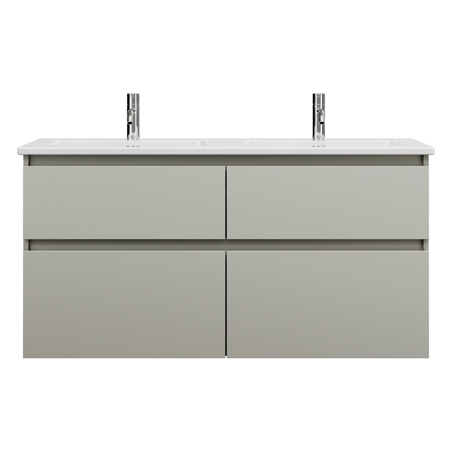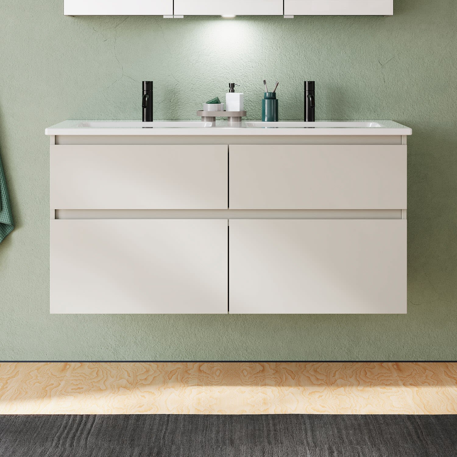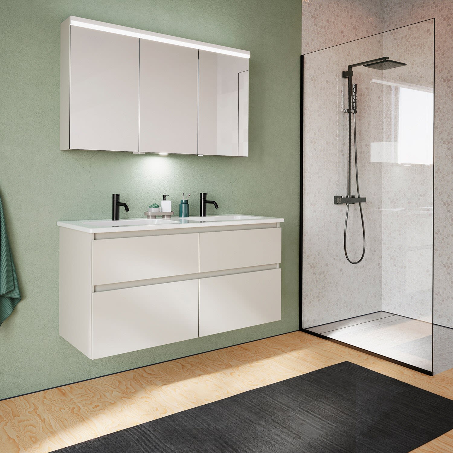 burgbad Lin20 Waschtischunterschrank mit Keramik-Doppelwaschtisch 123 cm, 4 Auszüge