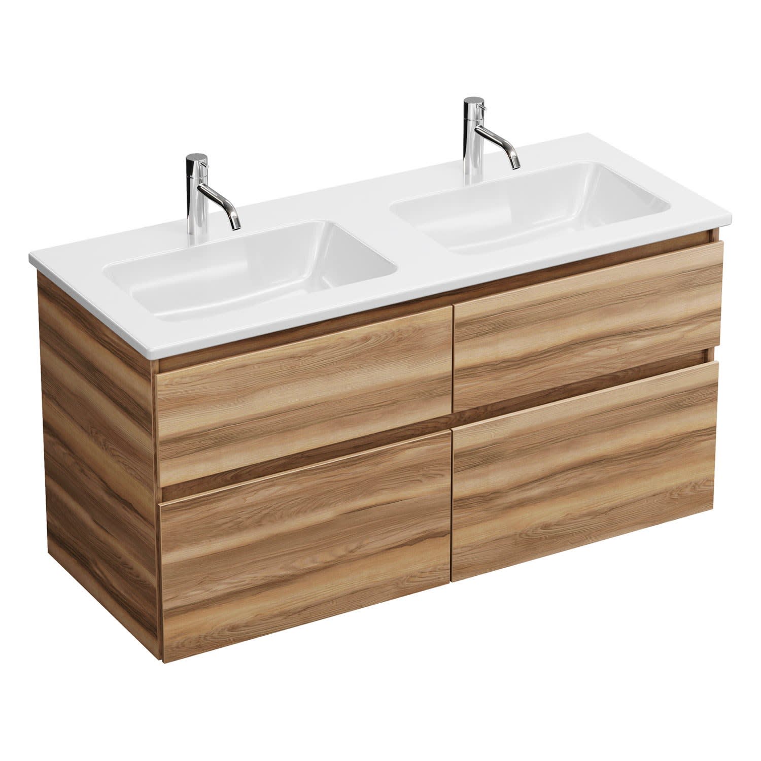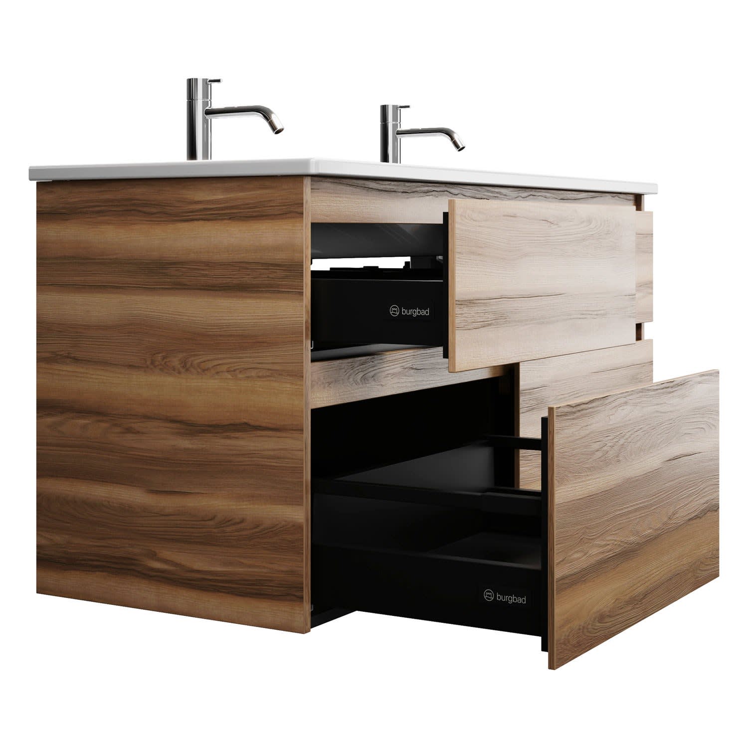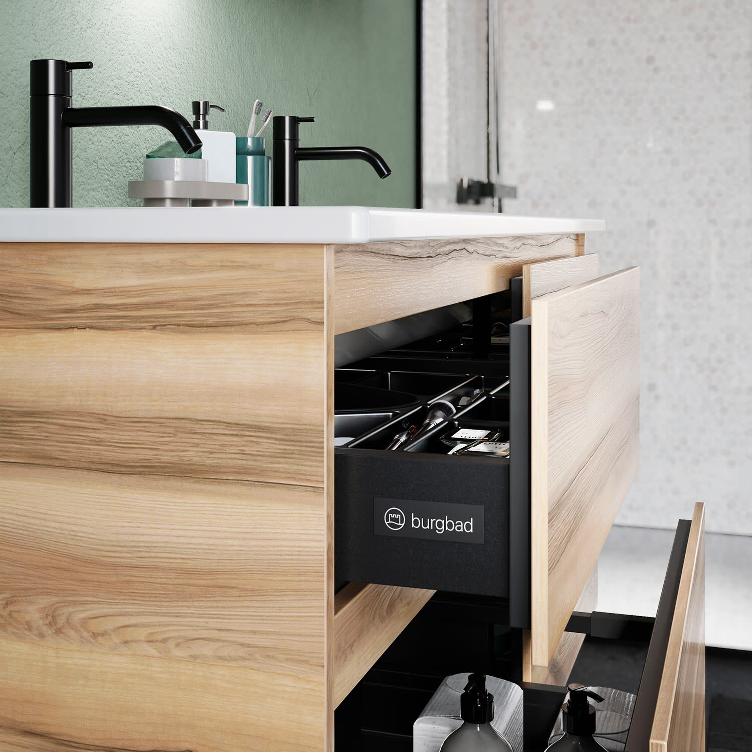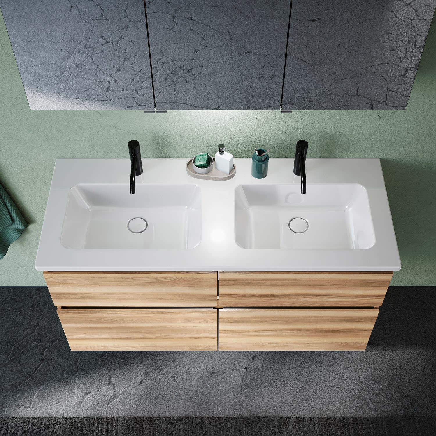 burgbad Lin20 Waschtischunterschrank mit Keramik-Doppelwaschtisch 123 cm, 4 Auszüge