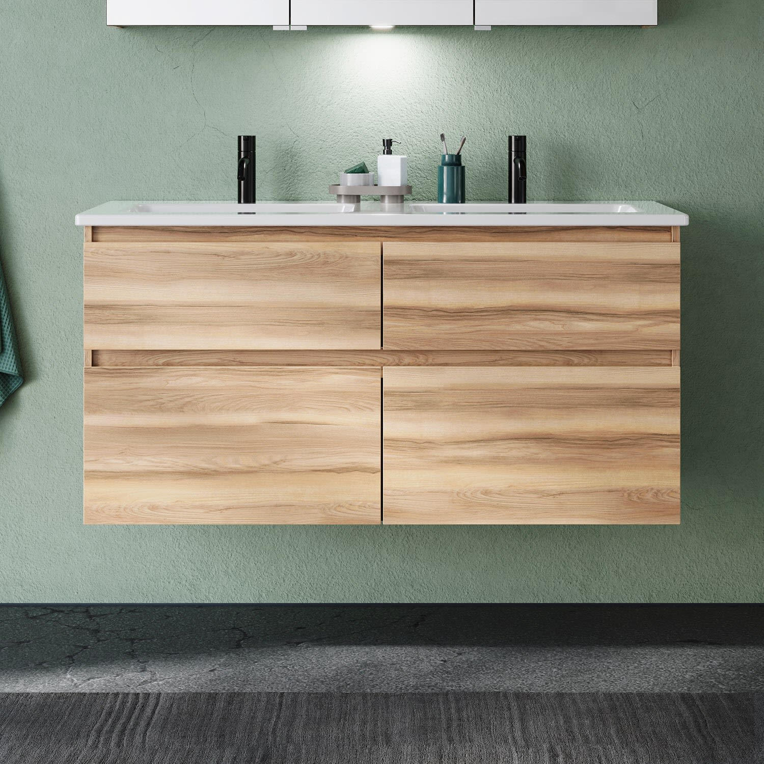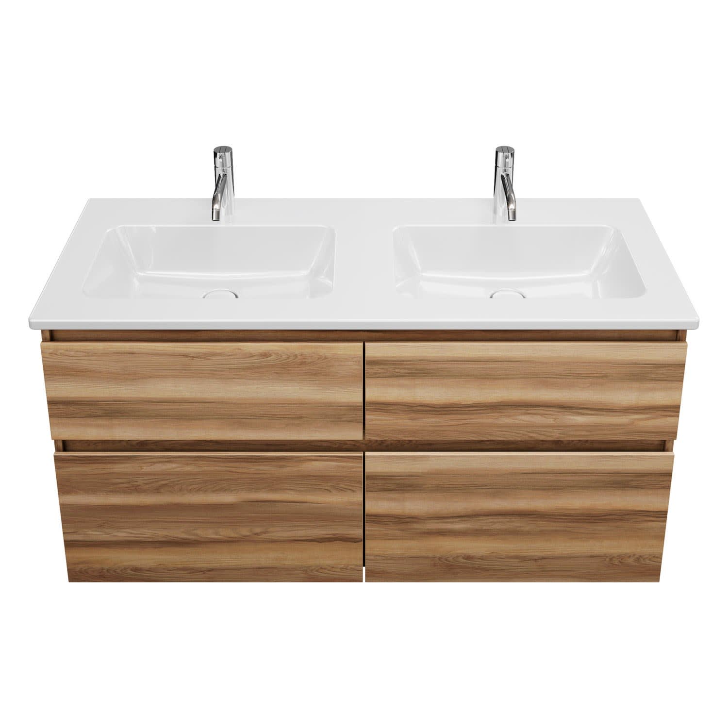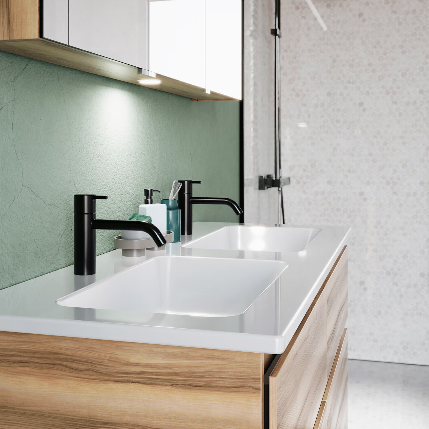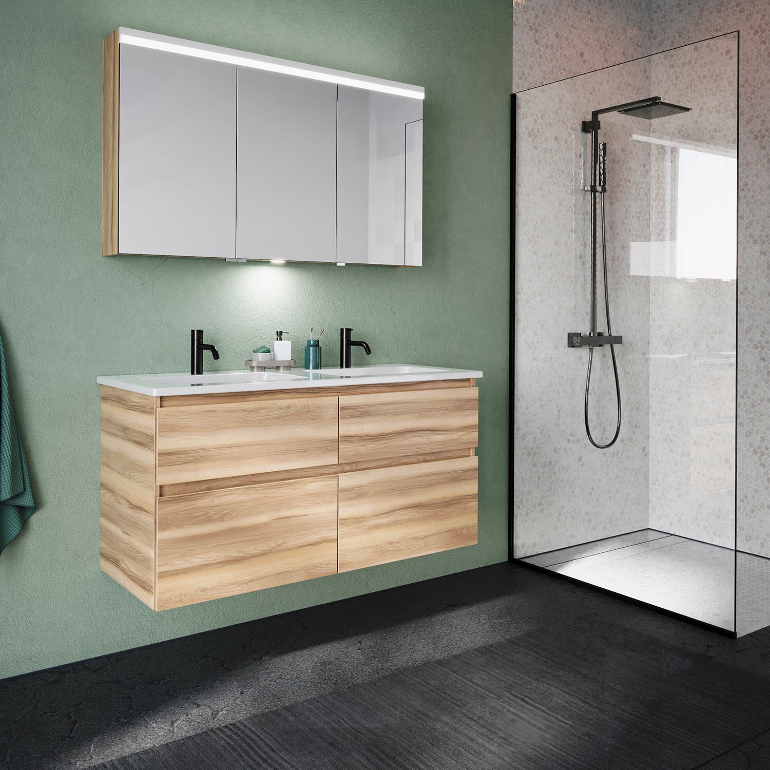 burgbad Lin20 Waschtischunterschrank mit Keramik-Doppelwaschtisch 123 cm, 4 Auszüge