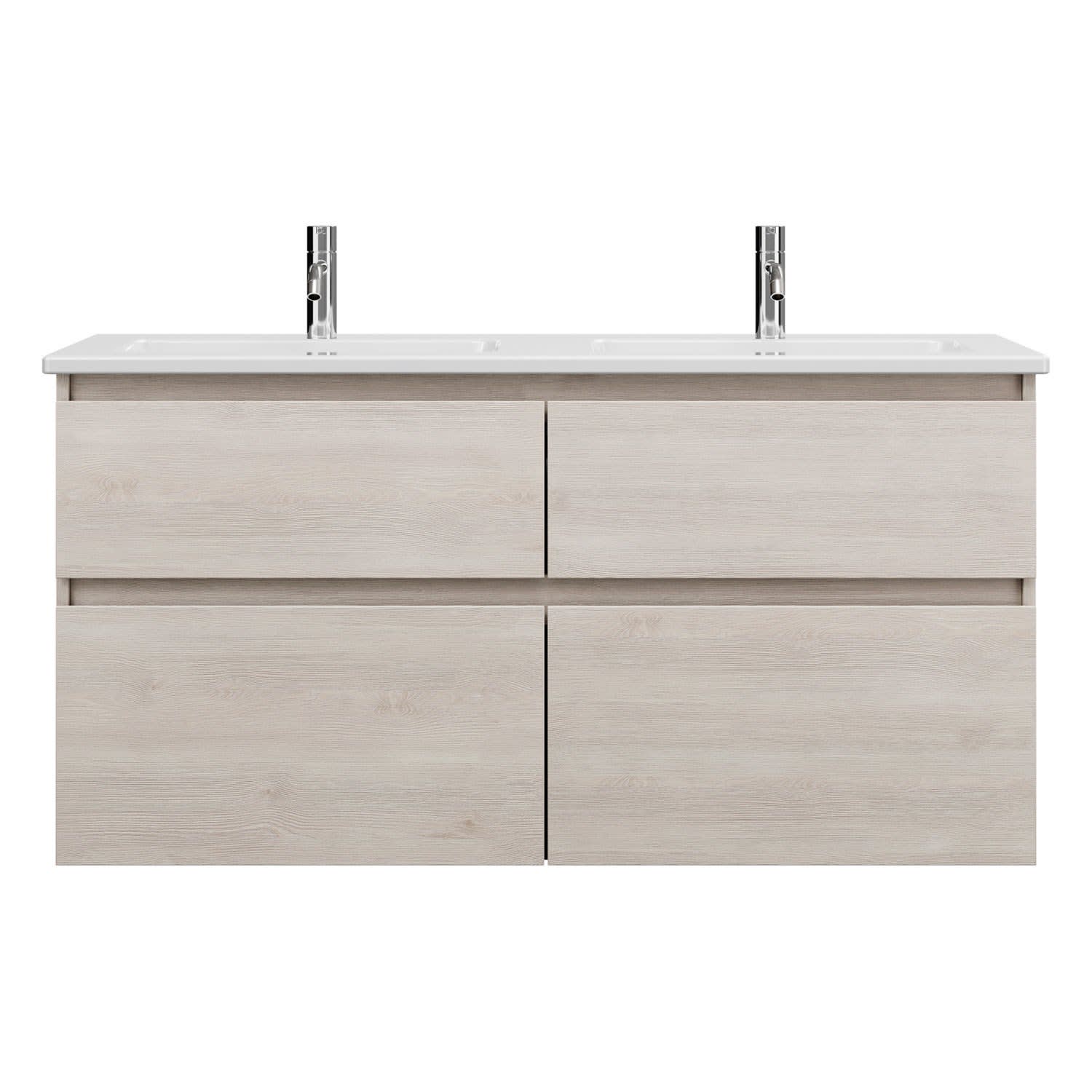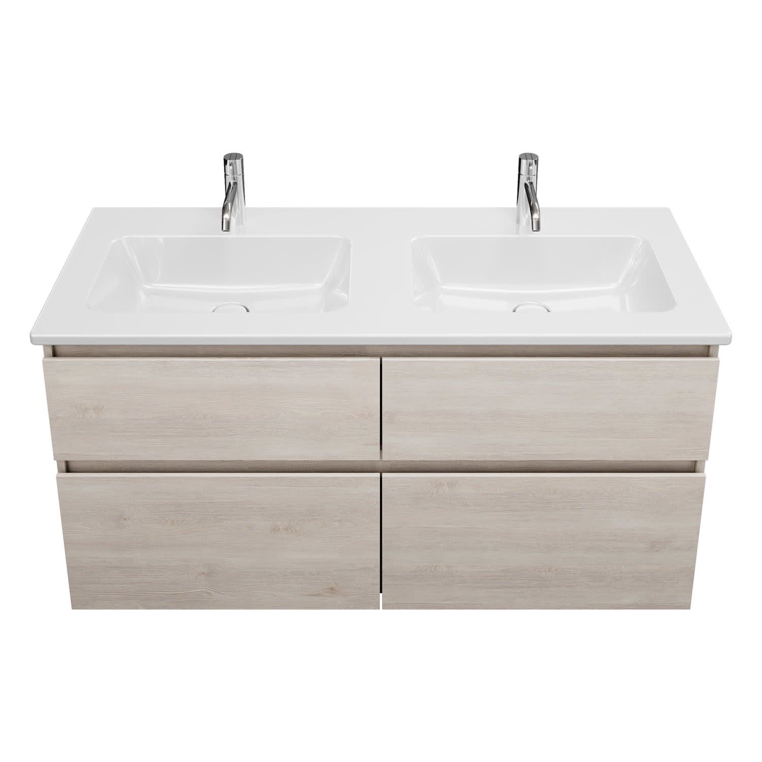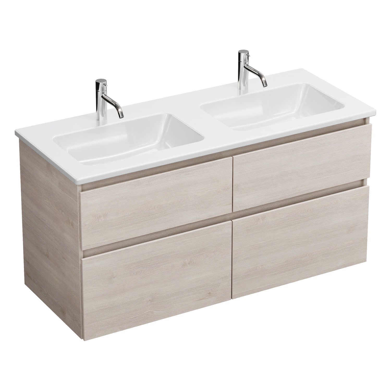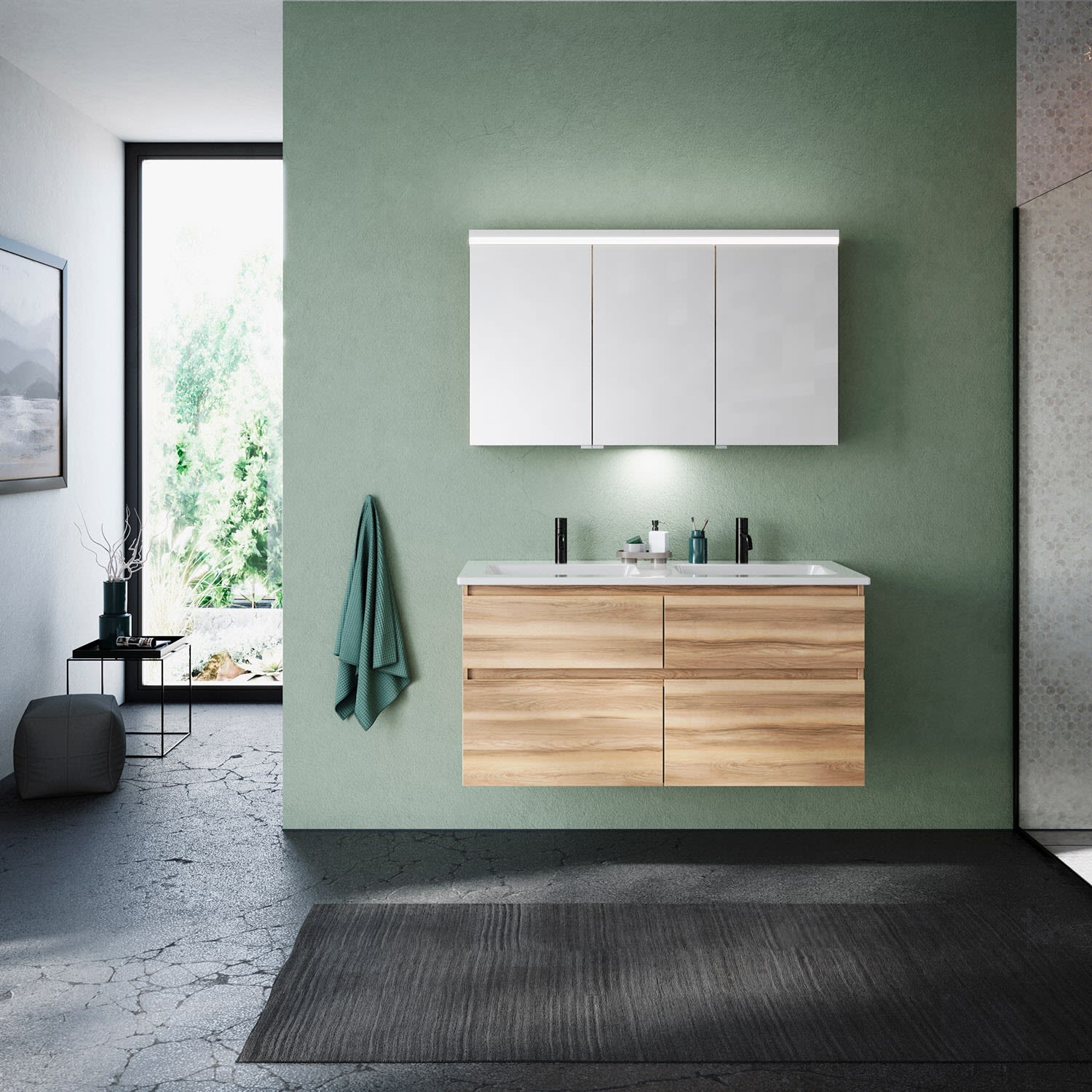 burgbad Lin20 Waschtischunterschrank mit Keramik-Doppelwaschtisch 123 cm, 4 Auszüge