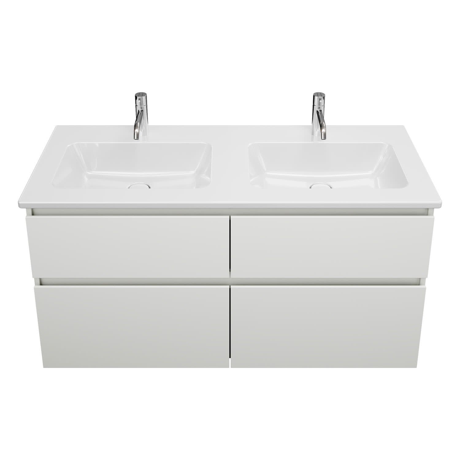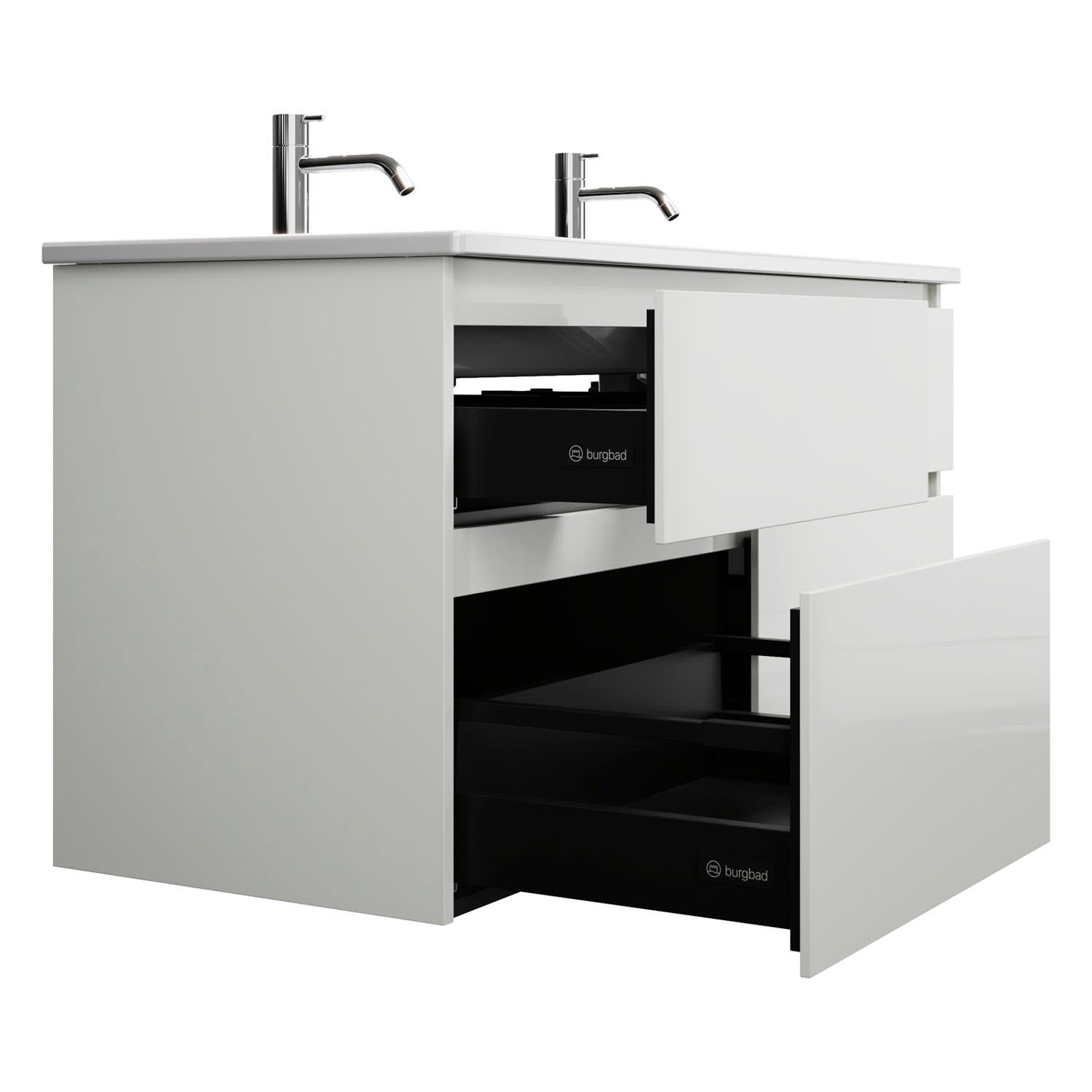 burgbad Lin20 Waschtischunterschrank mit Keramik-Doppelwaschtisch 123 cm, 4 Auszüge