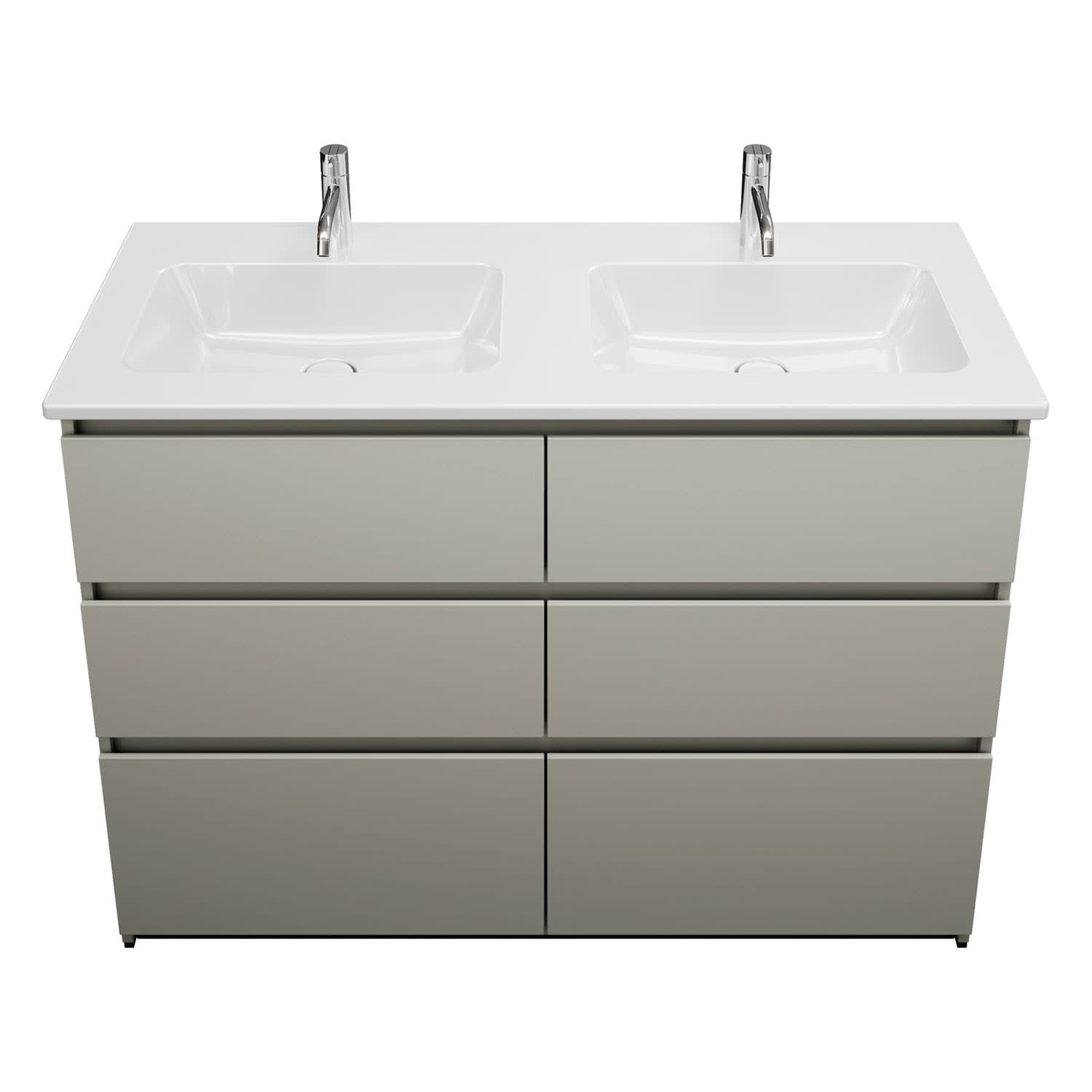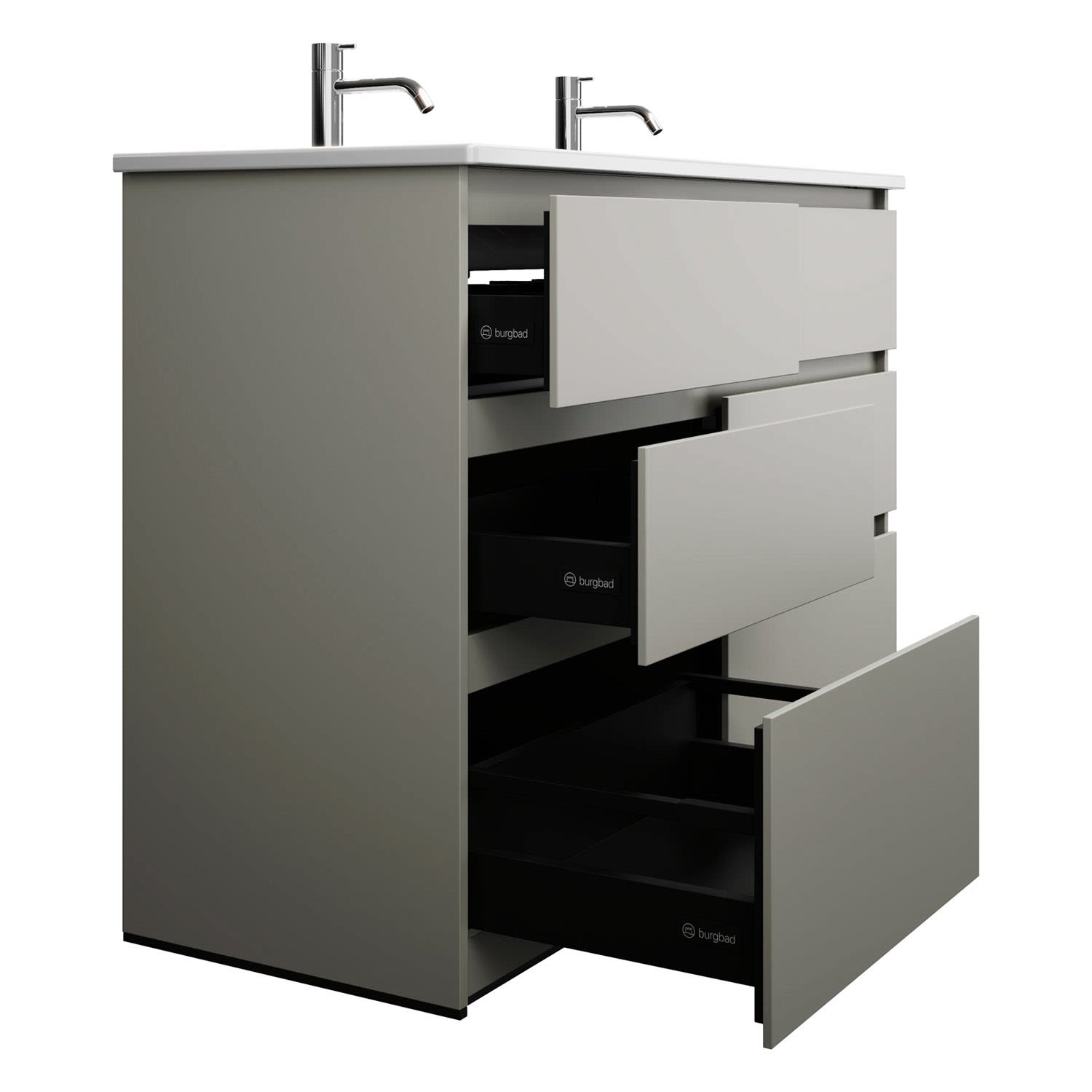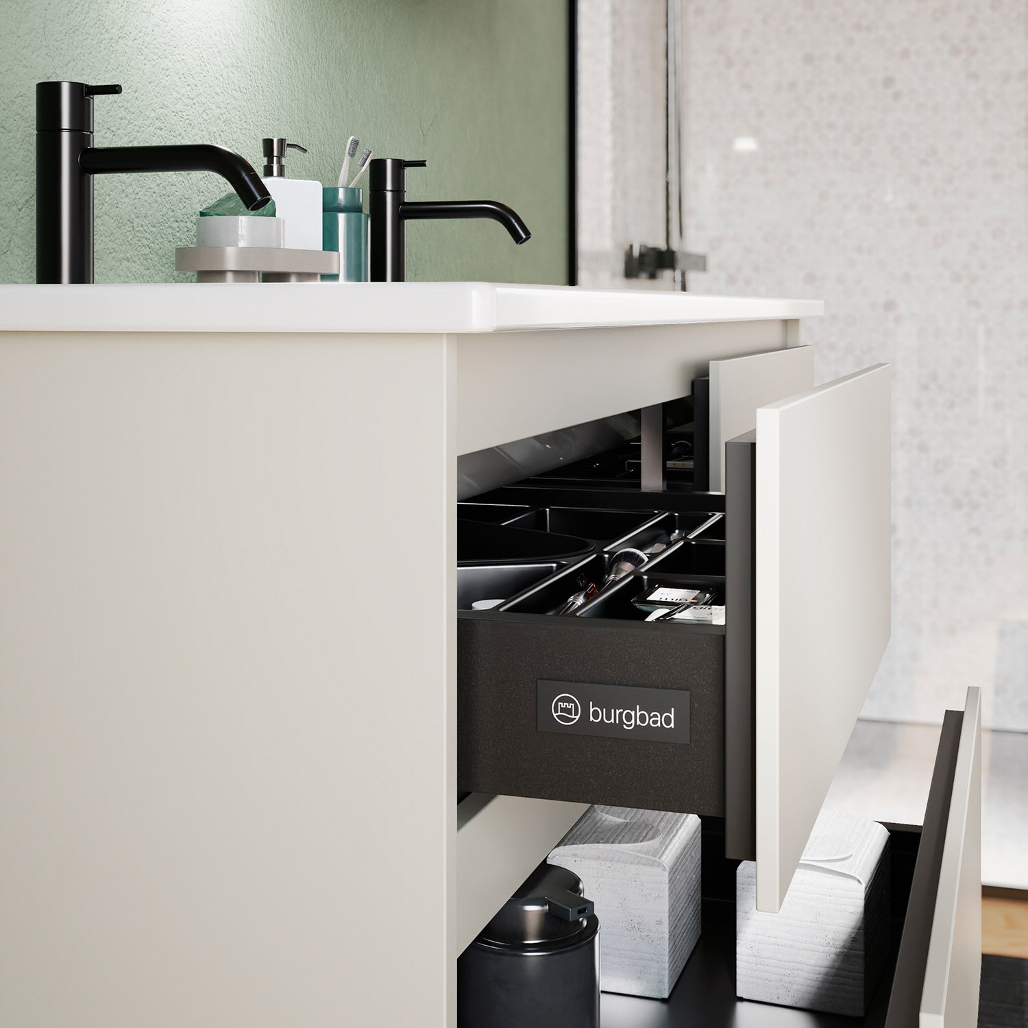 burgbad Lin20 Waschtischunterschrank mit Keramik-Doppelwaschtisch 123 cm, 6 Auszüge