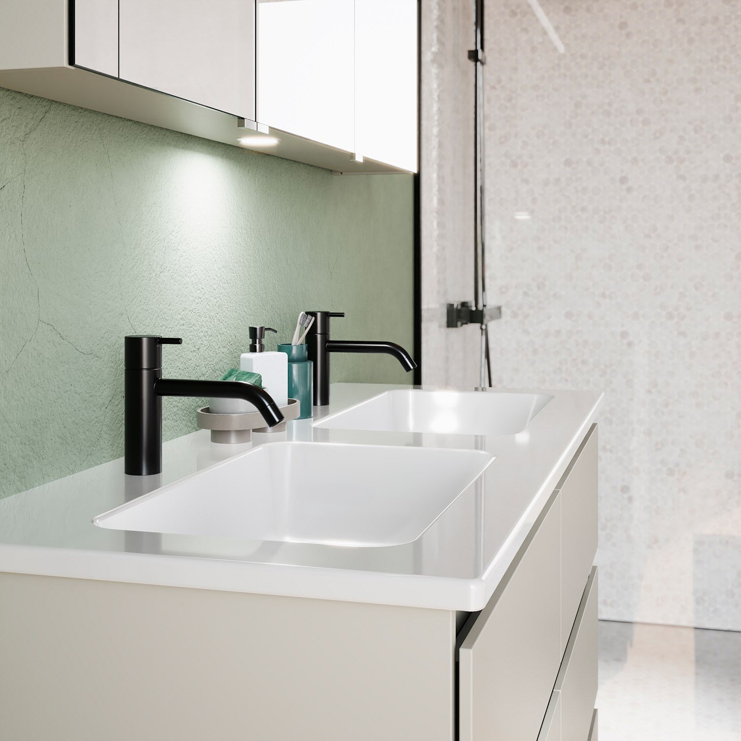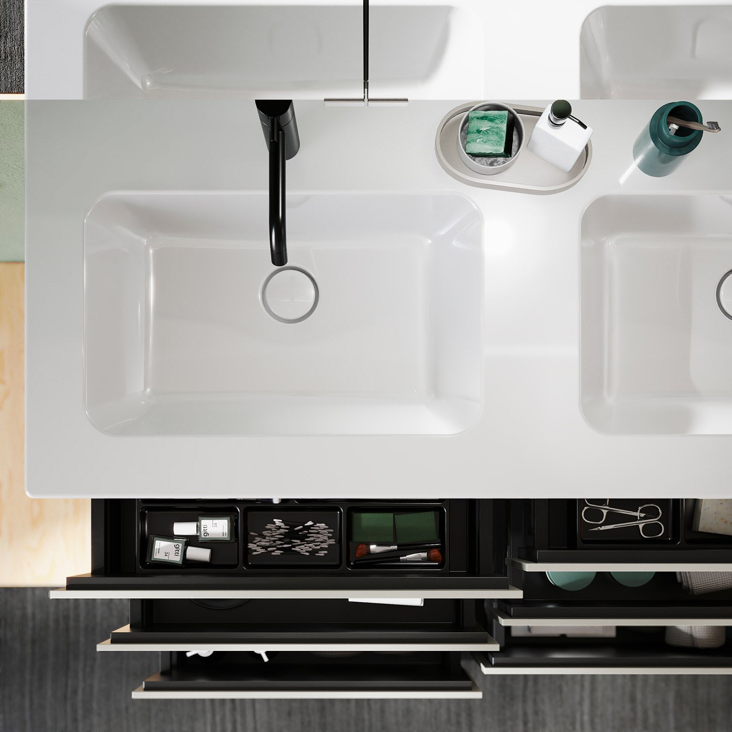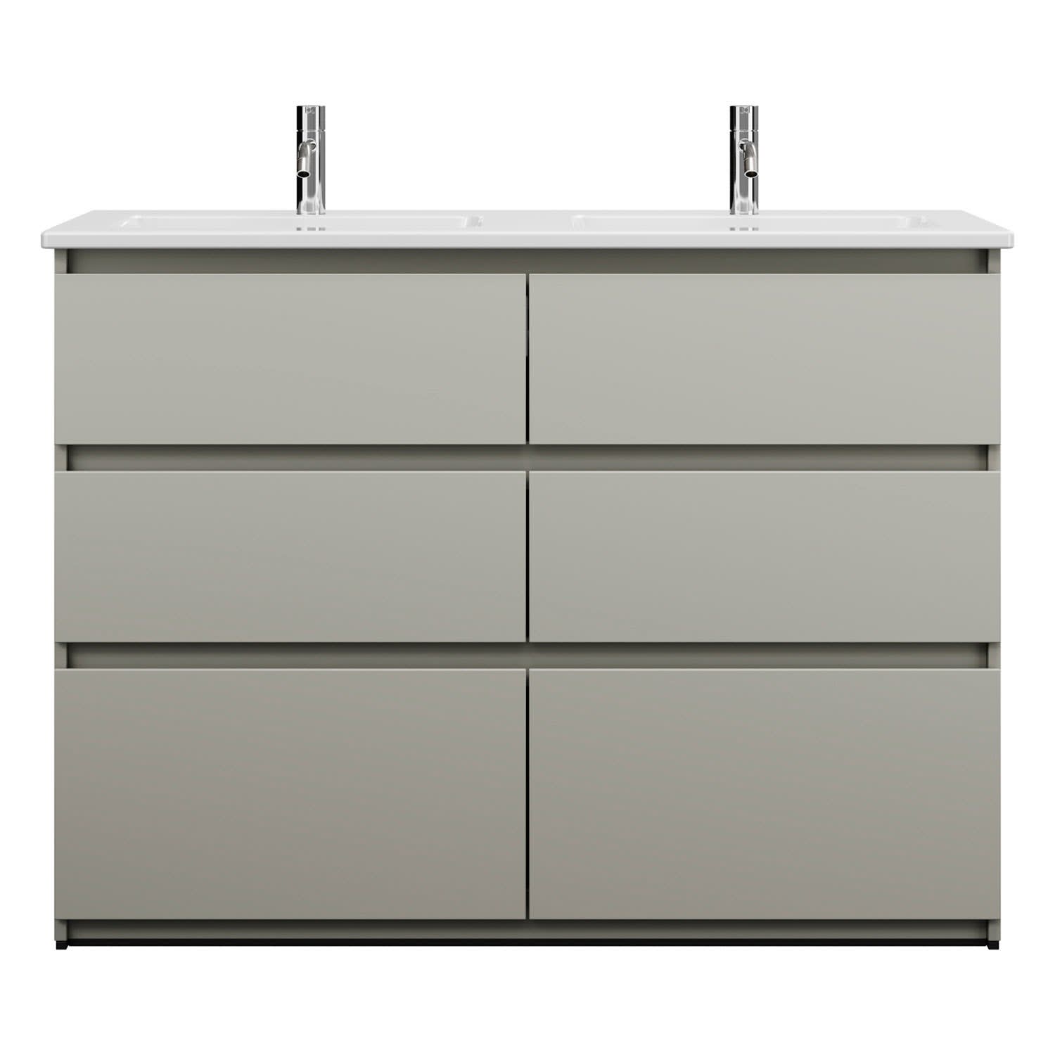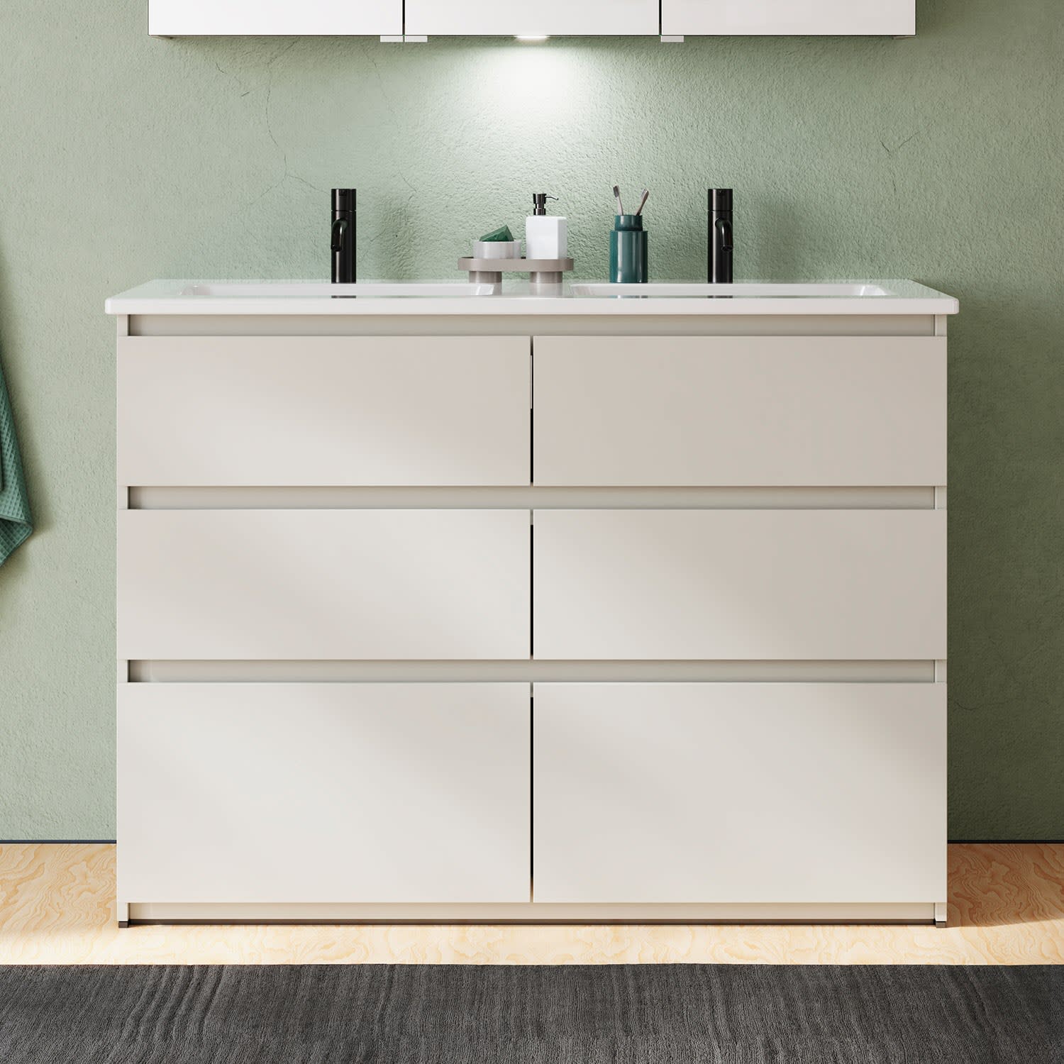 burgbad Lin20 Waschtischunterschrank mit Keramik-Doppelwaschtisch 123 cm, 6 Auszüge