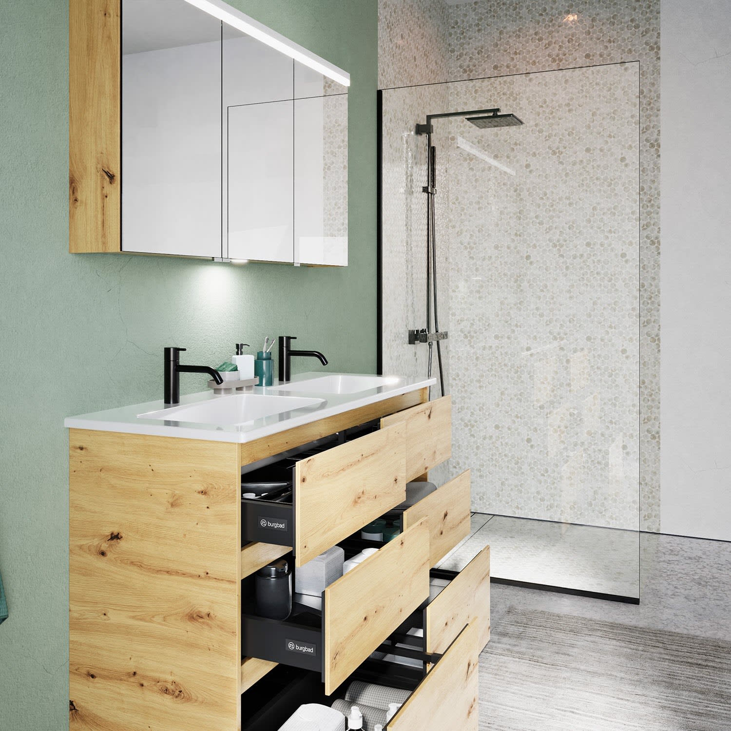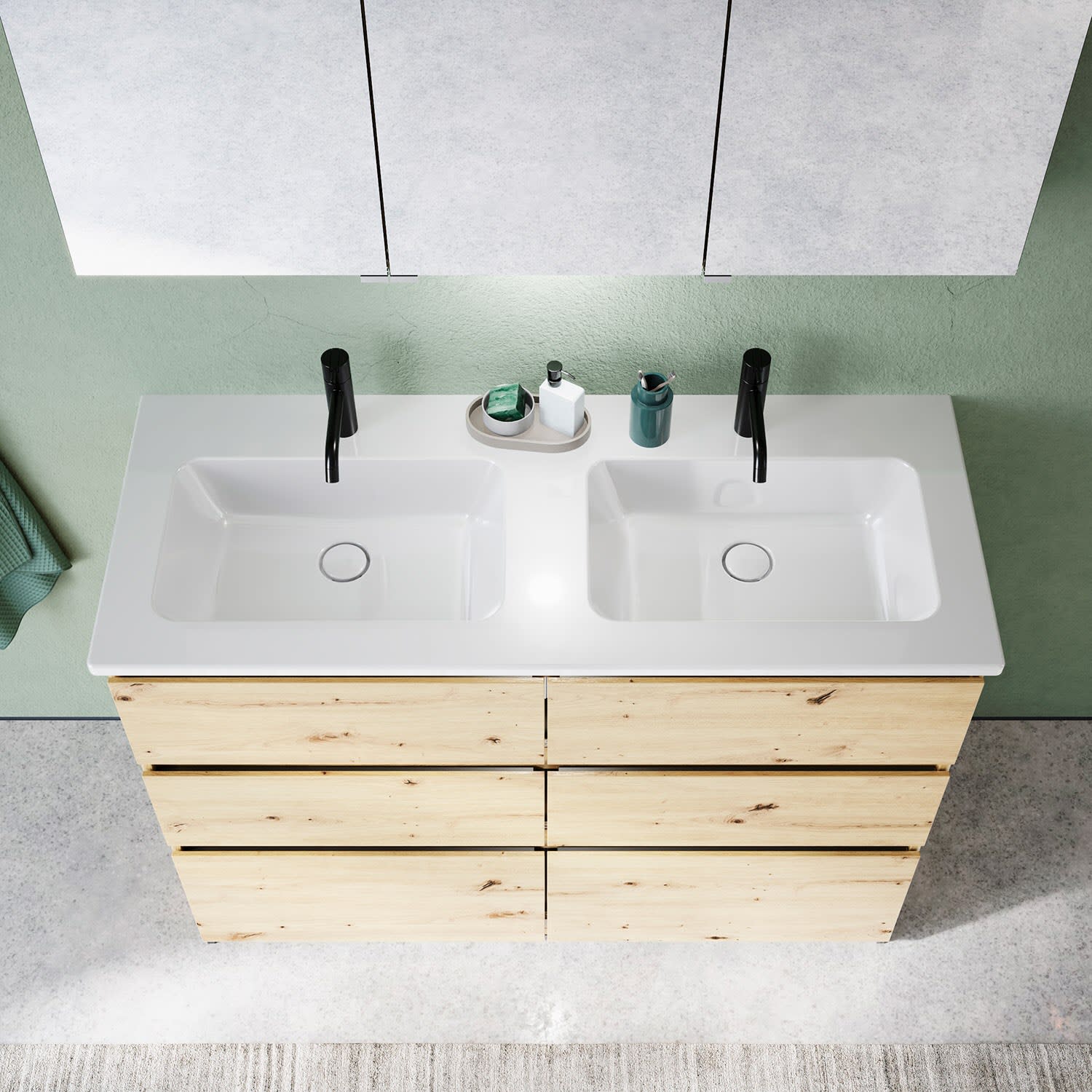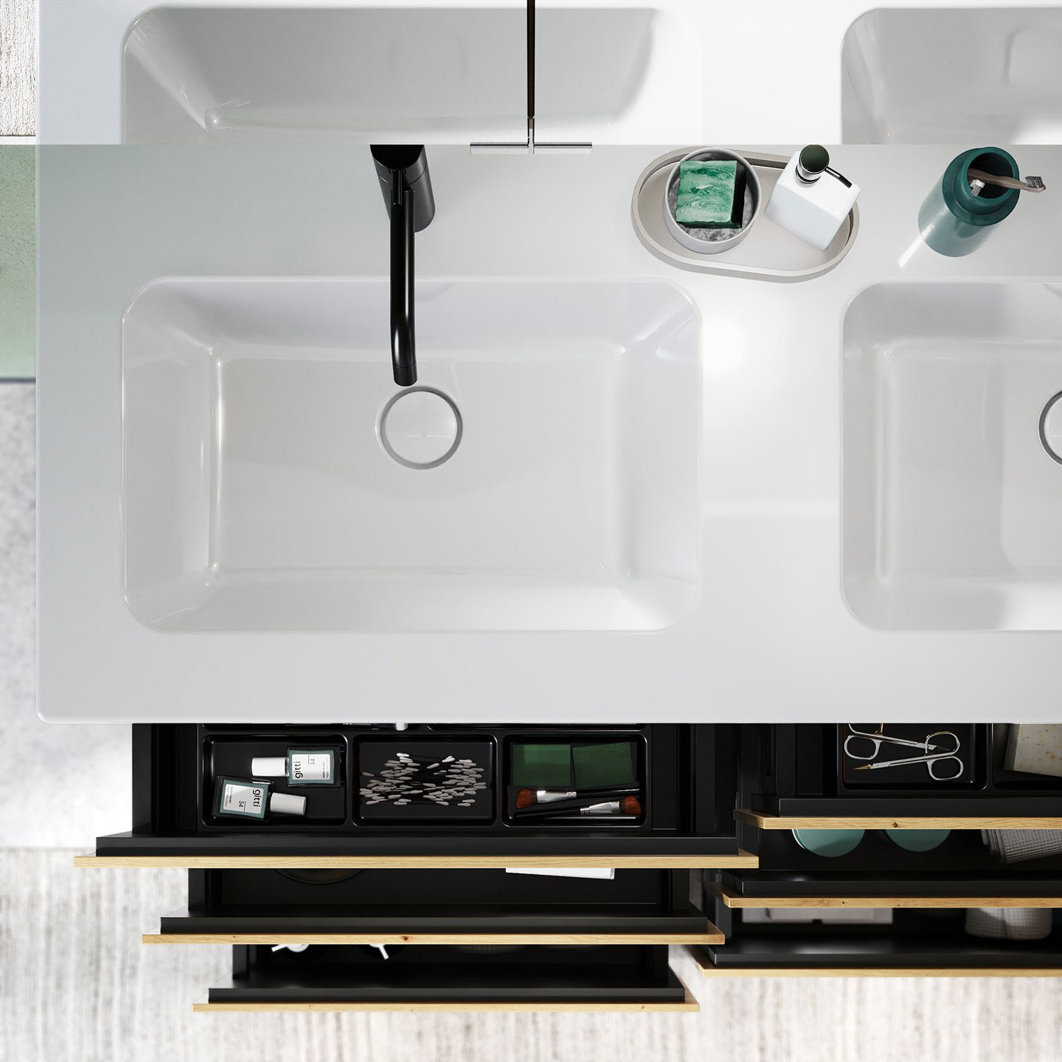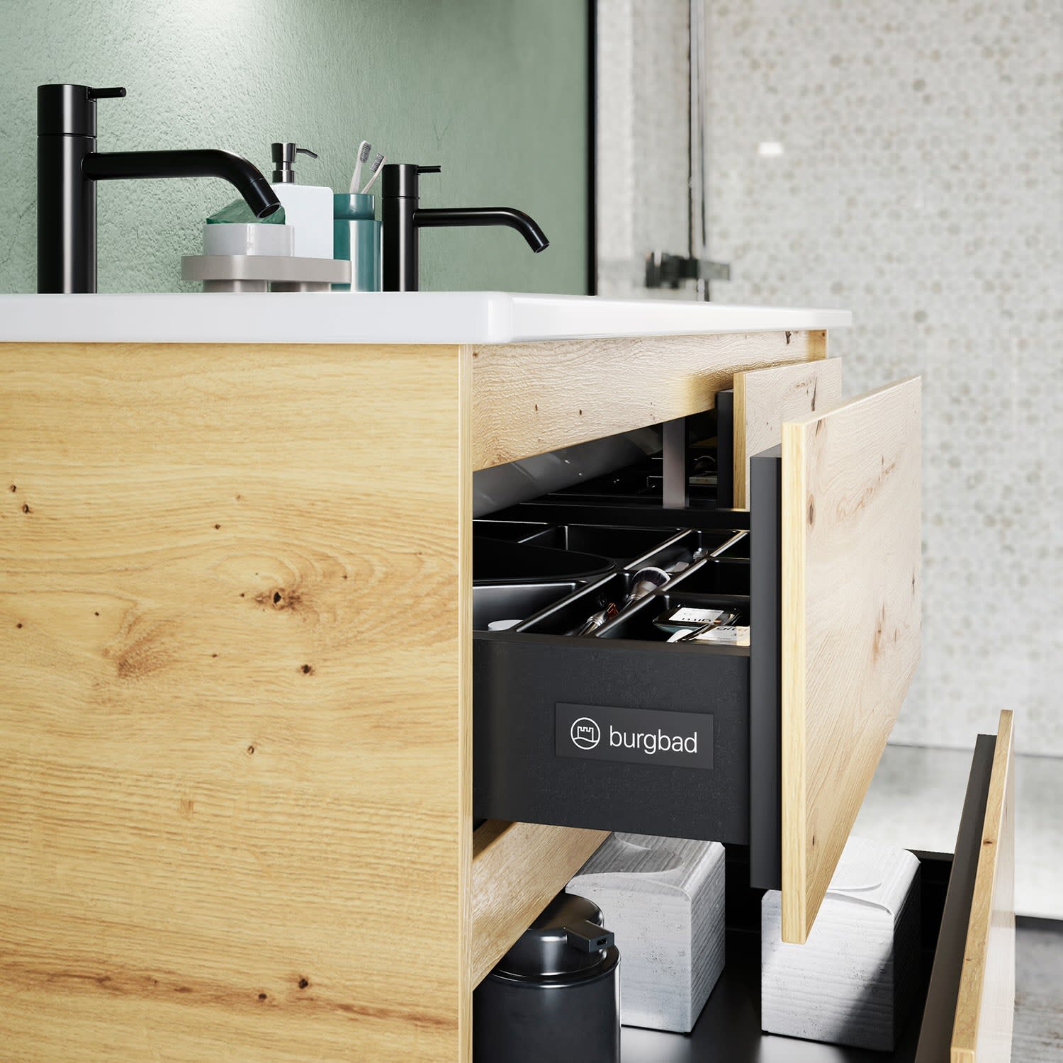 burgbad Lin20 Waschtischunterschrank mit Keramik-Doppelwaschtisch 123 cm, 6 Auszüge