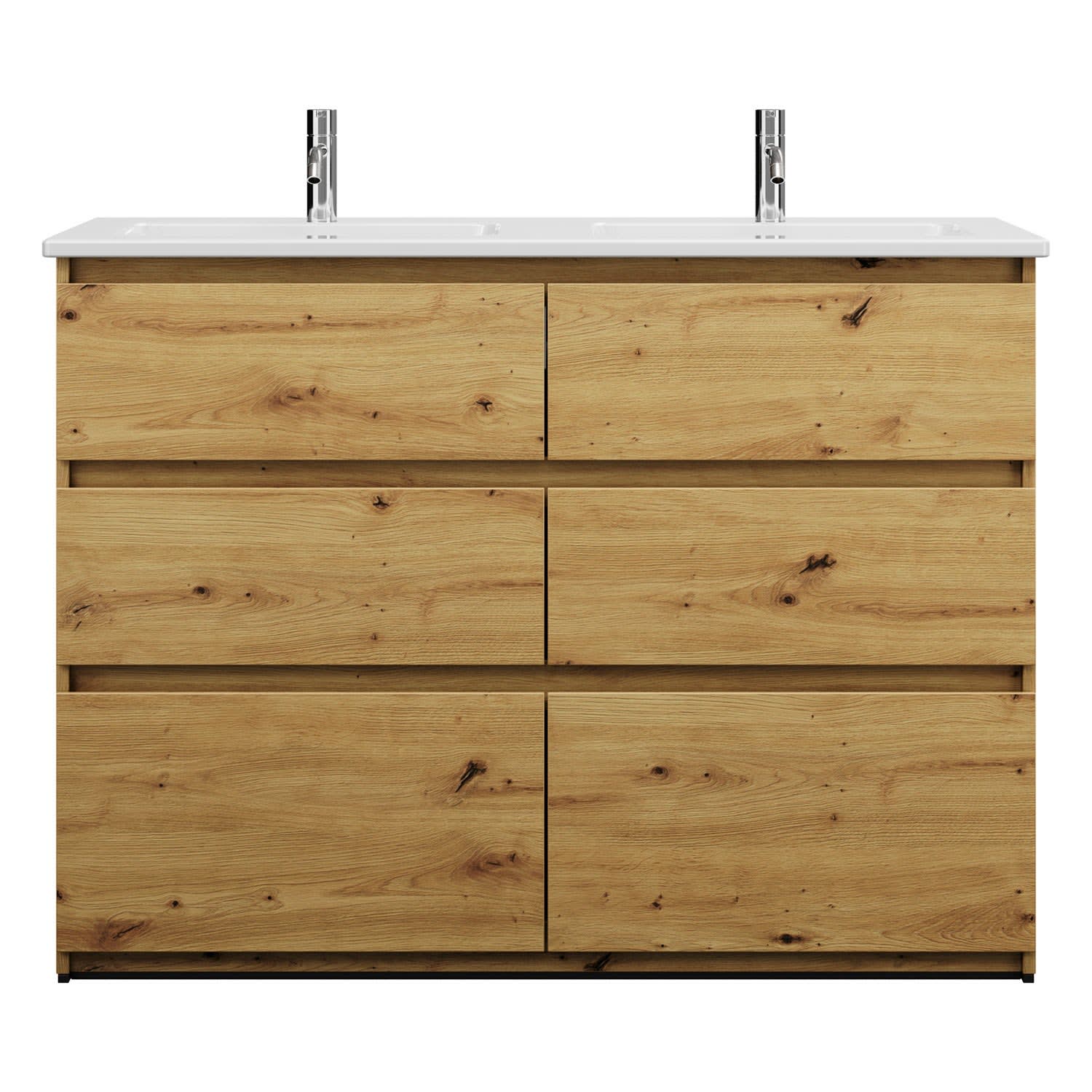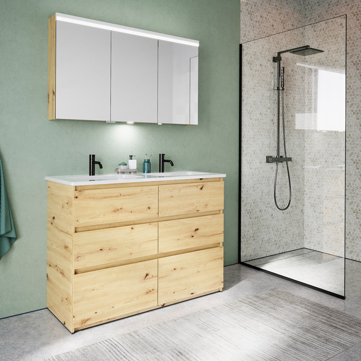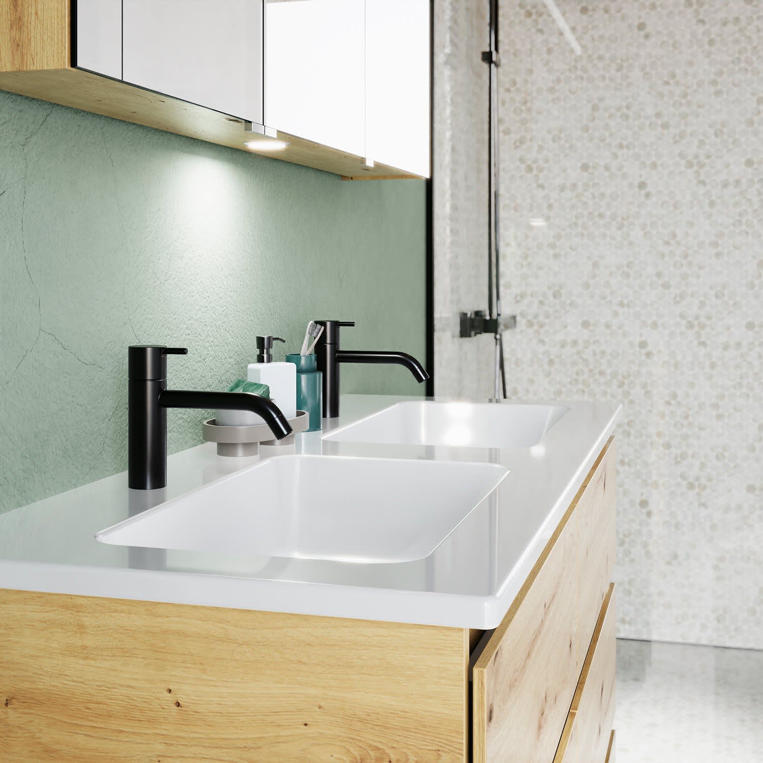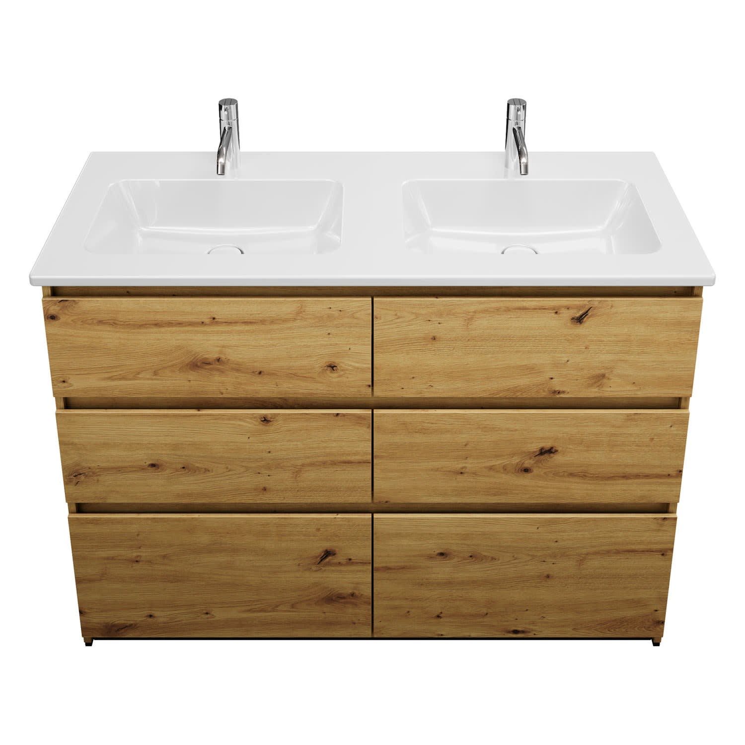 burgbad Lin20 Waschtischunterschrank mit Keramik-Doppelwaschtisch 123 cm, 6 Auszüge