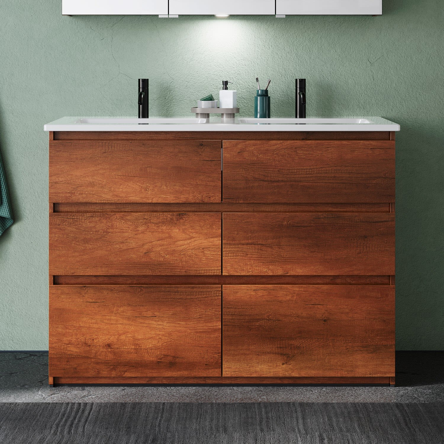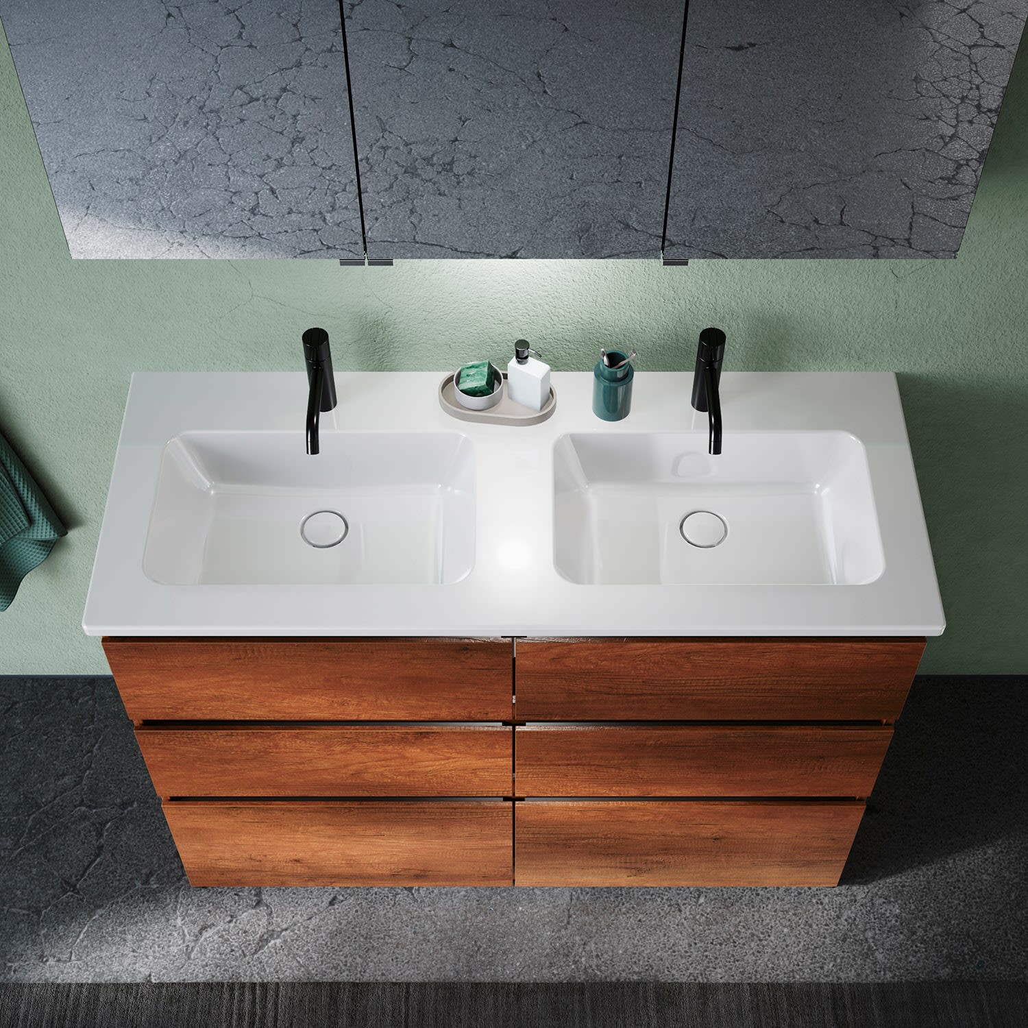 burgbad Lin20 Waschtischunterschrank mit Keramik-Doppelwaschtisch 123 cm, 6 Auszüge