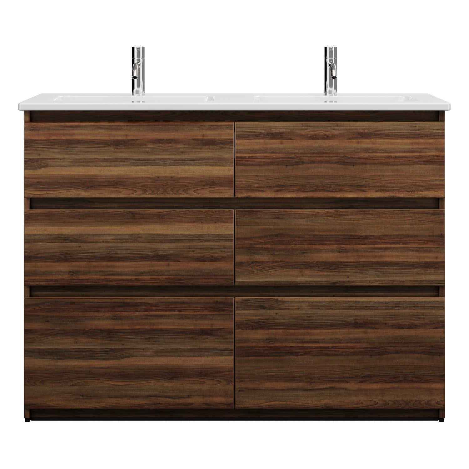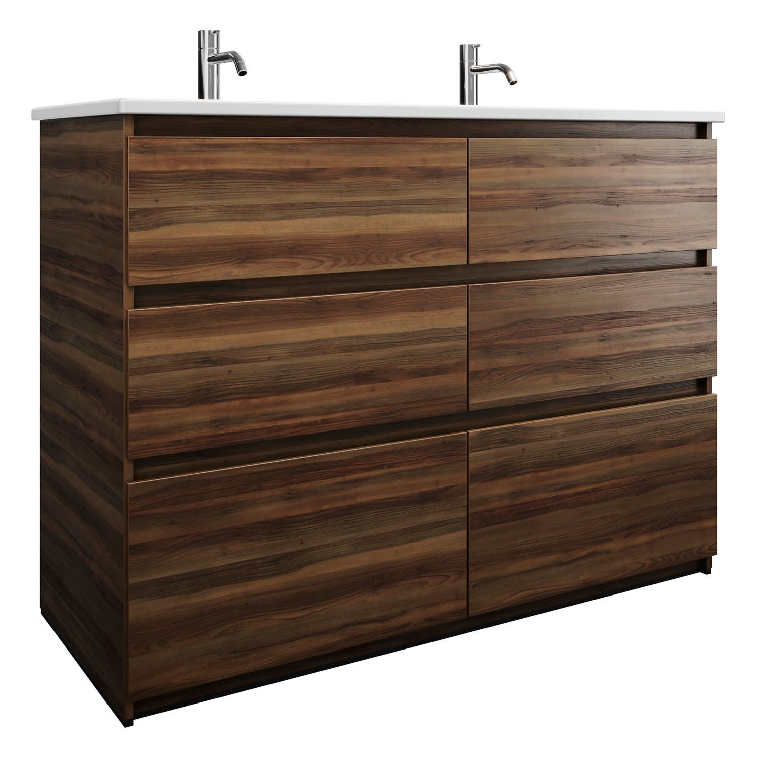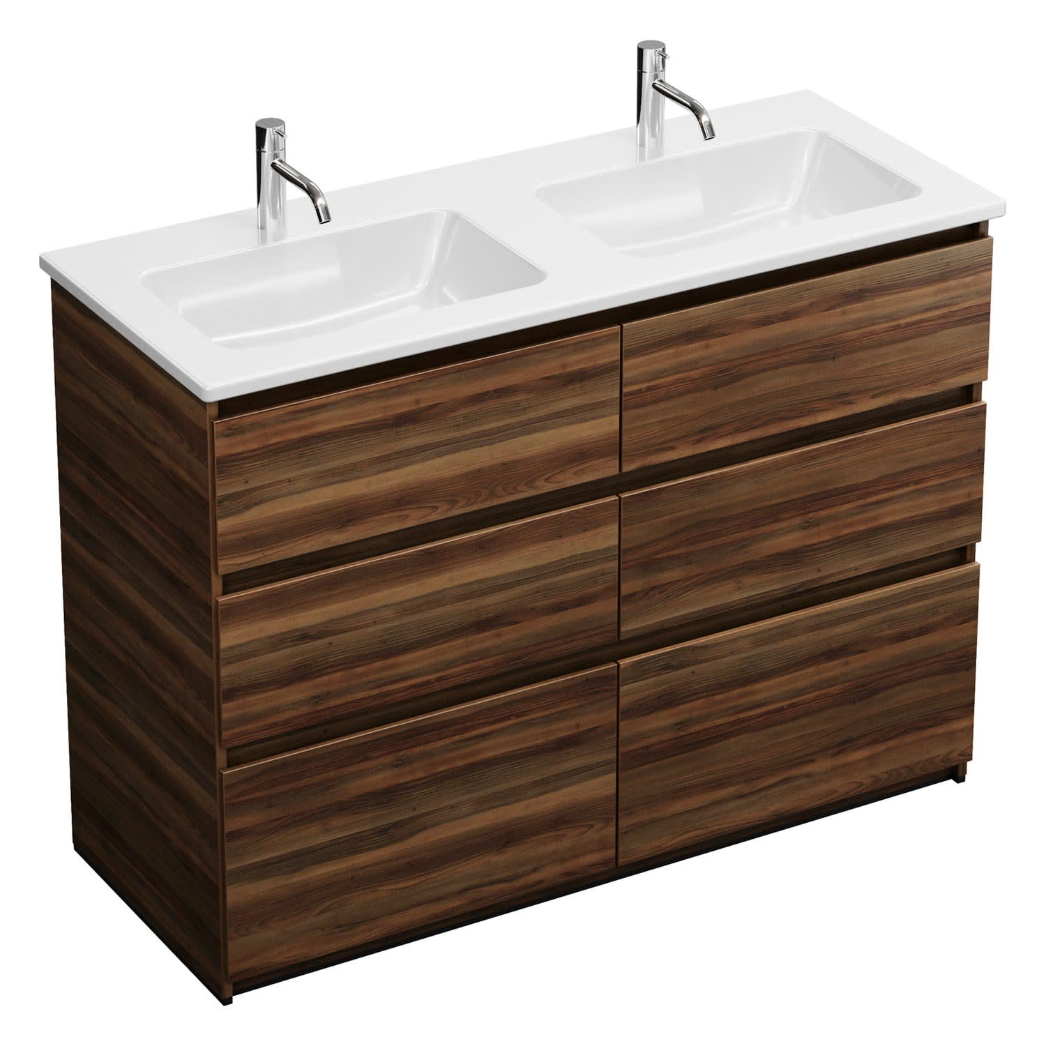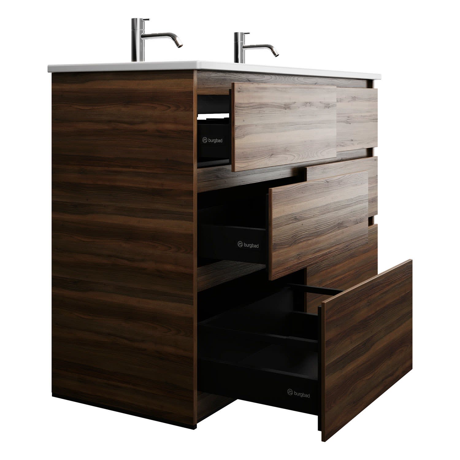 burgbad Lin20 Waschtischunterschrank mit Keramik-Doppelwaschtisch 123 cm, 6 Auszüge