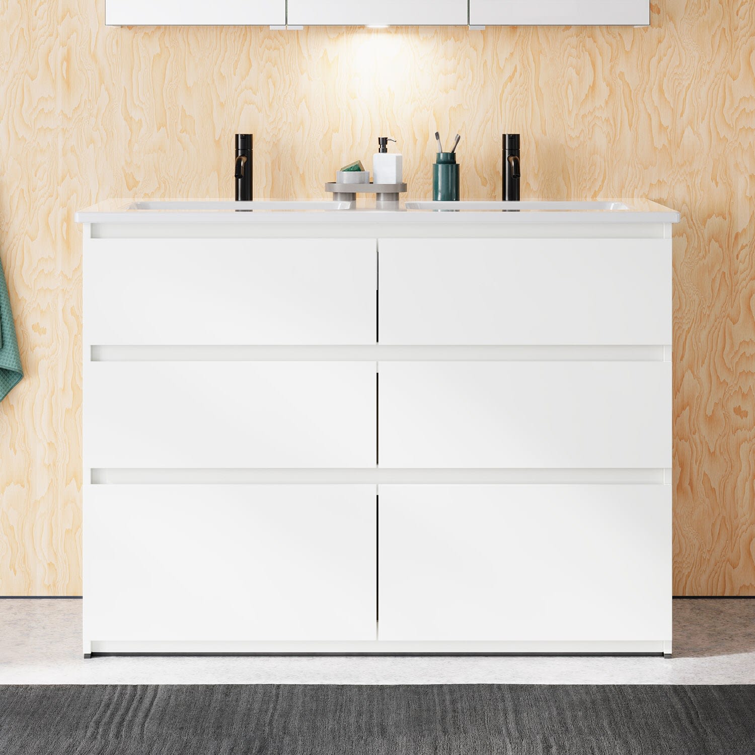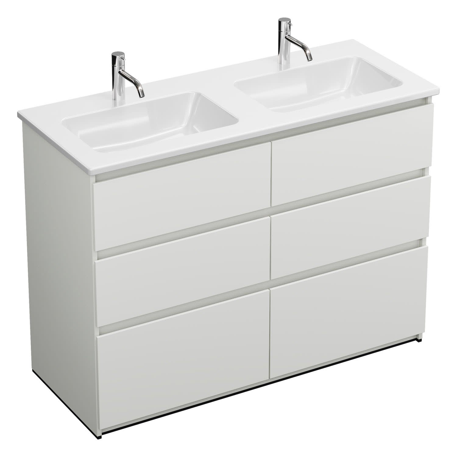 burgbad Lin20 Waschtischunterschrank mit Keramik-Doppelwaschtisch 123 cm, 6 Auszüge