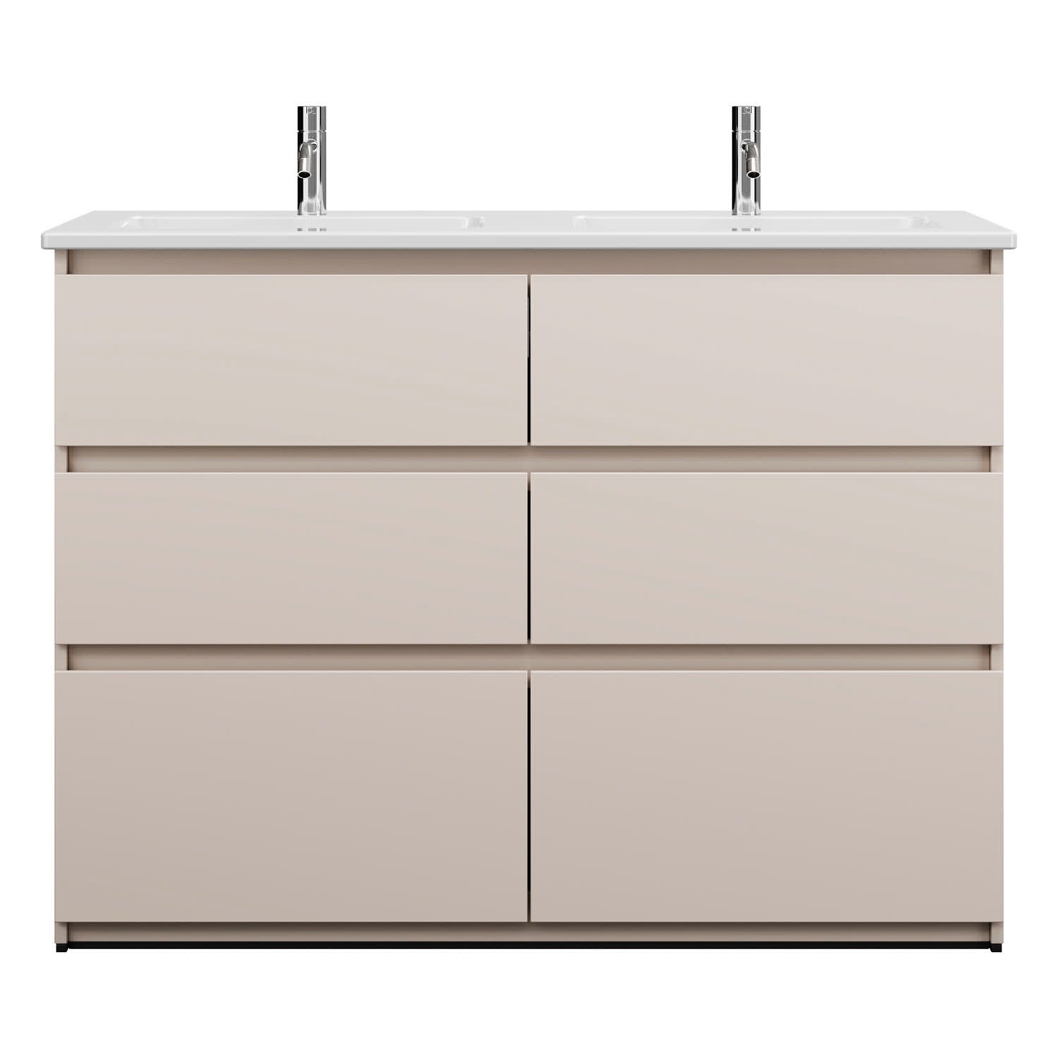 burgbad Lin20 Waschtischunterschrank mit Keramik-Doppelwaschtisch 123 cm, 6 Auszüge