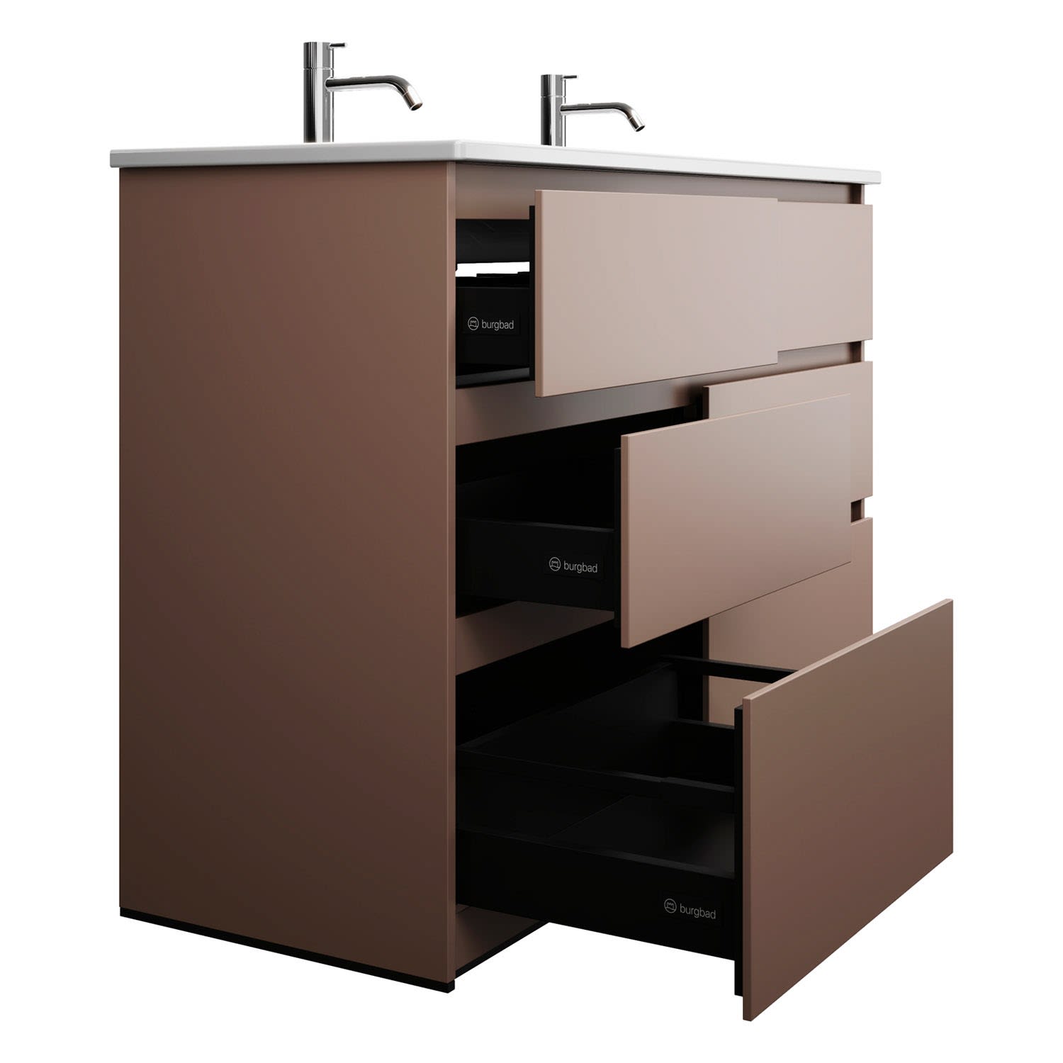 burgbad Lin20 Waschtischunterschrank mit Keramik-Doppelwaschtisch 123 cm, 6 Auszüge