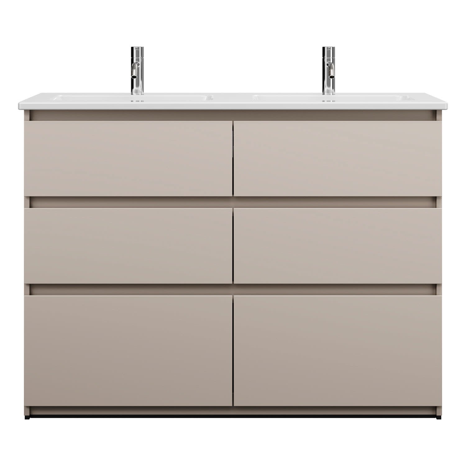 burgbad Lin20 Waschtischunterschrank mit Keramik-Doppelwaschtisch 123 cm, 6 Auszüge