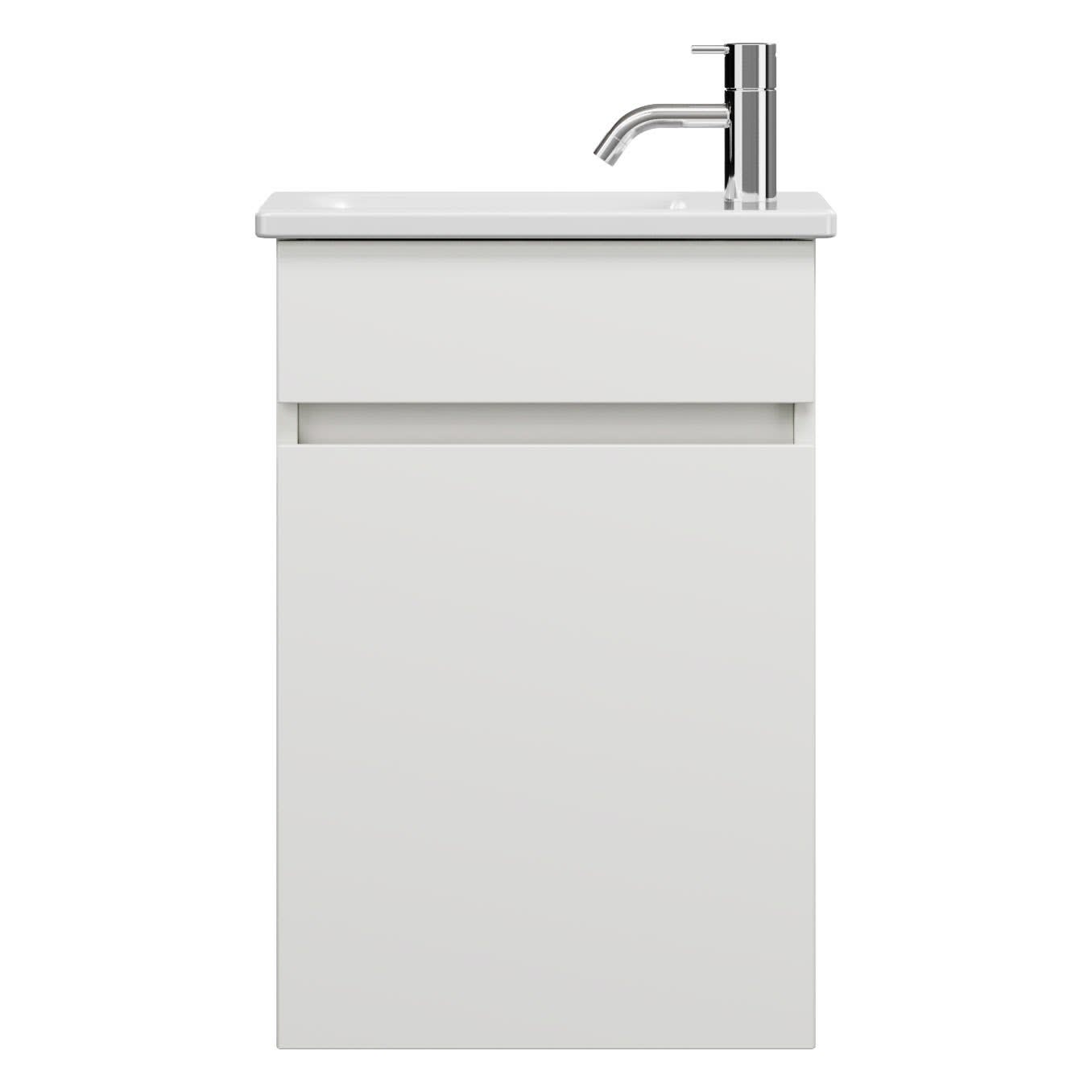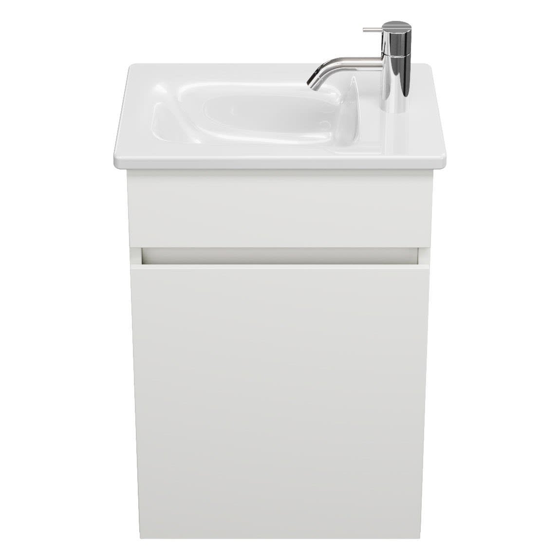 burgbad Lin20 Waschtischunterschrank mit Keramik-Waschtisch 43 cm, 1 Tür, links