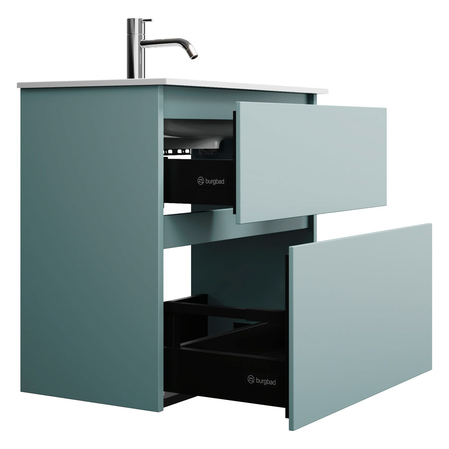 burgbad Lin20 Waschtischunterschrank mit Mineralguss-Waschtisch 62 cm, 2 Auszüge