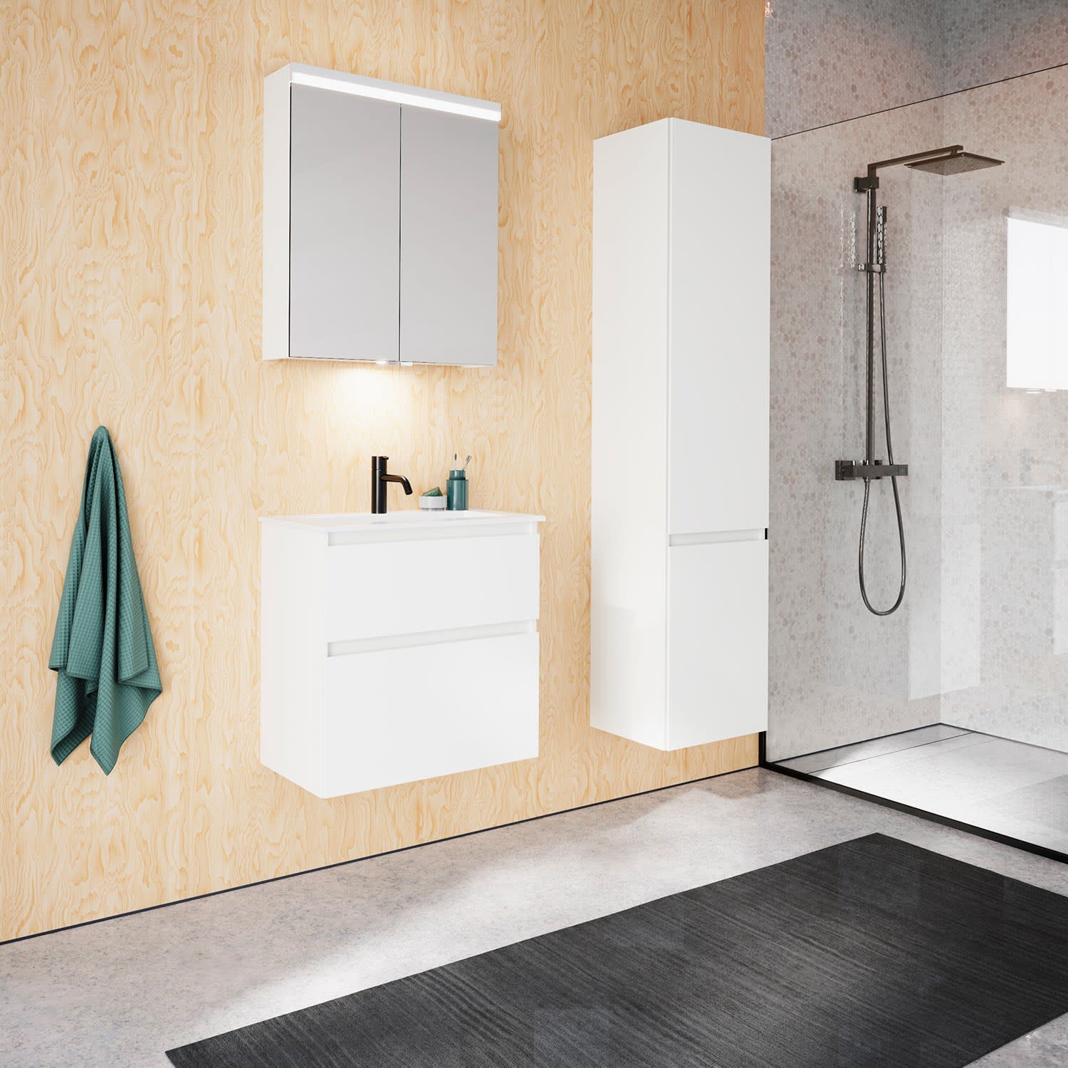 burgbad Lin20 Waschtischunterschrank mit Mineralguss-Waschtisch 62 cm, 2 Auszüge