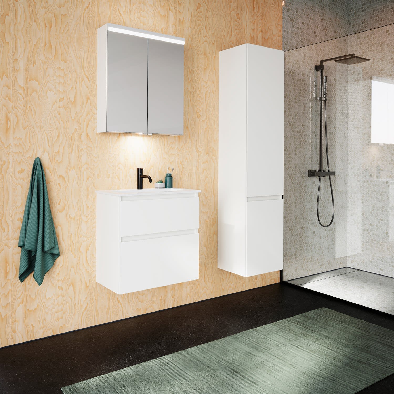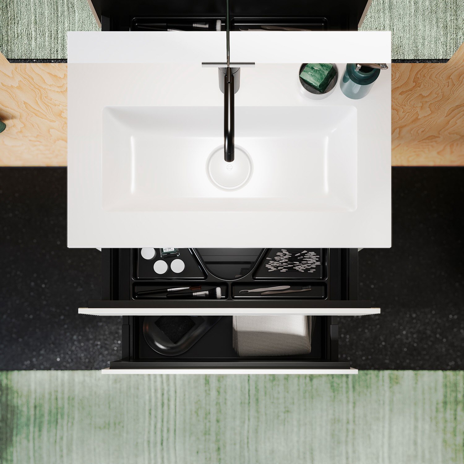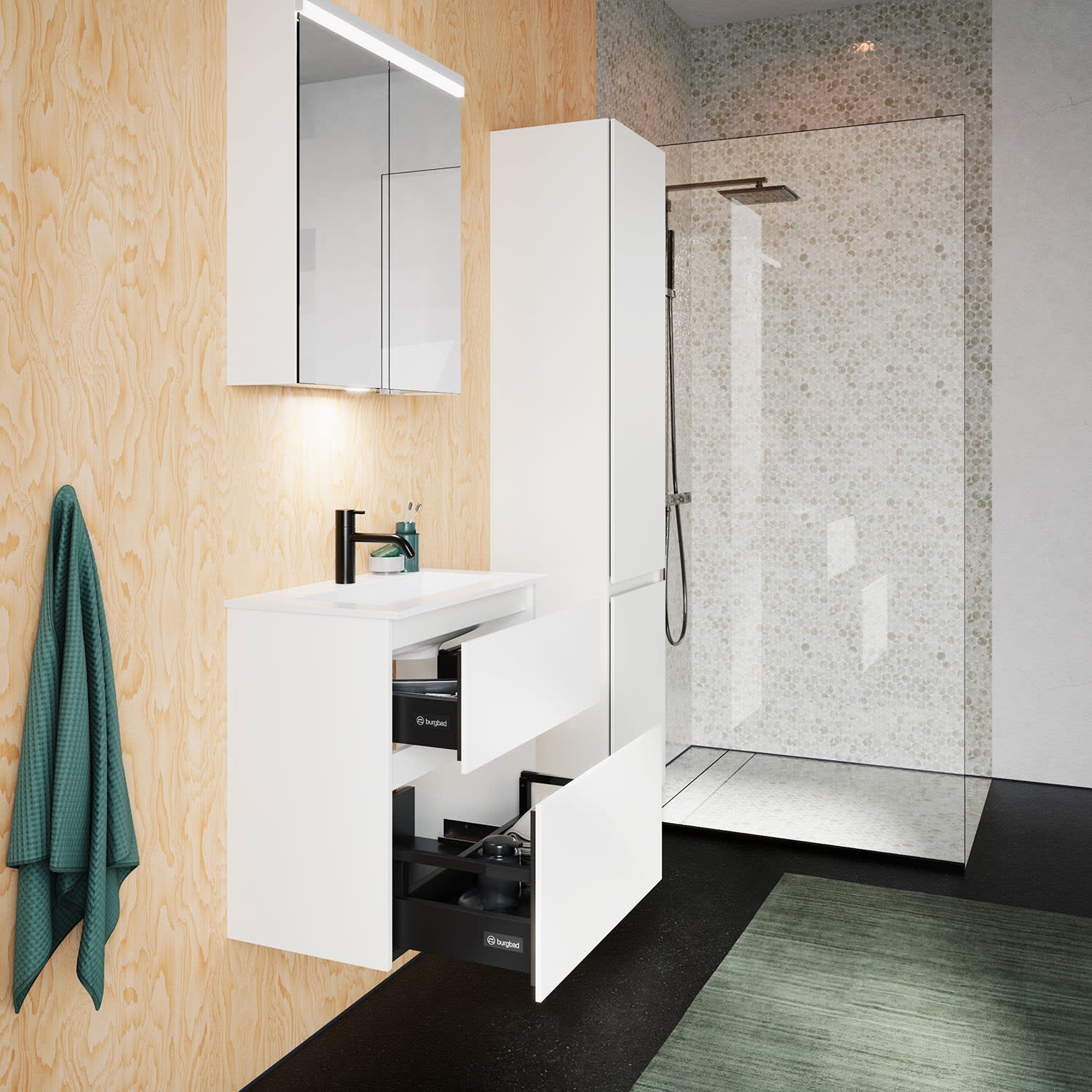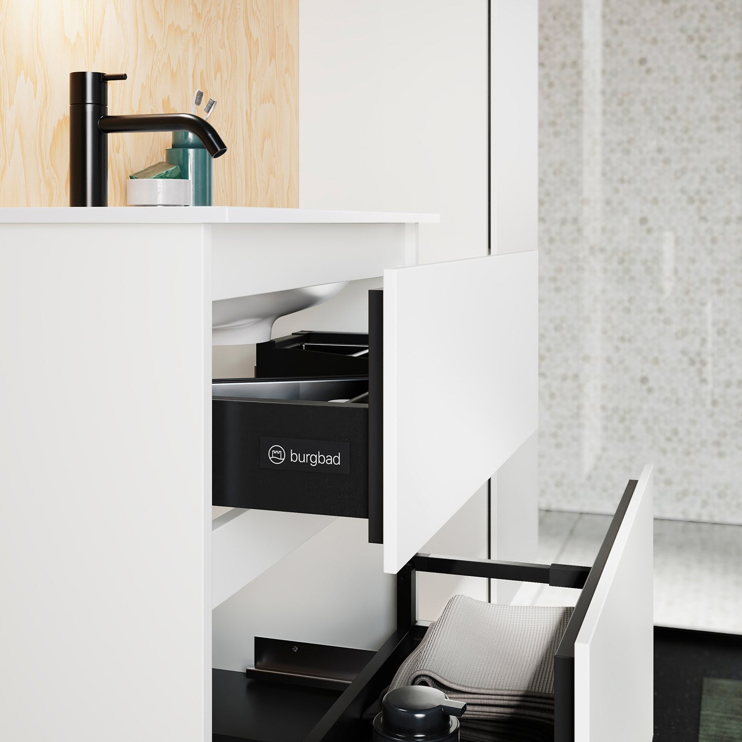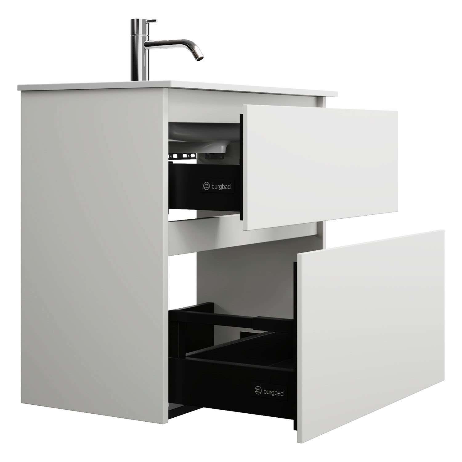burgbad Lin20 Waschtischunterschrank mit Mineralguss-Waschtisch 62 cm, 2 Auszüge