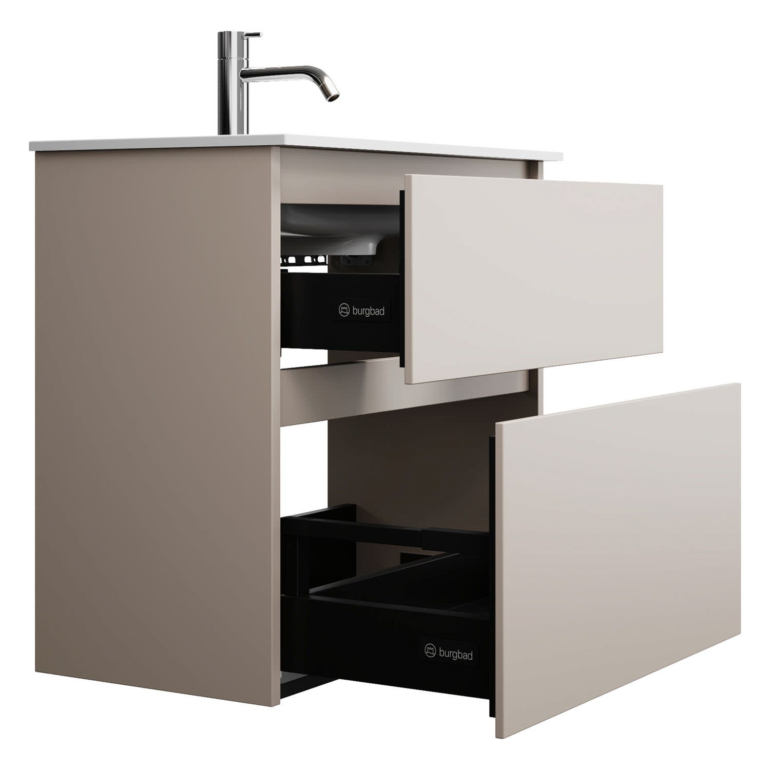 burgbad Lin20 Waschtischunterschrank mit Mineralguss-Waschtisch 62 cm, 2 Auszüge