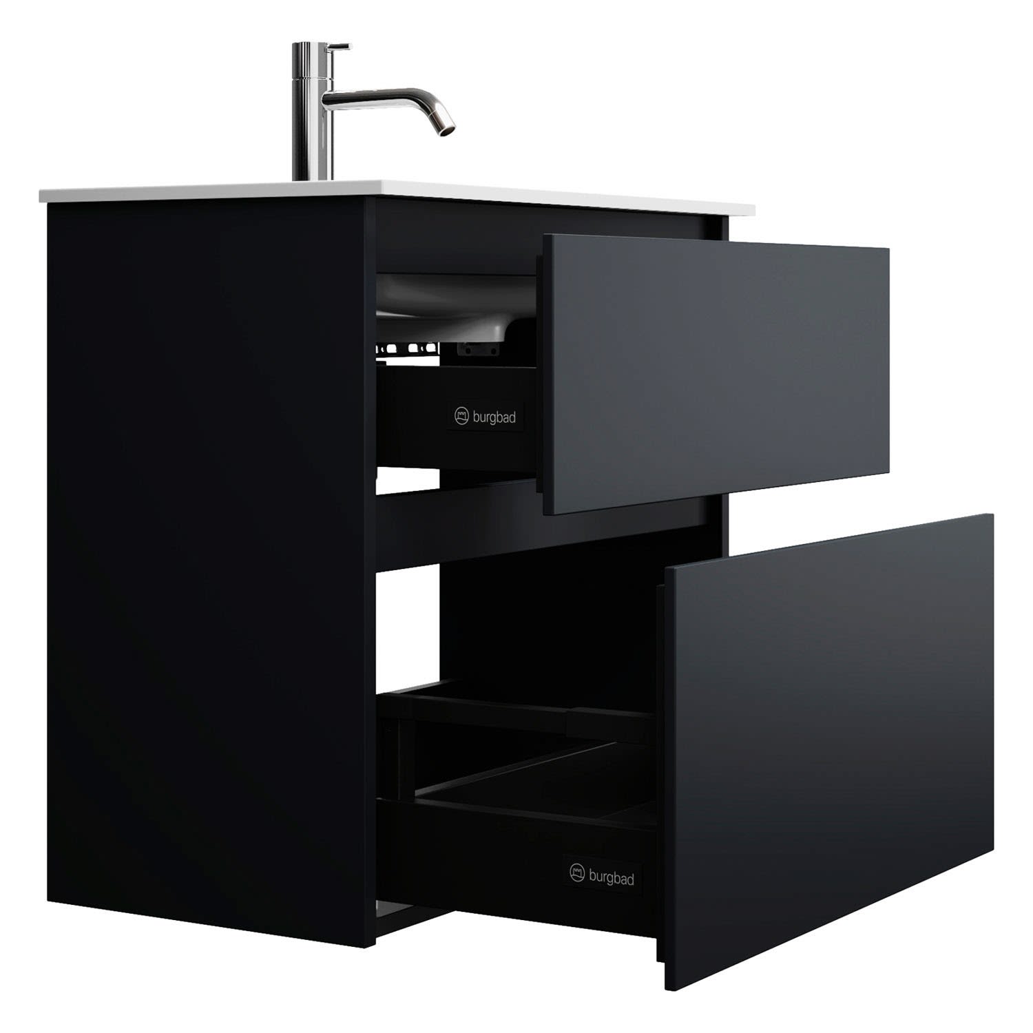 burgbad Lin20 Waschtischunterschrank mit Mineralguss-Waschtisch 62 cm, 2 Auszüge