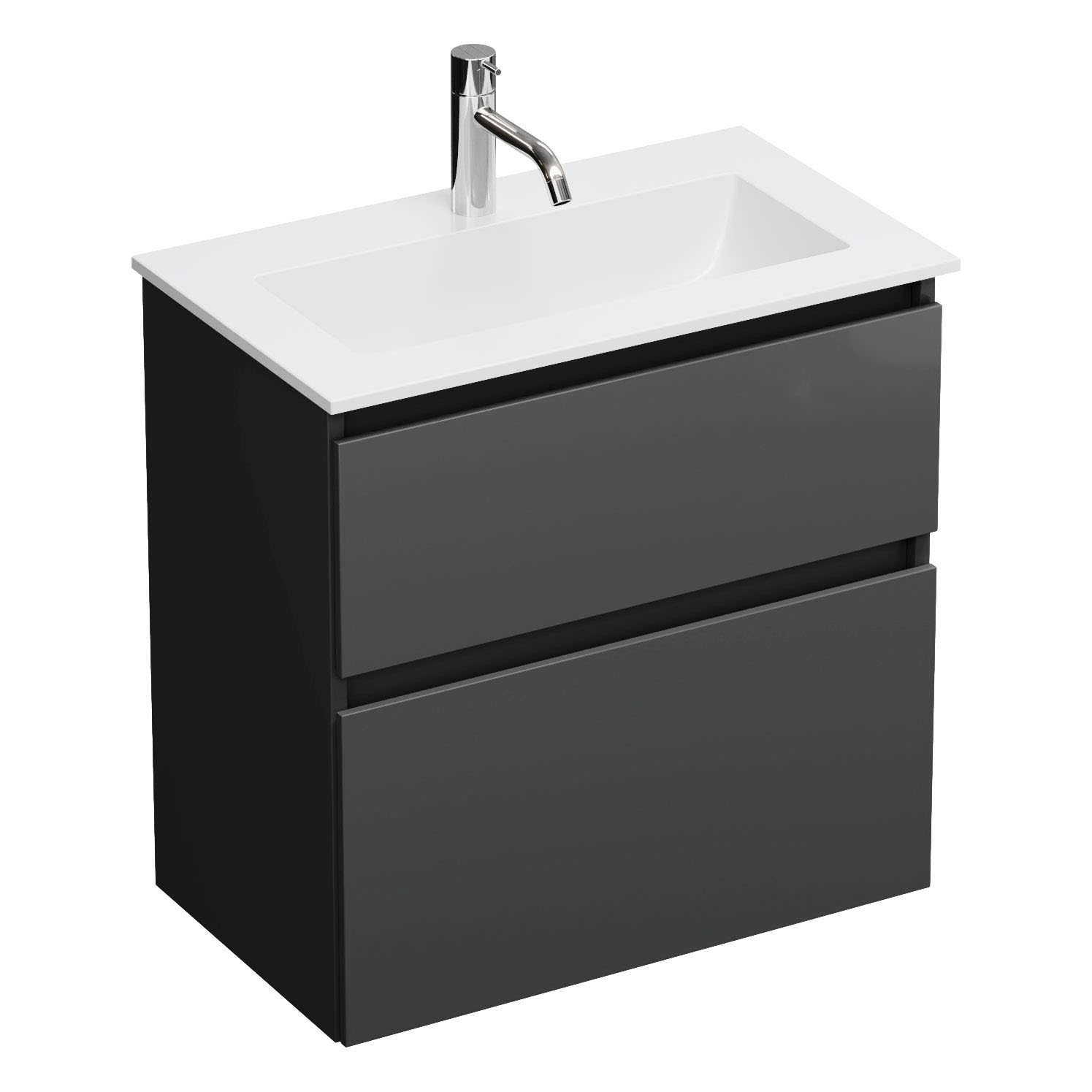burgbad Lin20 Waschtischunterschrank mit Mineralguss-Waschtisch 62 cm, 2 Auszüge