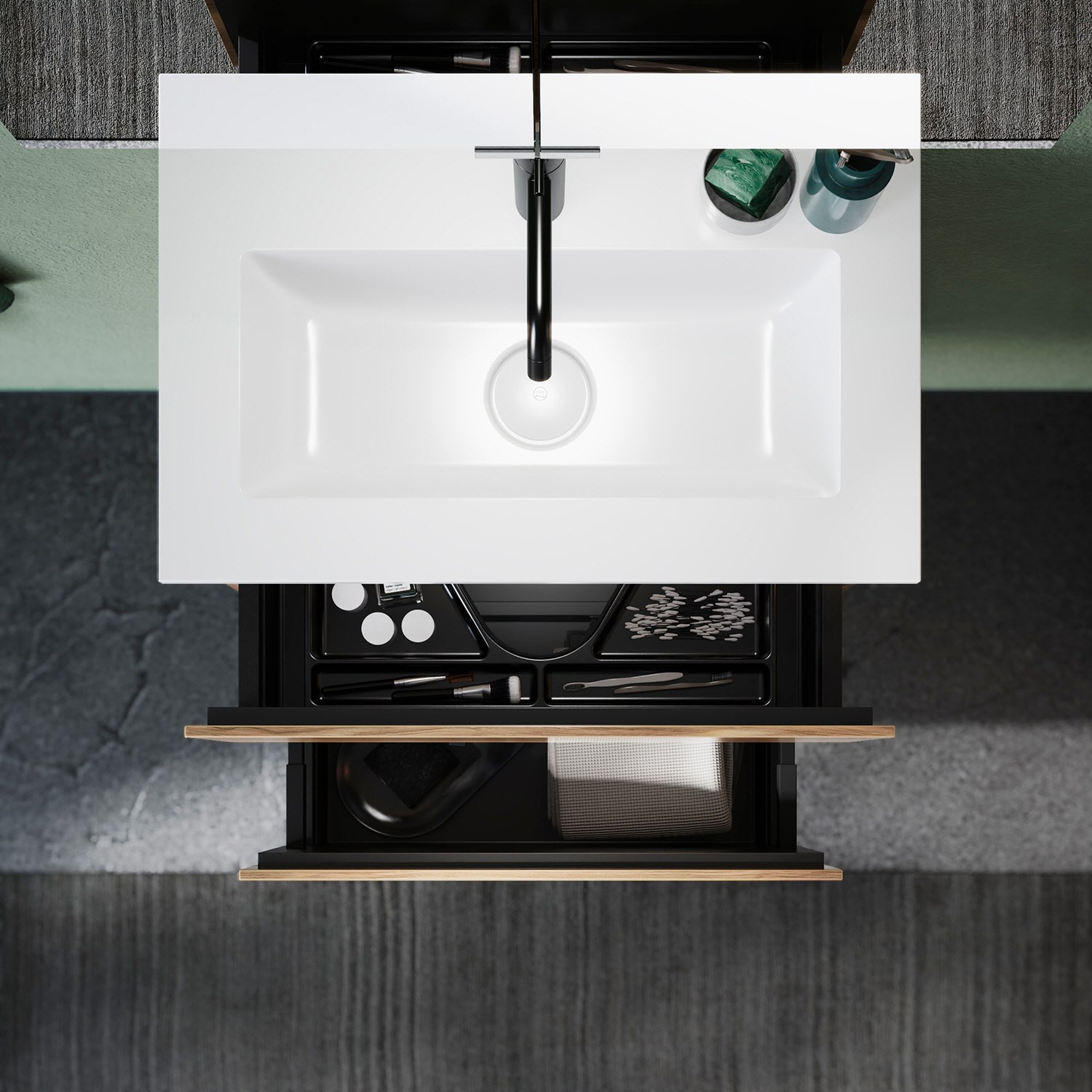 burgbad Lin20 Waschtischunterschrank mit Mineralguss-Waschtisch 62 cm, 2 Auszüge