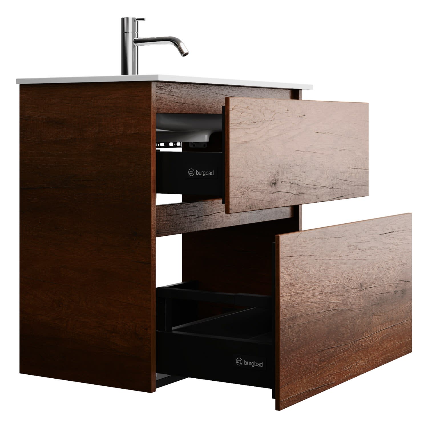 burgbad Lin20 Waschtischunterschrank mit Mineralguss-Waschtisch 62 cm, 2 Auszüge