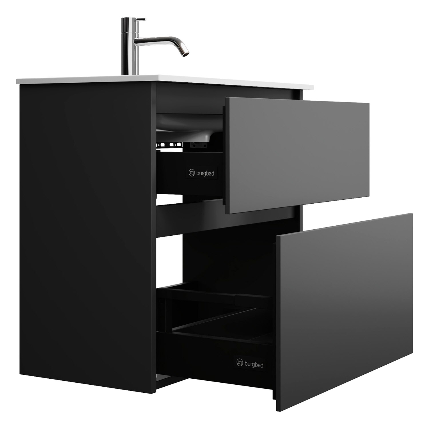 burgbad Lin20 Waschtischunterschrank mit Mineralguss-Waschtisch 62 cm, 2 Auszüge