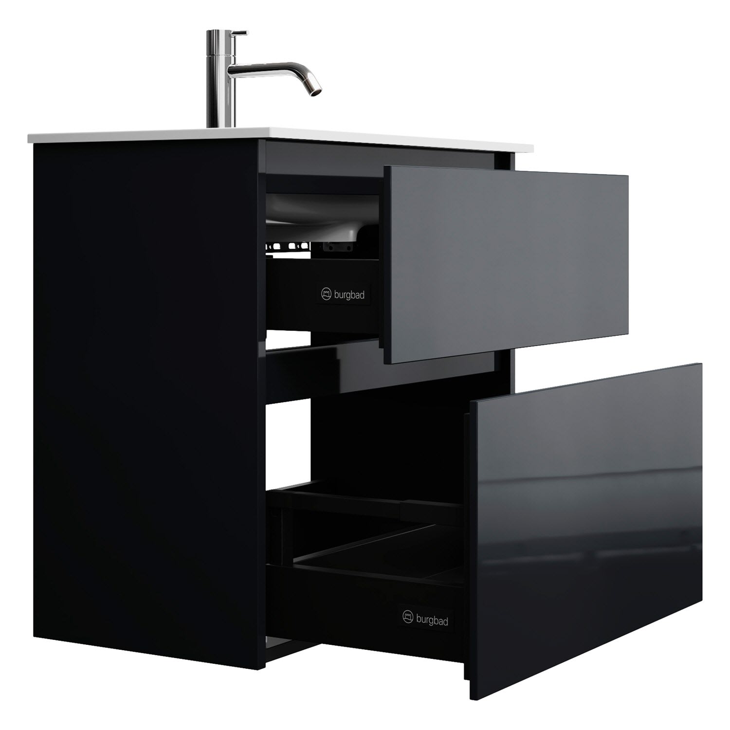 burgbad Lin20 Waschtischunterschrank mit Mineralguss-Waschtisch 62 cm, 2 Auszüge