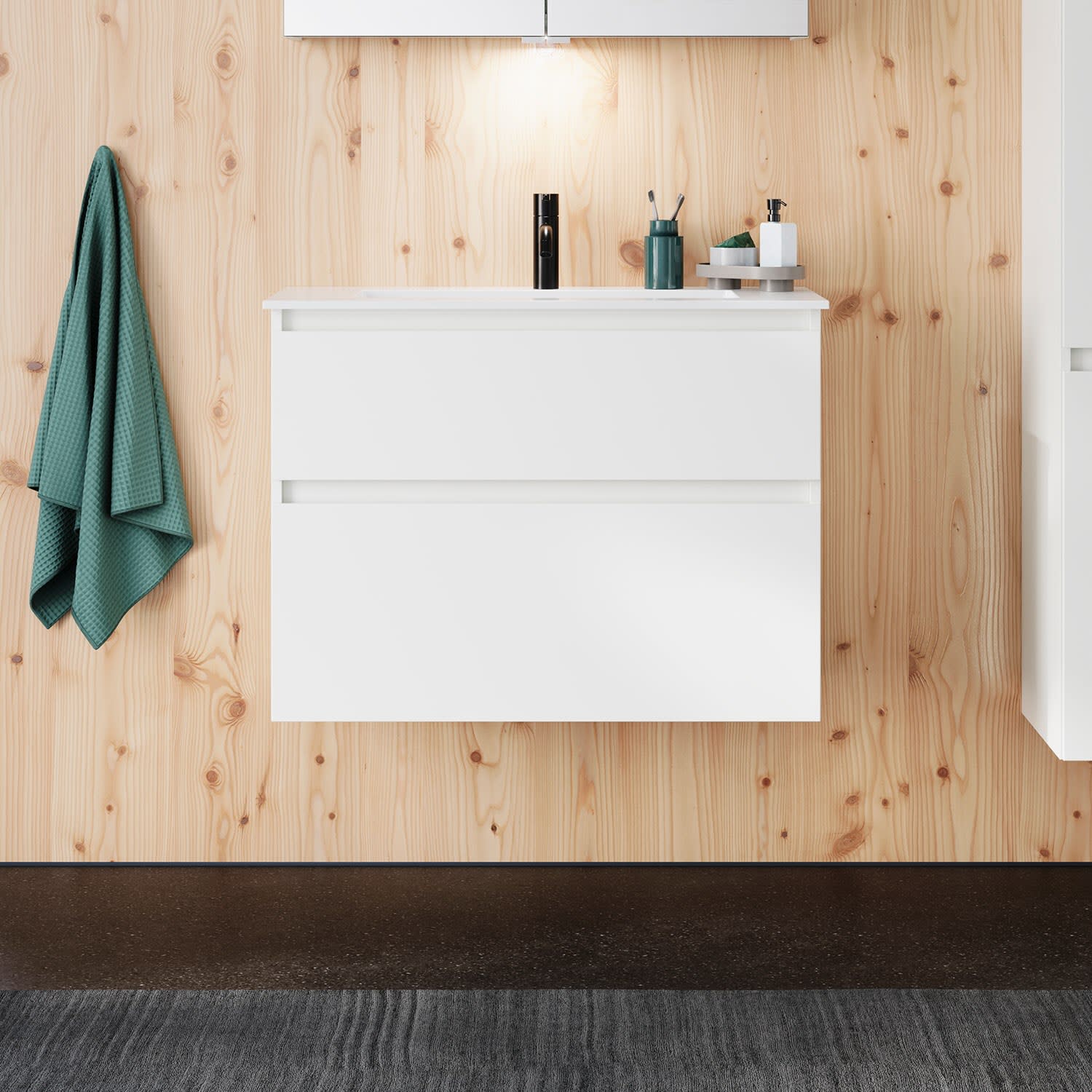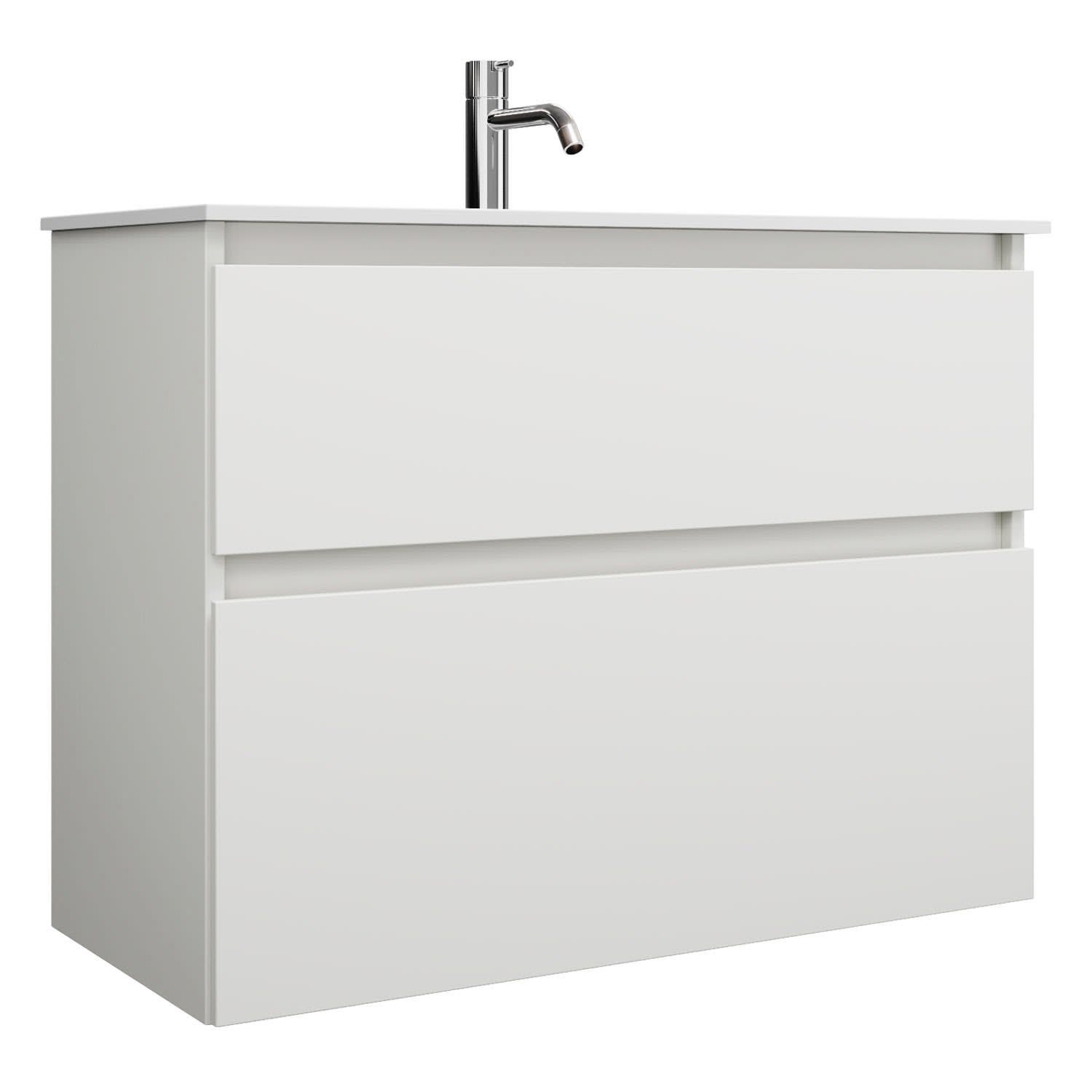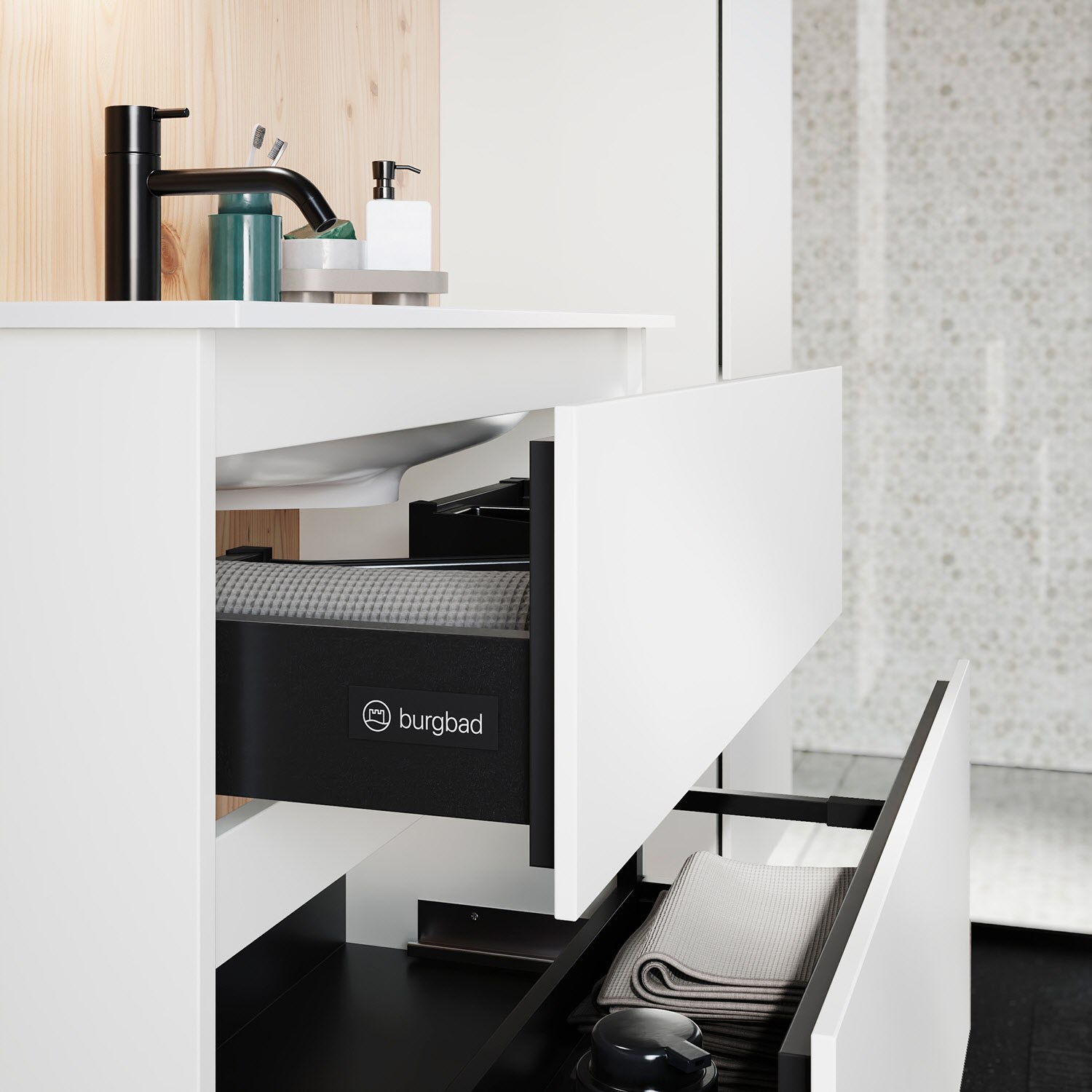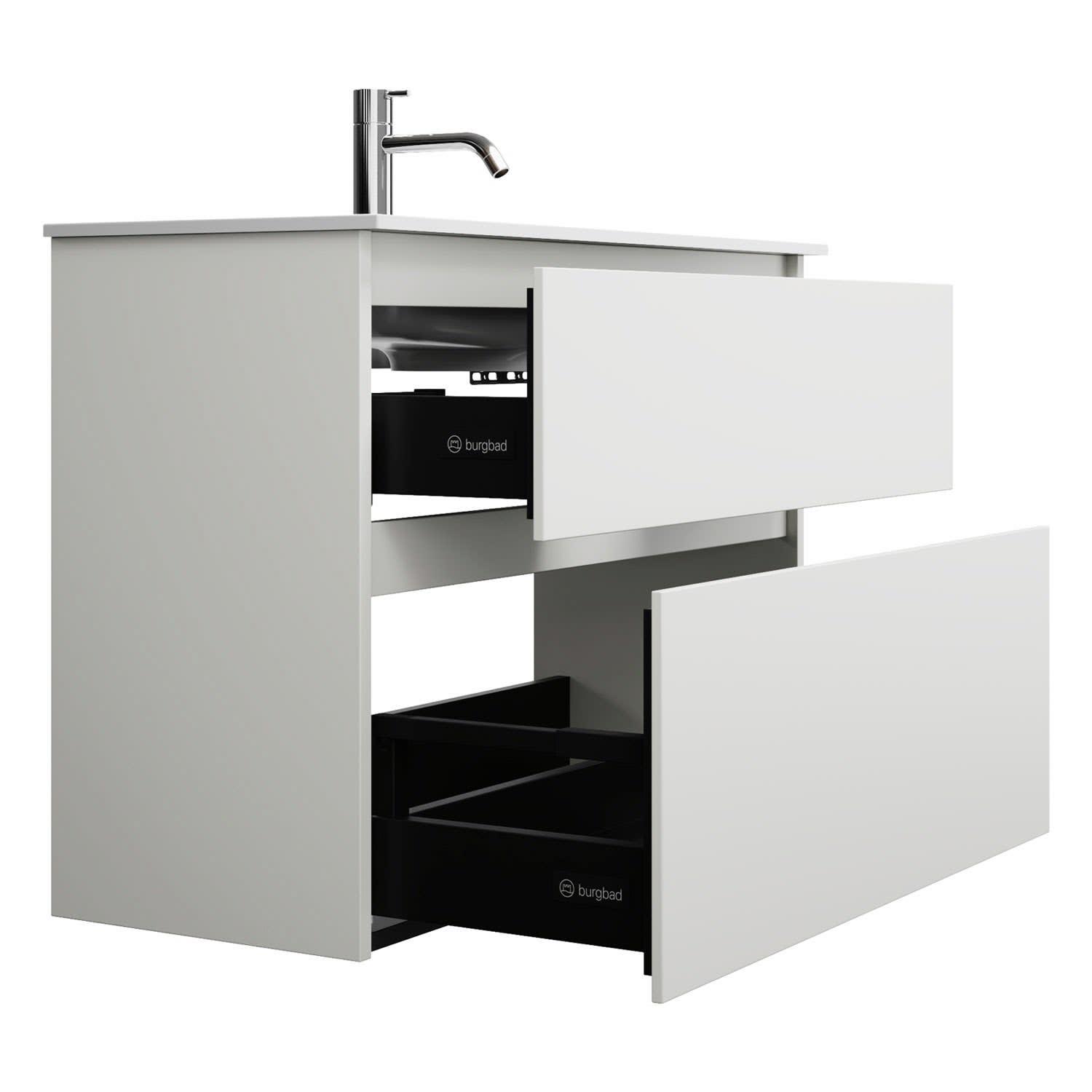 burgbad Lin20 Waschtischunterschrank mit Mineralguss-Waschtisch 82 cm, 2 Auszüge