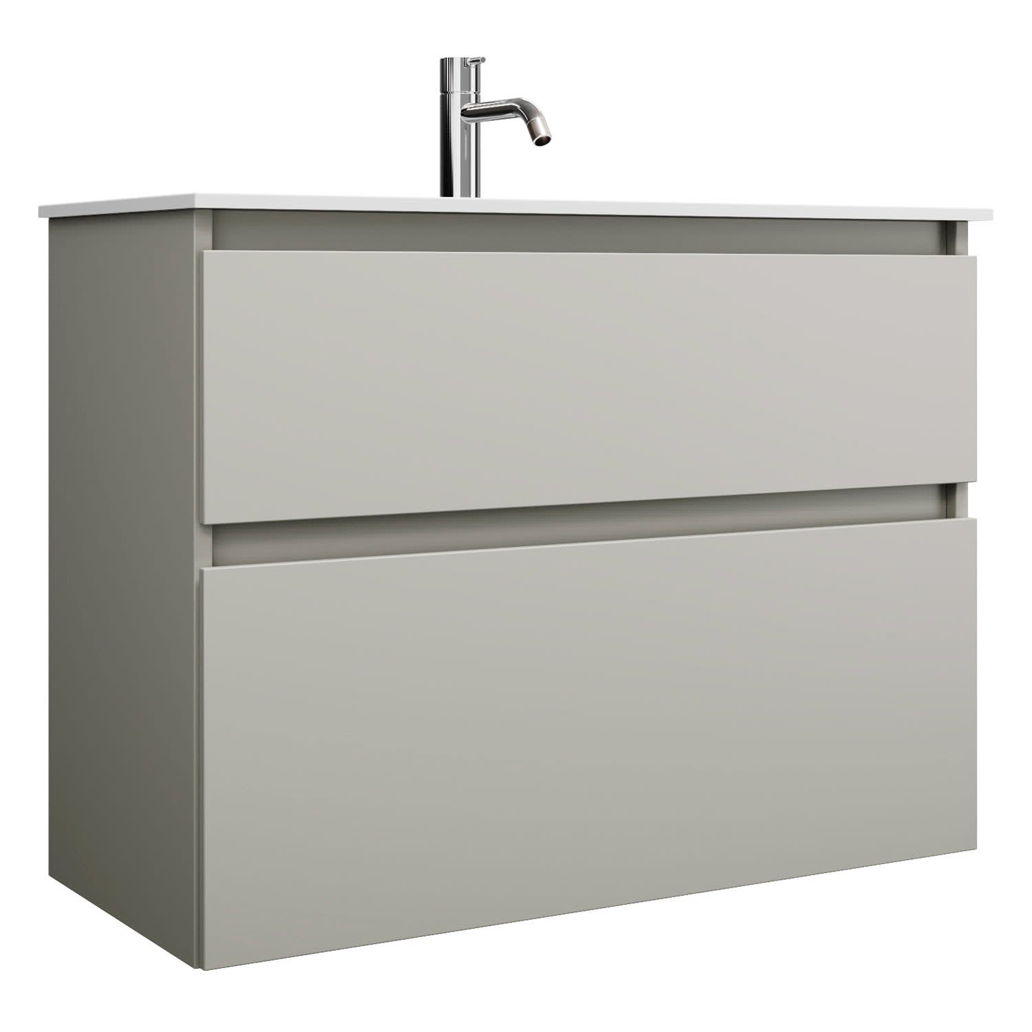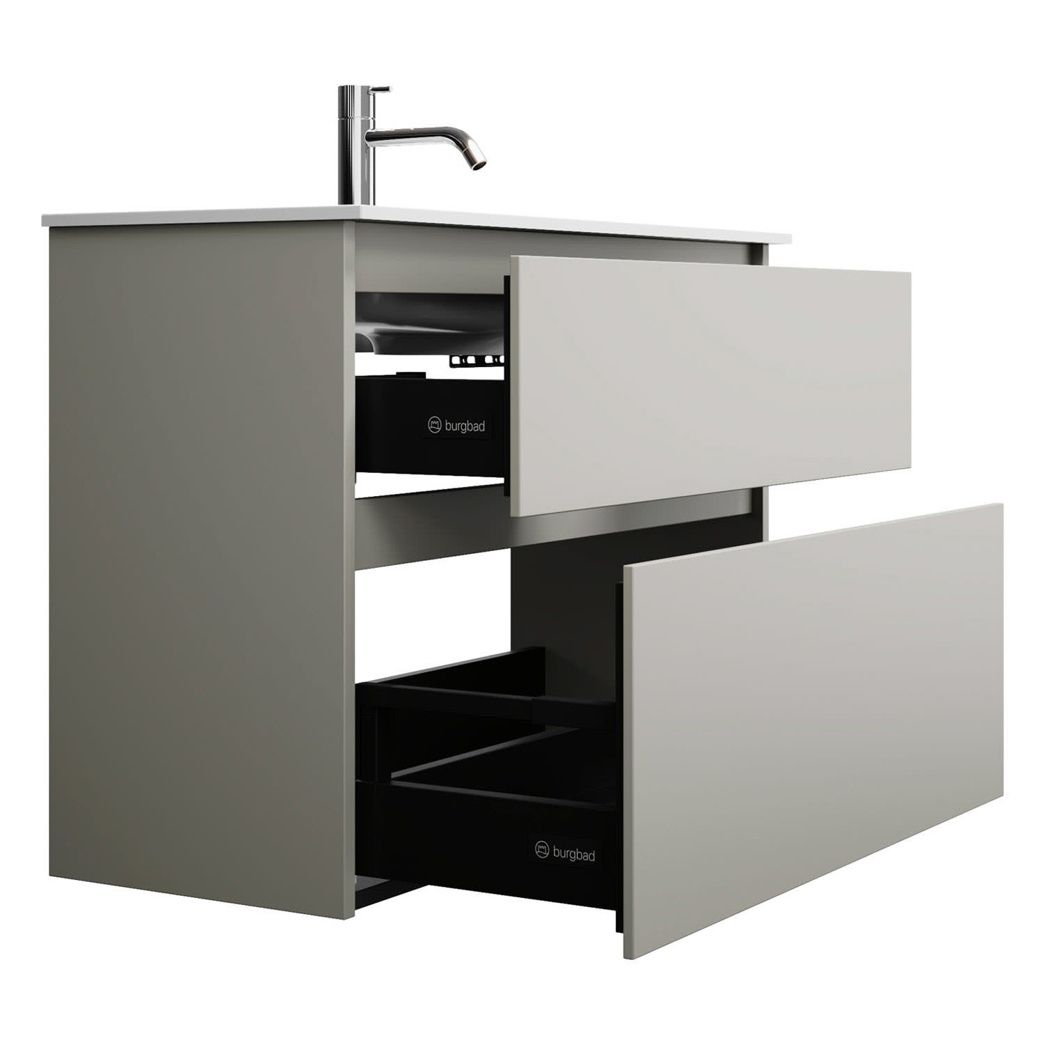 burgbad Lin20 Waschtischunterschrank mit Mineralguss-Waschtisch 82 cm, 2 Auszüge