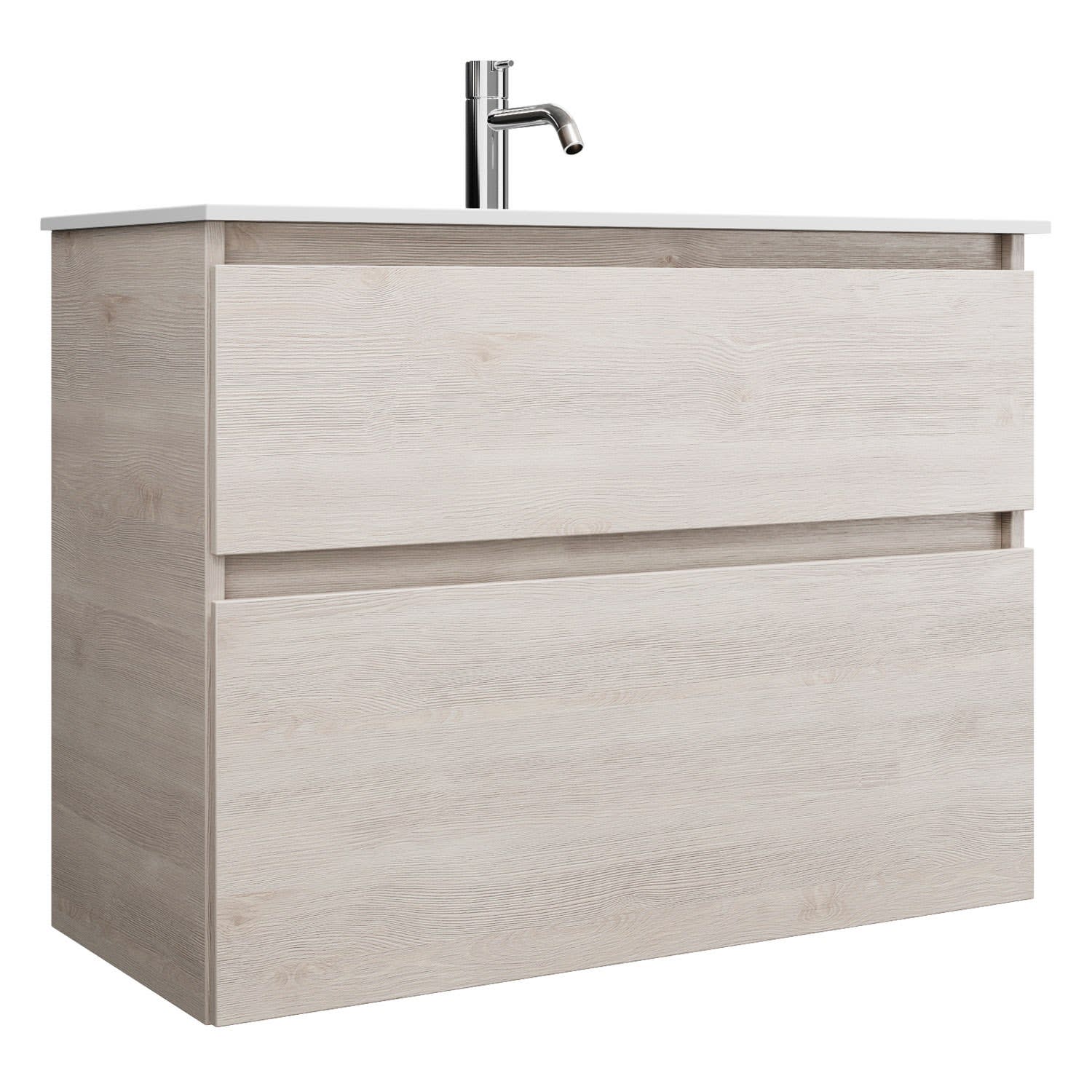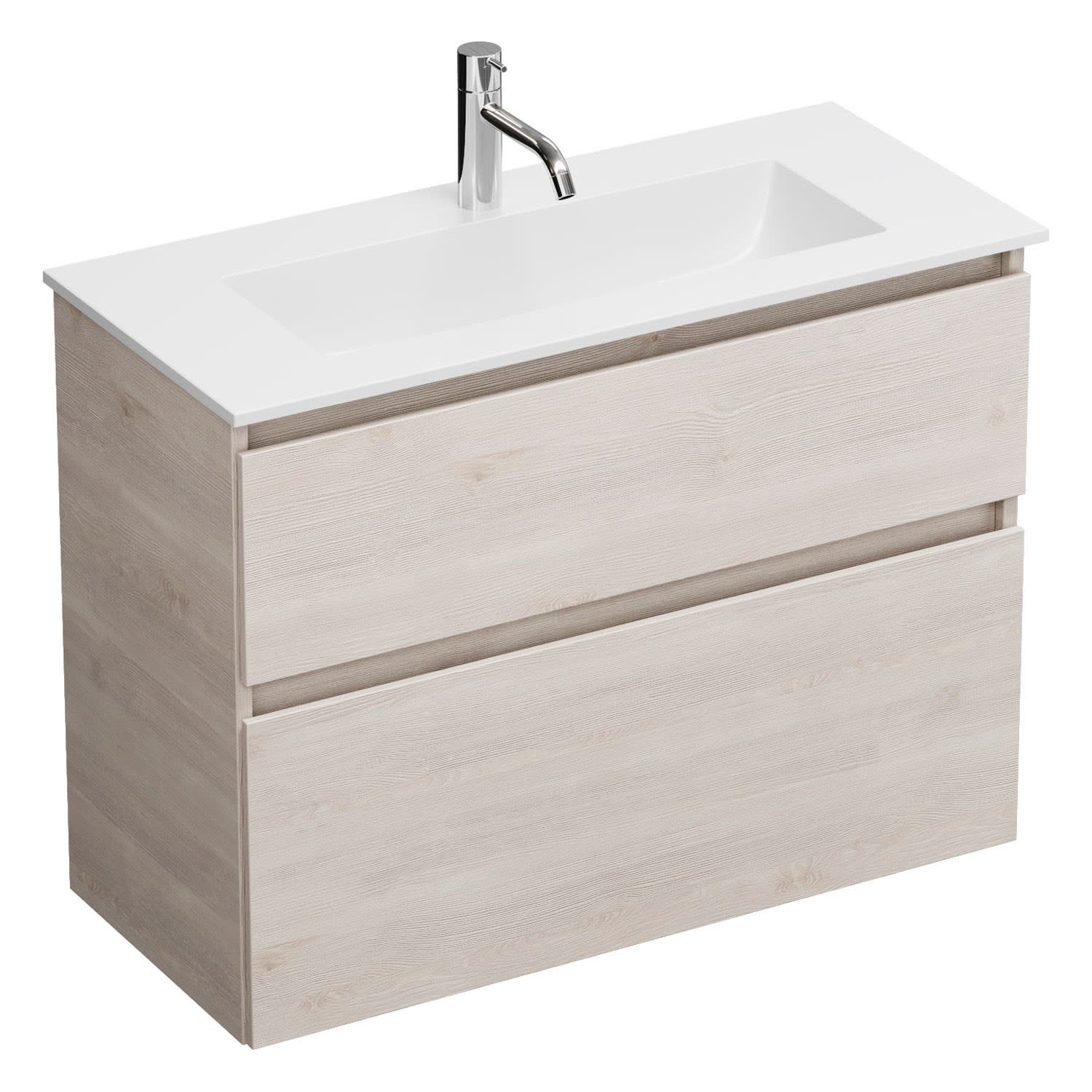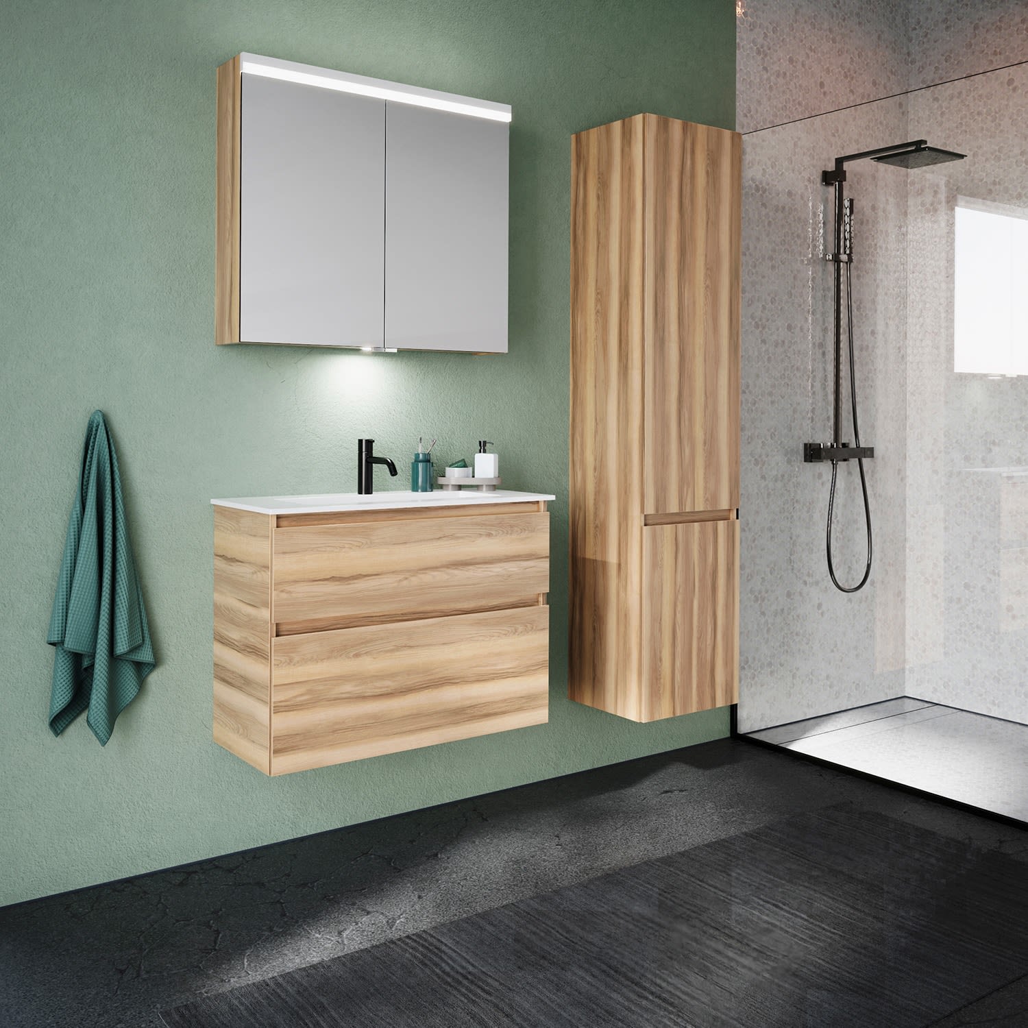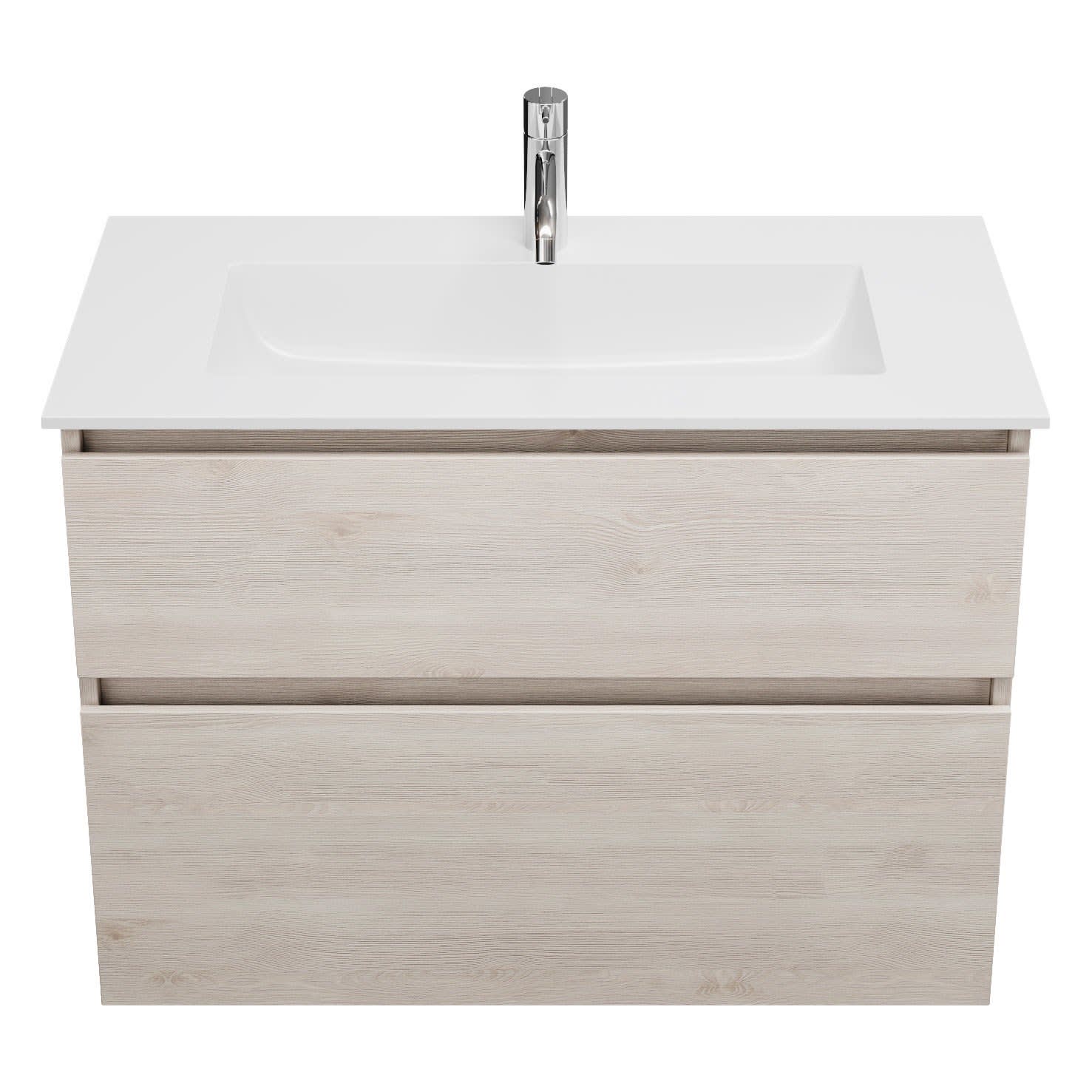 burgbad Lin20 Waschtischunterschrank mit Mineralguss-Waschtisch 82 cm, 2 Auszüge