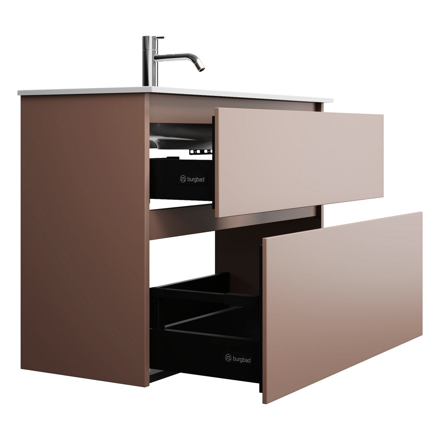 burgbad Lin20 Waschtischunterschrank mit Mineralguss-Waschtisch 82 cm, 2 Auszüge