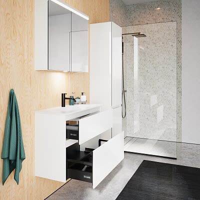 burgbad Lin20 Waschtischunterschrank mit Mineralguss-Waschtisch 82 cm, 2 Auszüge