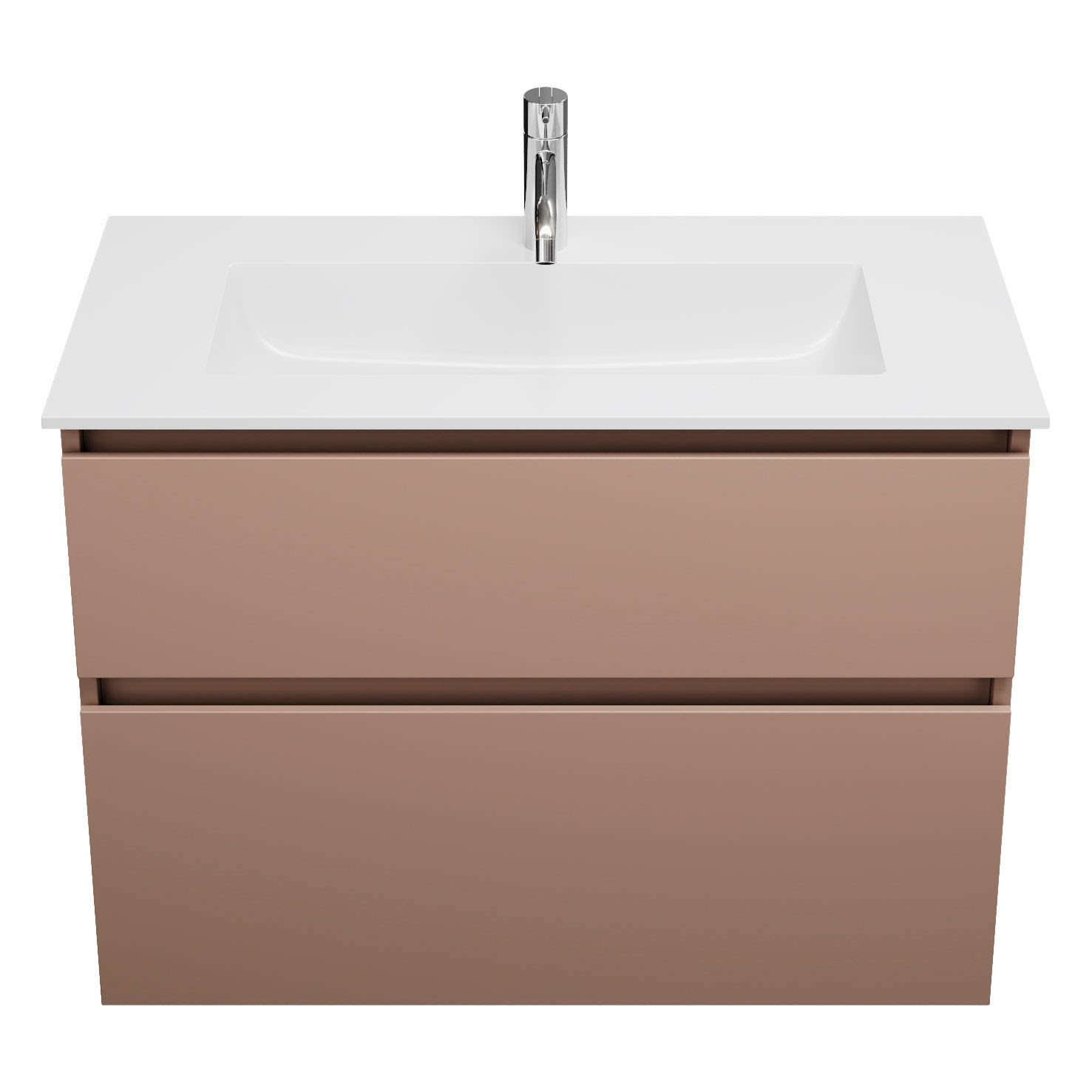 burgbad Lin20 Waschtischunterschrank mit Mineralguss-Waschtisch 82 cm, 2 Auszüge