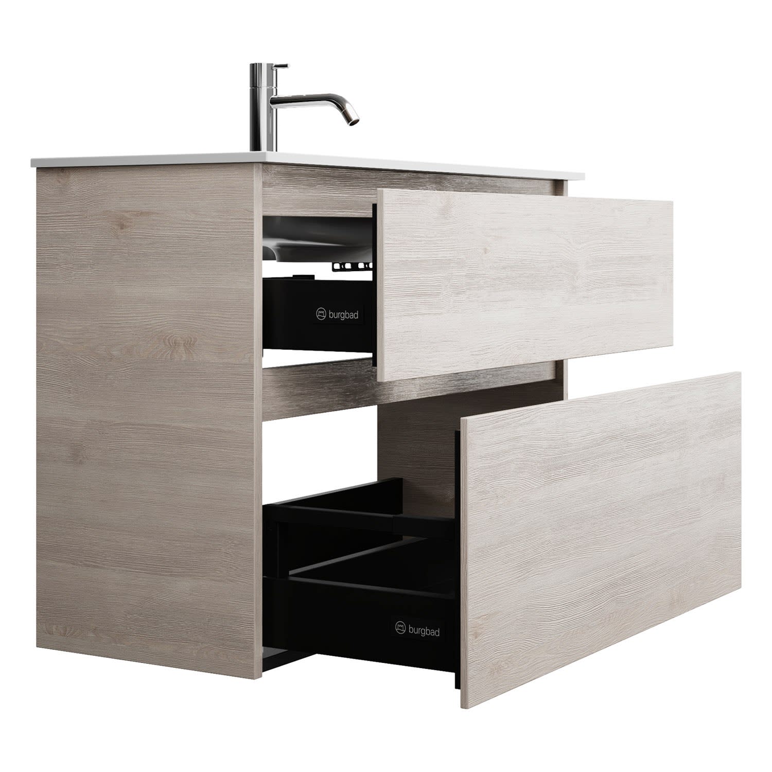burgbad Lin20 Waschtischunterschrank mit Mineralguss-Waschtisch 82 cm, 2 Auszüge