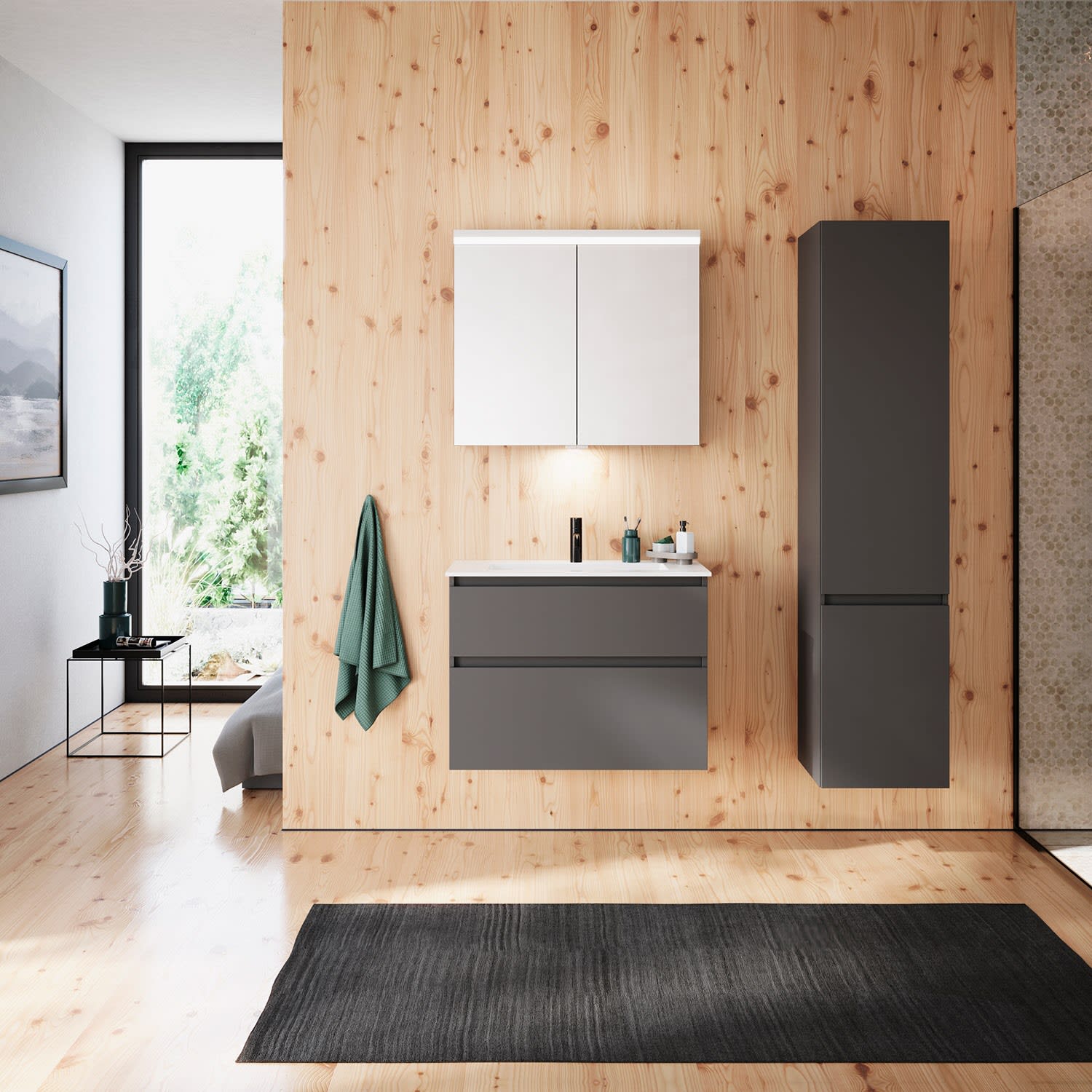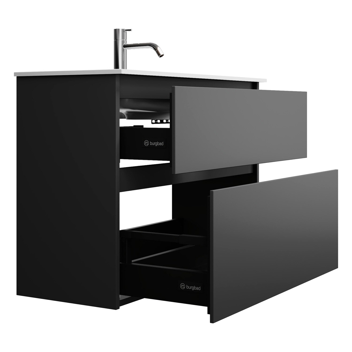 burgbad Lin20 Waschtischunterschrank mit Mineralguss-Waschtisch 82 cm, 2 Auszüge