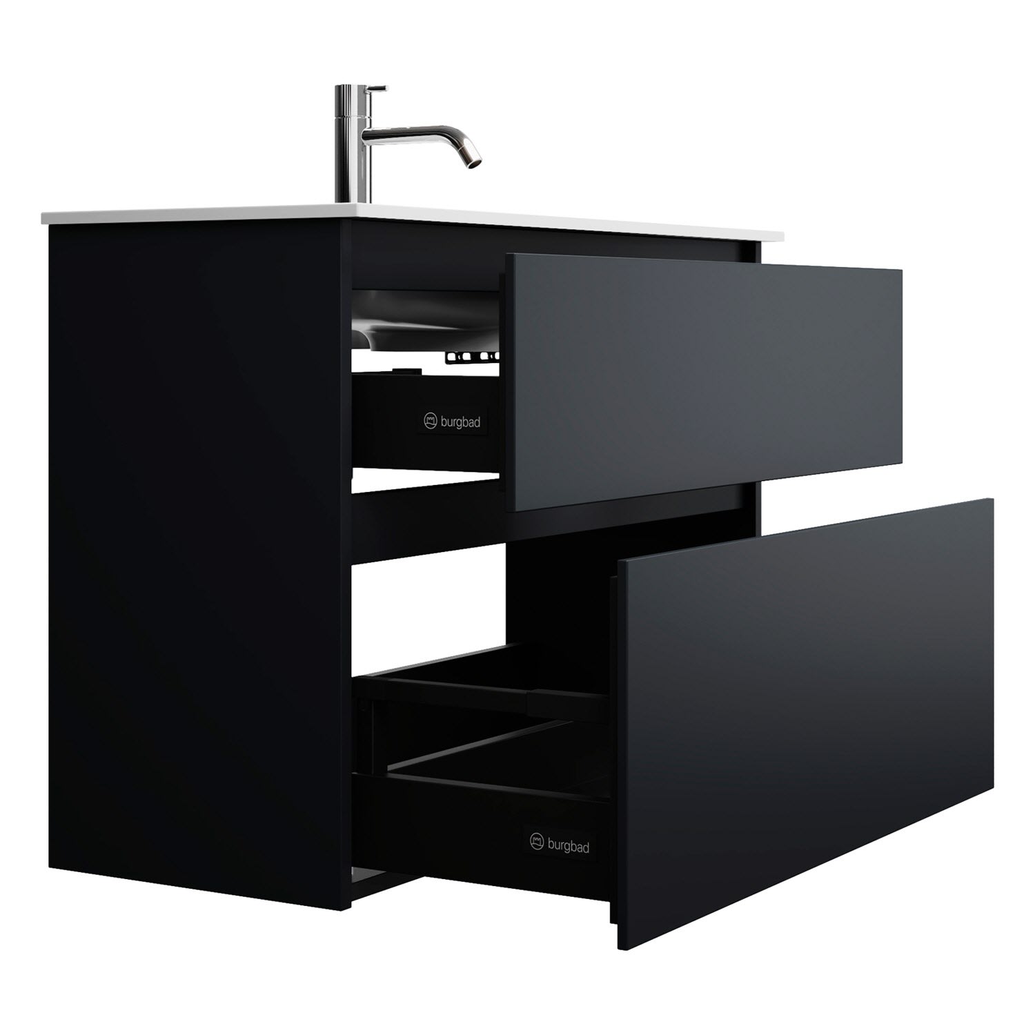 burgbad Lin20 Waschtischunterschrank mit Mineralguss-Waschtisch 82 cm, 2 Auszüge